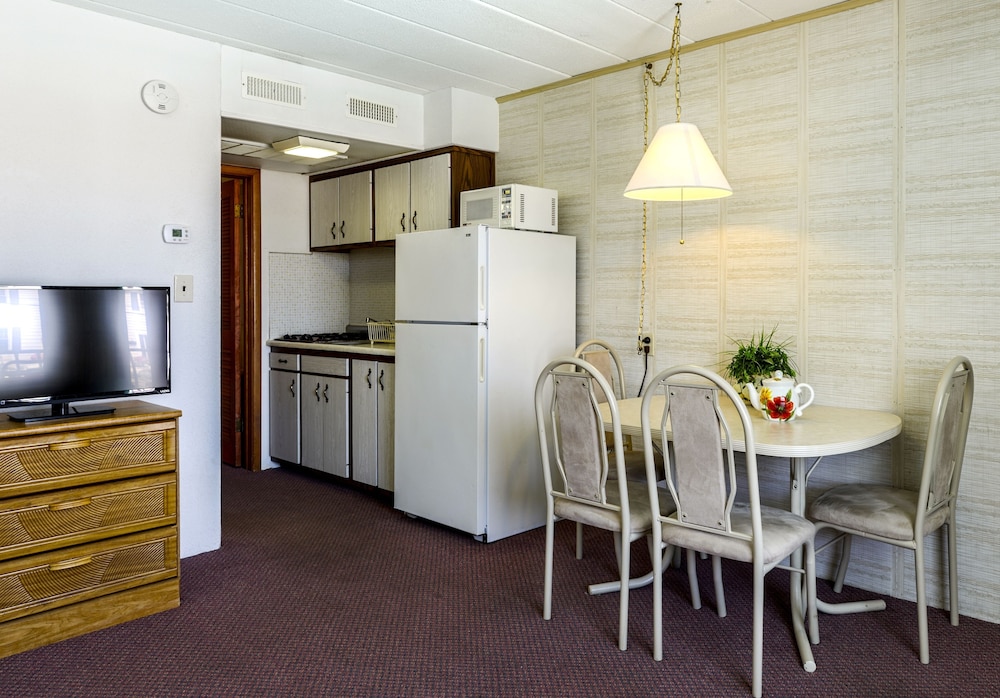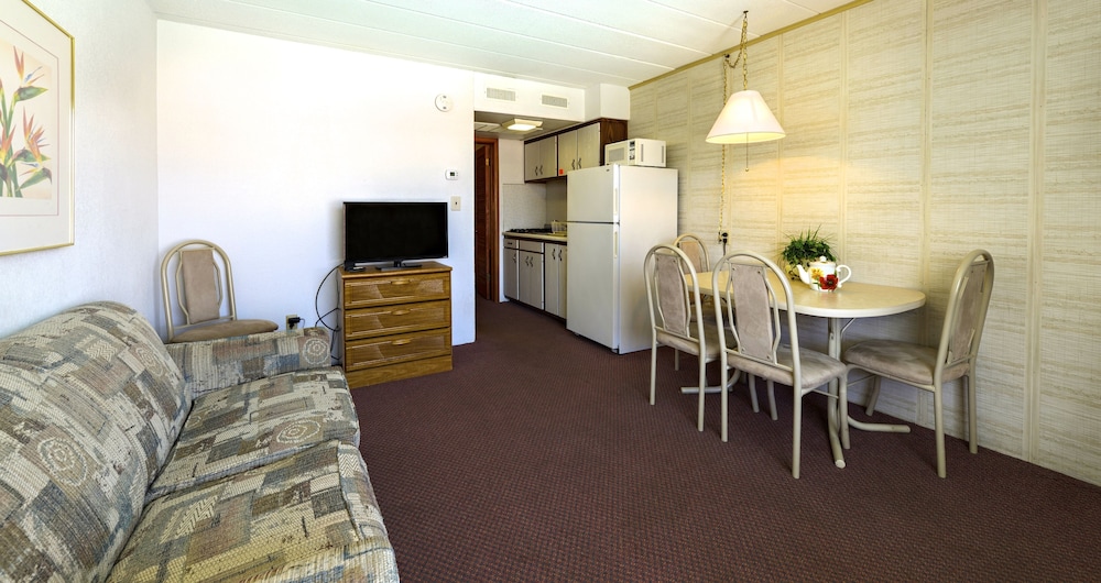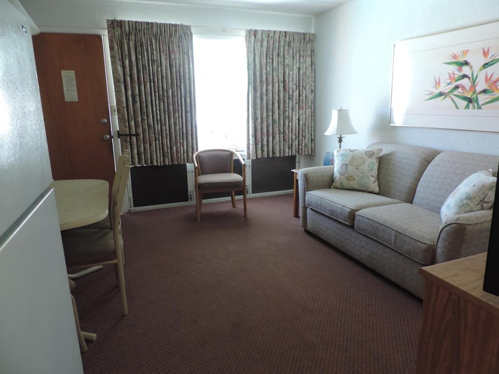 Typical beachside motel, super close to the pier and a 4 minute walk to the boardwalk. Felt very safe walking at night. Staff was kind and owner made sure we had a great stay. Heated pool, free WiFi, silverware, plates and a pull out couch.