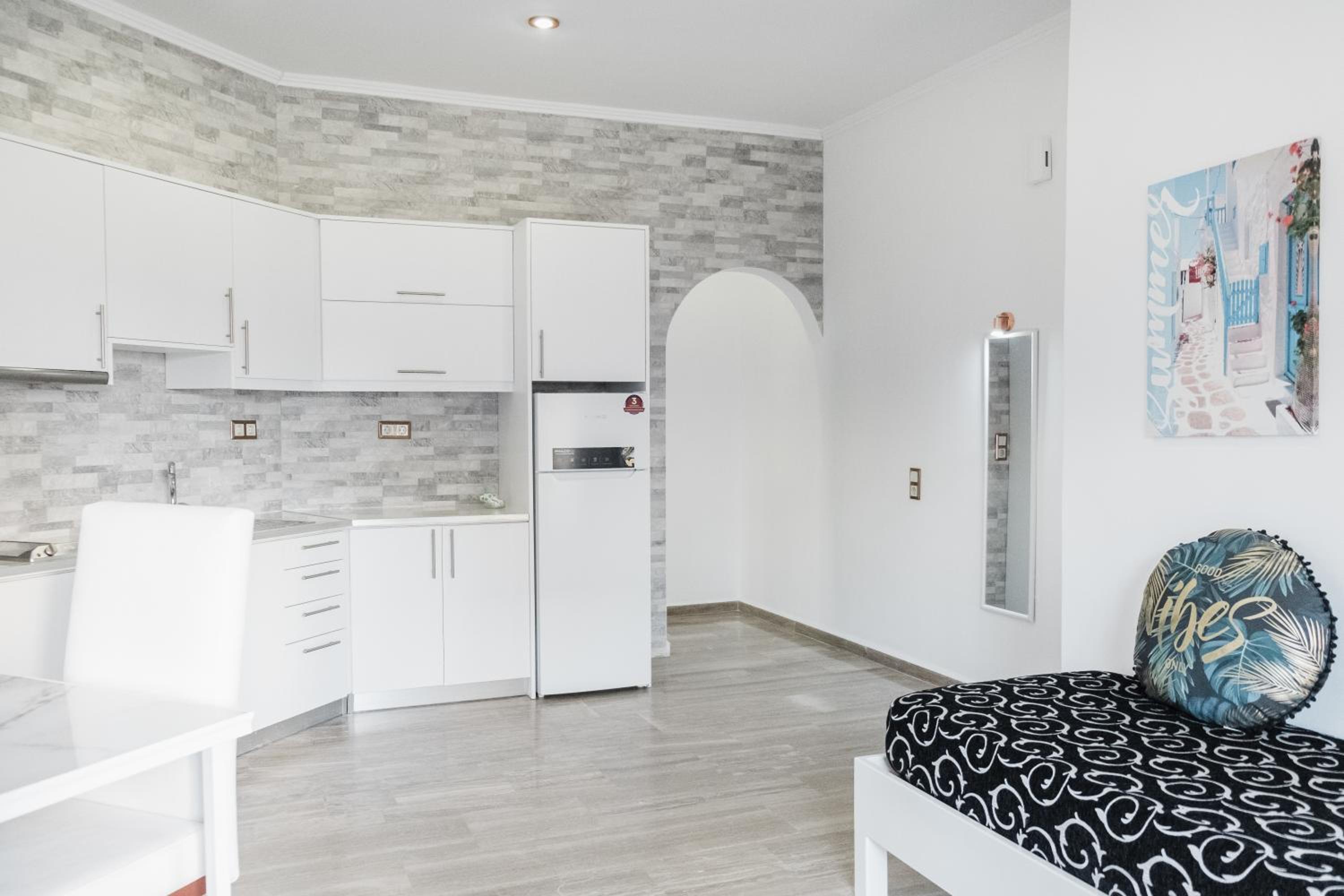 Super beliggenhet med umiddelbar nærhet til strand, restauranter og uteliv :) Ana Maria er en fantastisk vert - sjarmerende, snill og hjelpsom :) Rent og pent! Nytt og deilig bad. Et relativt velutstyrt kjøkken, og Ana Maria hadde også mer utstyr på «lager» om vi trengte! Stranda er fin, og man kan også bruke bassenget til nærmeste restaurant om man er betalende kunder - der får også gjester rabatt :)