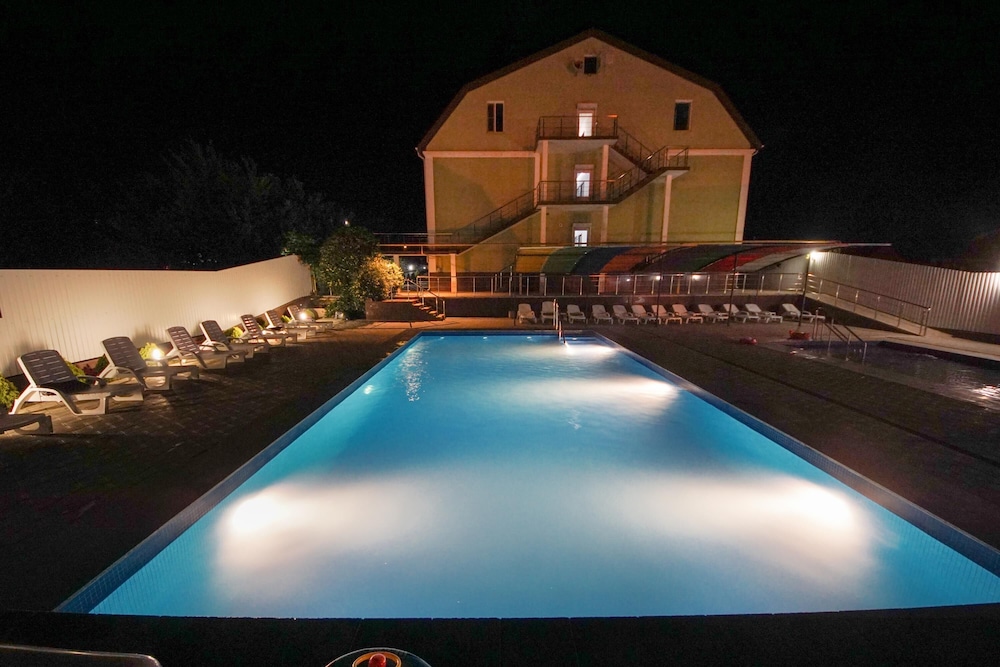 Не большой, чистый отель с дружелюбным персоналом. Своя парковка, детский и взрослый бассейны на улице с чистой водой.
