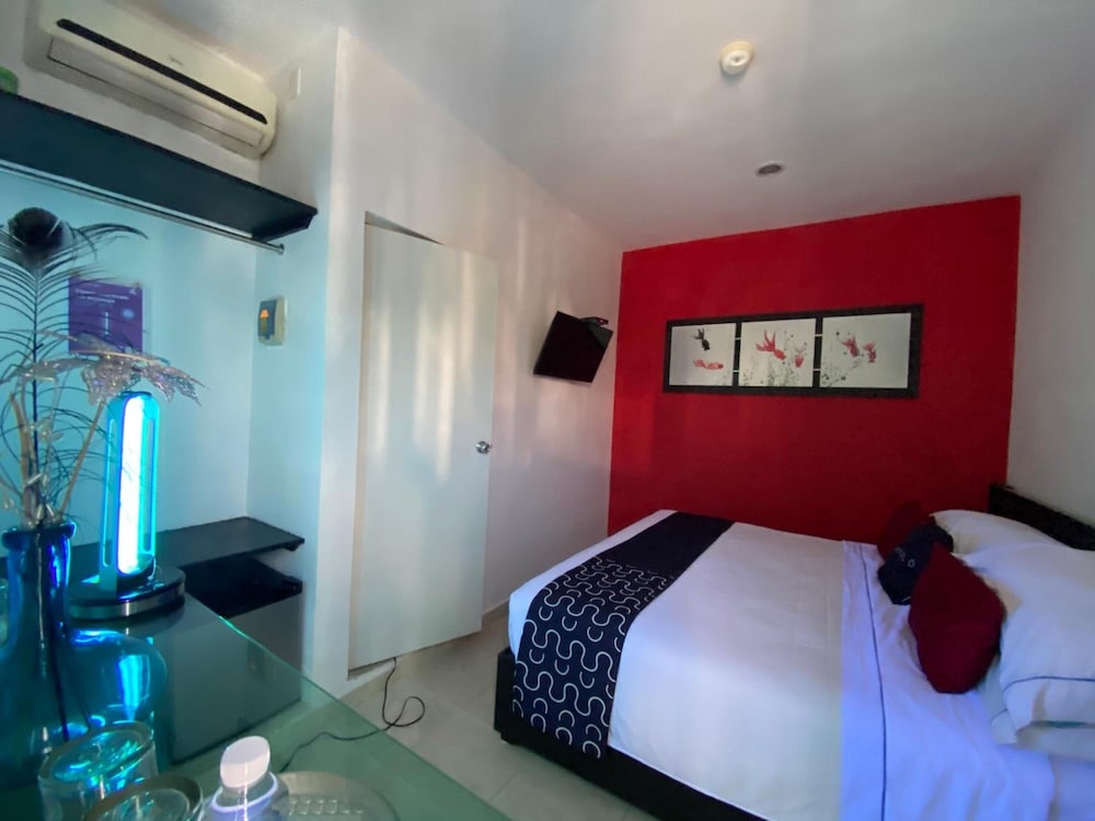 El hotel está muy tranquilo. Cumple con todo lo que se necesita. Cerca del centro.”, cerca de la playa, cerca de 2 hipermercados, a la vuelta tiene a “los únicos” un lugar de tacos muy bueno que están hasta bien tarde. La limpieza en el hotel es buena. Y siempre hay alguien en la puerta para seguridad.