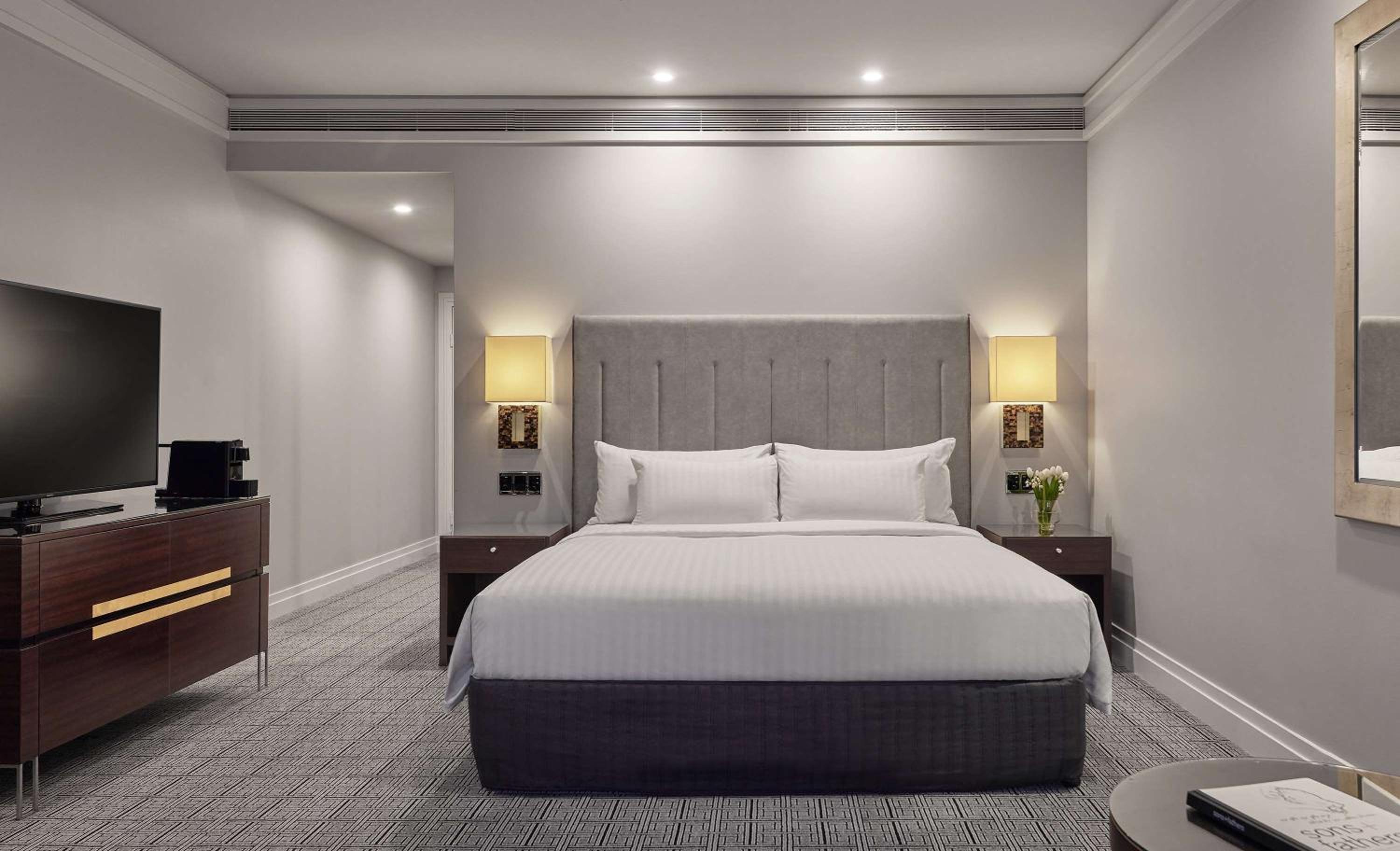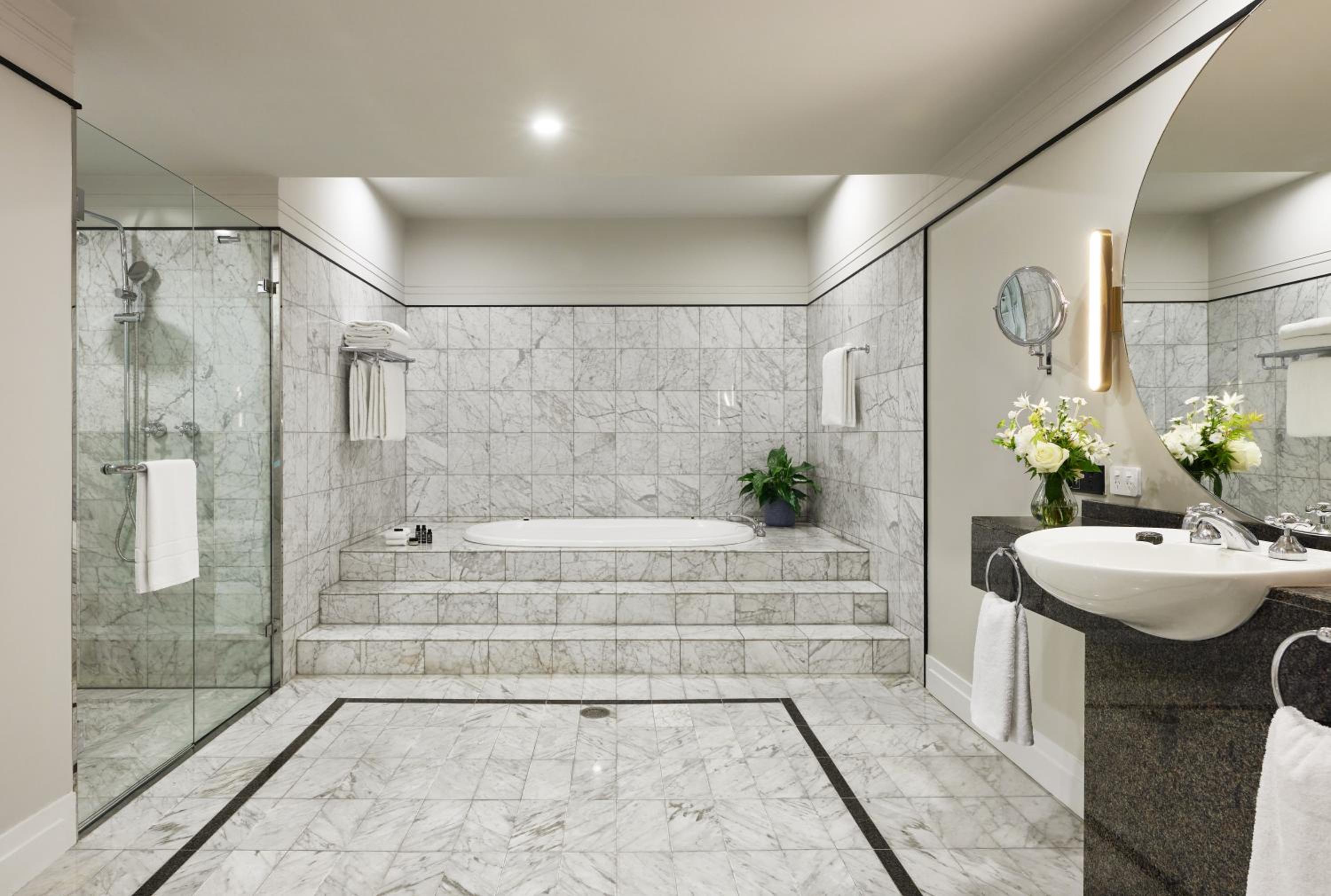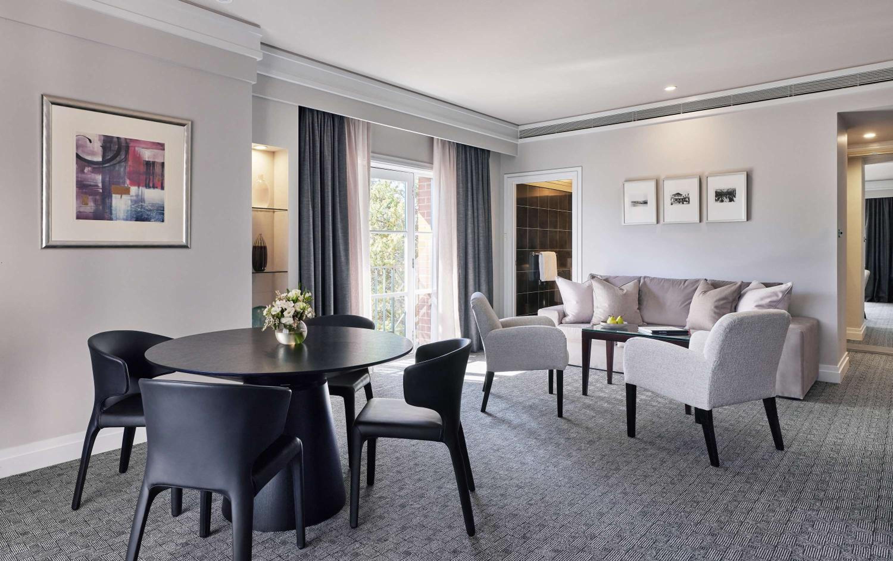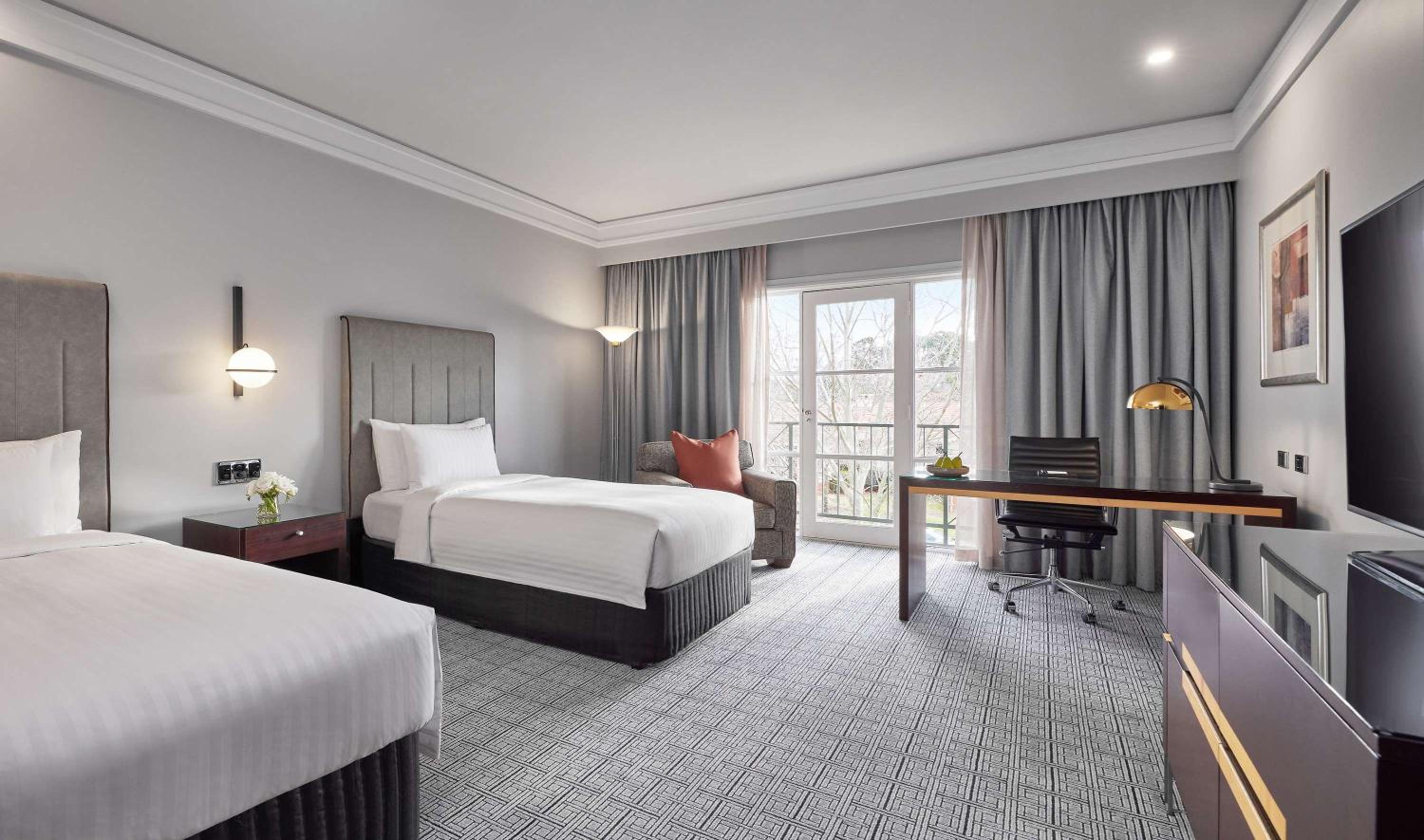 Step into a world of luxury at Park Hyatt Canberra, where each room is elegantly designed with marble bathrooms and modern comforts.