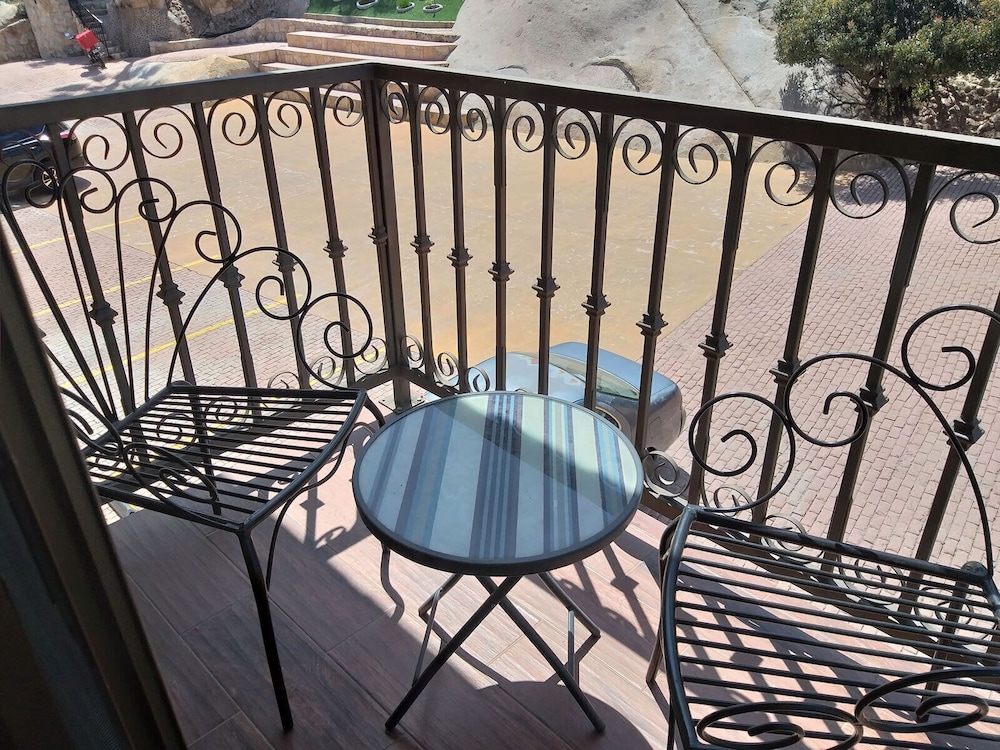 This hotel was a hidden gem. Slightly off the beaten path, and hard to get to without a car or taxi, but it is a charming place with large, suite-style rooms, and a picturesque pool area and clubhouse. It’s nestled in the hillside and our room even had its own boulder built in. Great for budding geologists! The room was rather noisy, with loud music blaring from a party venue one street over, but the fan was sufficient to drown out the noise. We would stay here again.