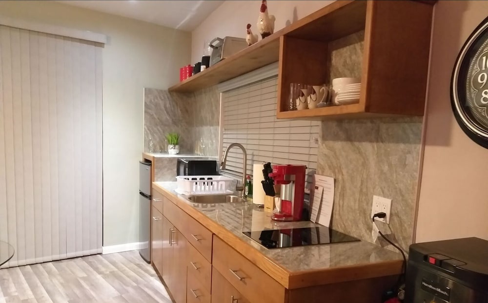 Spacious new boutique hotel in a residential neighborhood. Mattress was top quality, bathroom amenities plentiful, kitchen utensils and appliances all new. All around high quality. Wish i could have stayed longer.