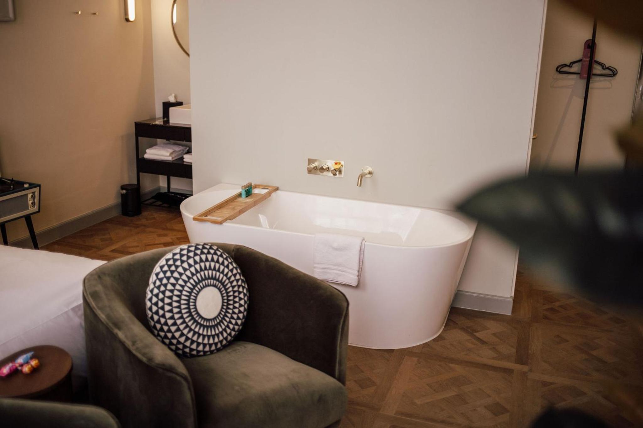 Ik betaalde 239 euro voor 1 nacht, exclusief ontbijt. Ik verwacht dan wel dat alles goed werkt, heel luxe is en net dat beetje extra. De waterkoker vonden we in de kledingkast en er is niet echt een handige, veilige plek om deze neer te zetten. De koffiehoek is daar te klein voor. We vonden maar 2 cupjes voor koffie. Een minibar/koelkastje is er niet en wat weinig handdoeken, 1 groot en 1 klein p.p. Normaal prima, maar omdat er een bad en infrarood sauna in de kamer zit zijn wat meer handdoeken wel handig. Toen ik het bad wilde aan zetten viel de knop uit elkaar en kwam er geen water uit. Het personeel heeft dit vrij snel tijdelijk opgelost, zodat er water uit kwam. En niets te klagen over het personeel en de waterdruk maar ik vond het wel 'knullig' voor zo'n dure kamer.