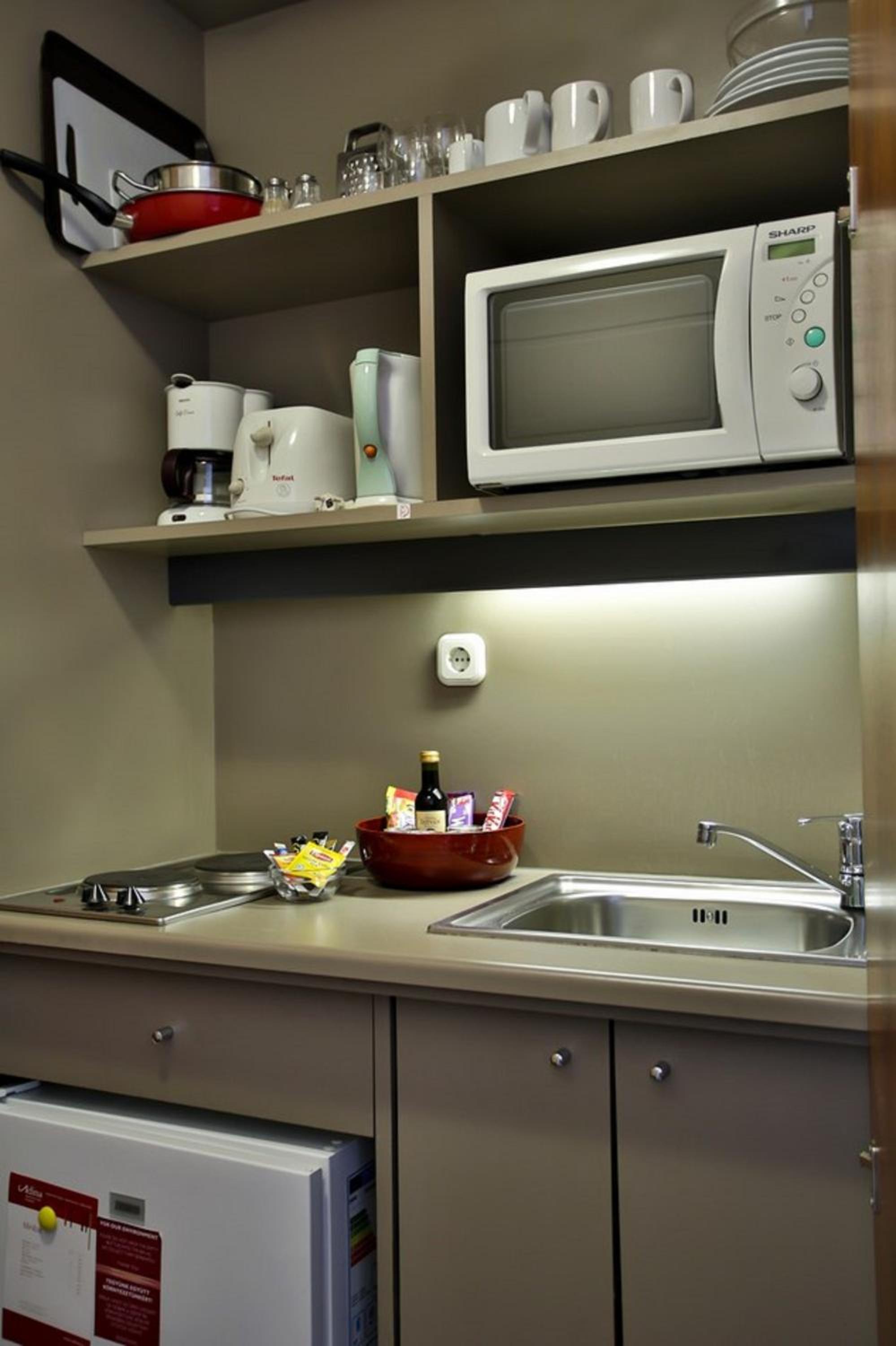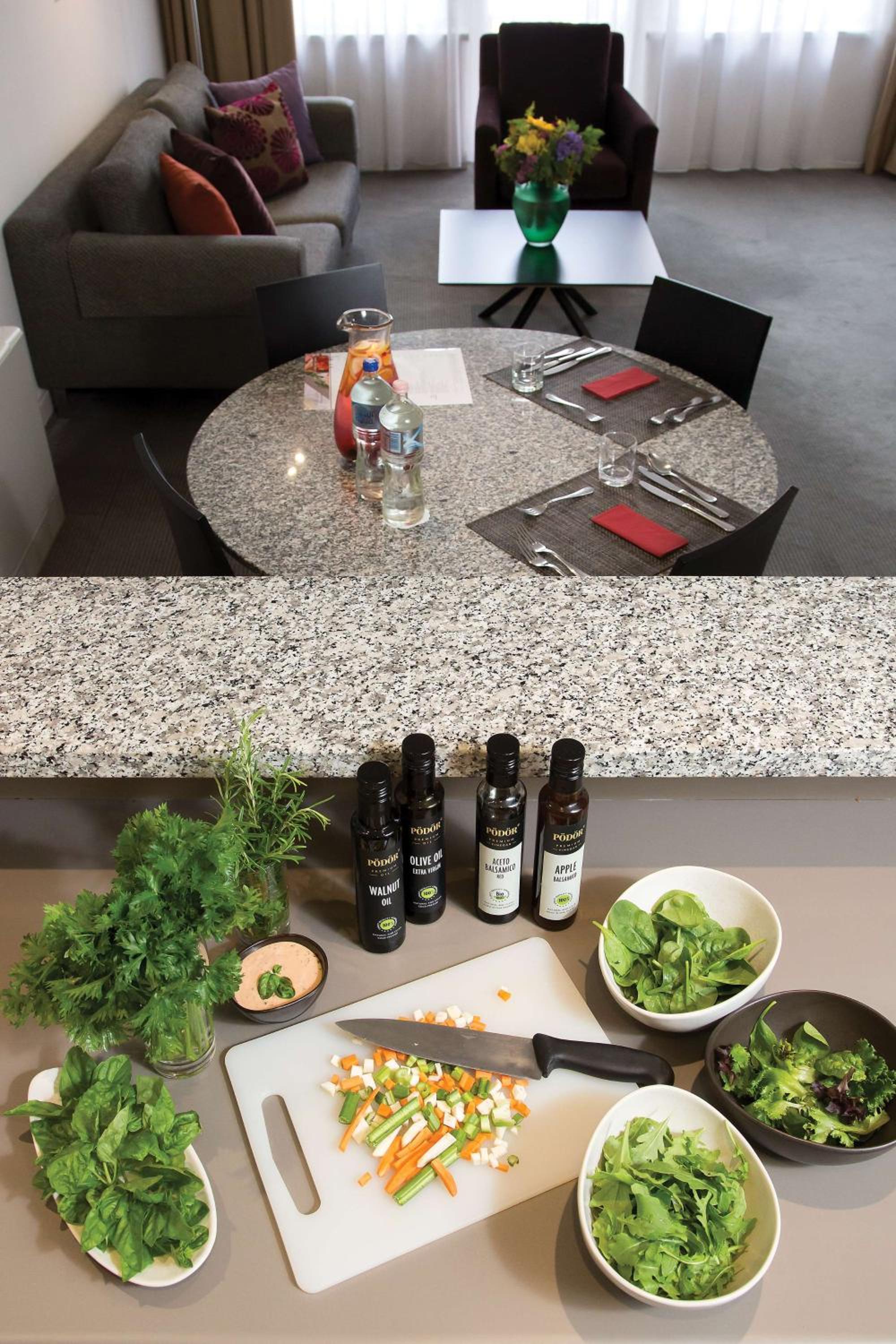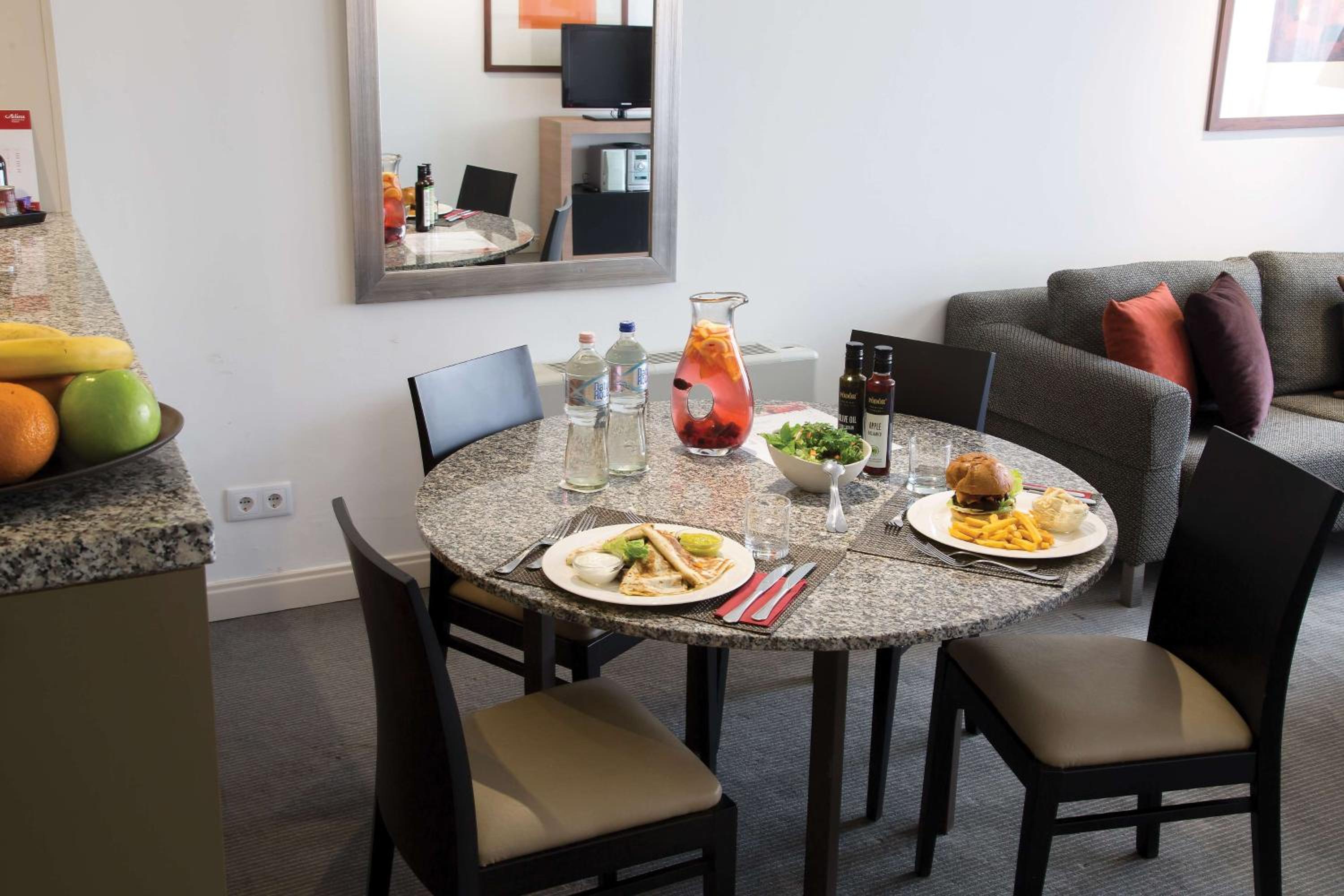 Indulge in spacious, air-conditioned studio rooms and apartments featuring large bedrooms and convenient kitchenettes for a comfortable stay at the Adina Apartment Hotel Budapest.