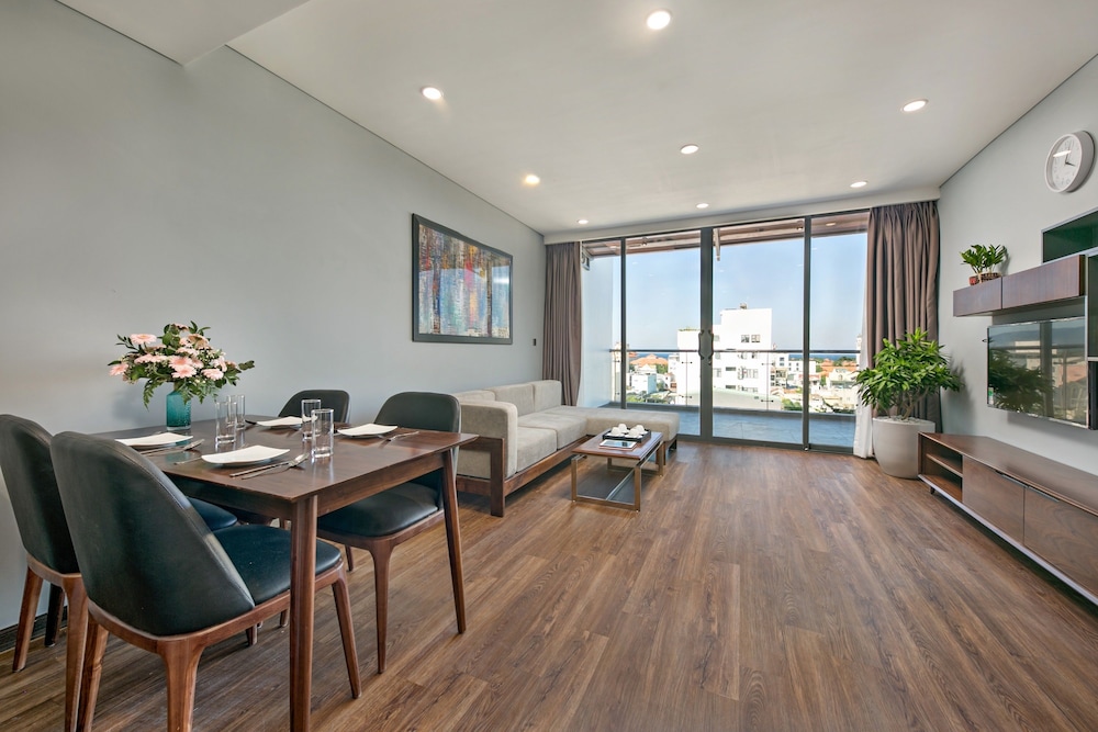Mình có con nhỏ nên rất thích vì phòng rất rộng rãi, thoáng, lại có bếp dụng cụ đầy đủ, thích nhất là phòng có cả máy giăt và sấy quần áo, không cần phải tìm chỗ treo quần áo đợi khô nên rất tiện, tủ lạnh lớn nên có thể chứa được nhiều thứ. Hồ bơi có cả phao nên bé mình có thể tắm được. Ăn sáng ngon, coffee ở đây cũng ngon. Mình rất hài lòng. Vợ chồng mình sẽ chọn đây là nơi lưu trú nếu quay lại Đà Nẵng.