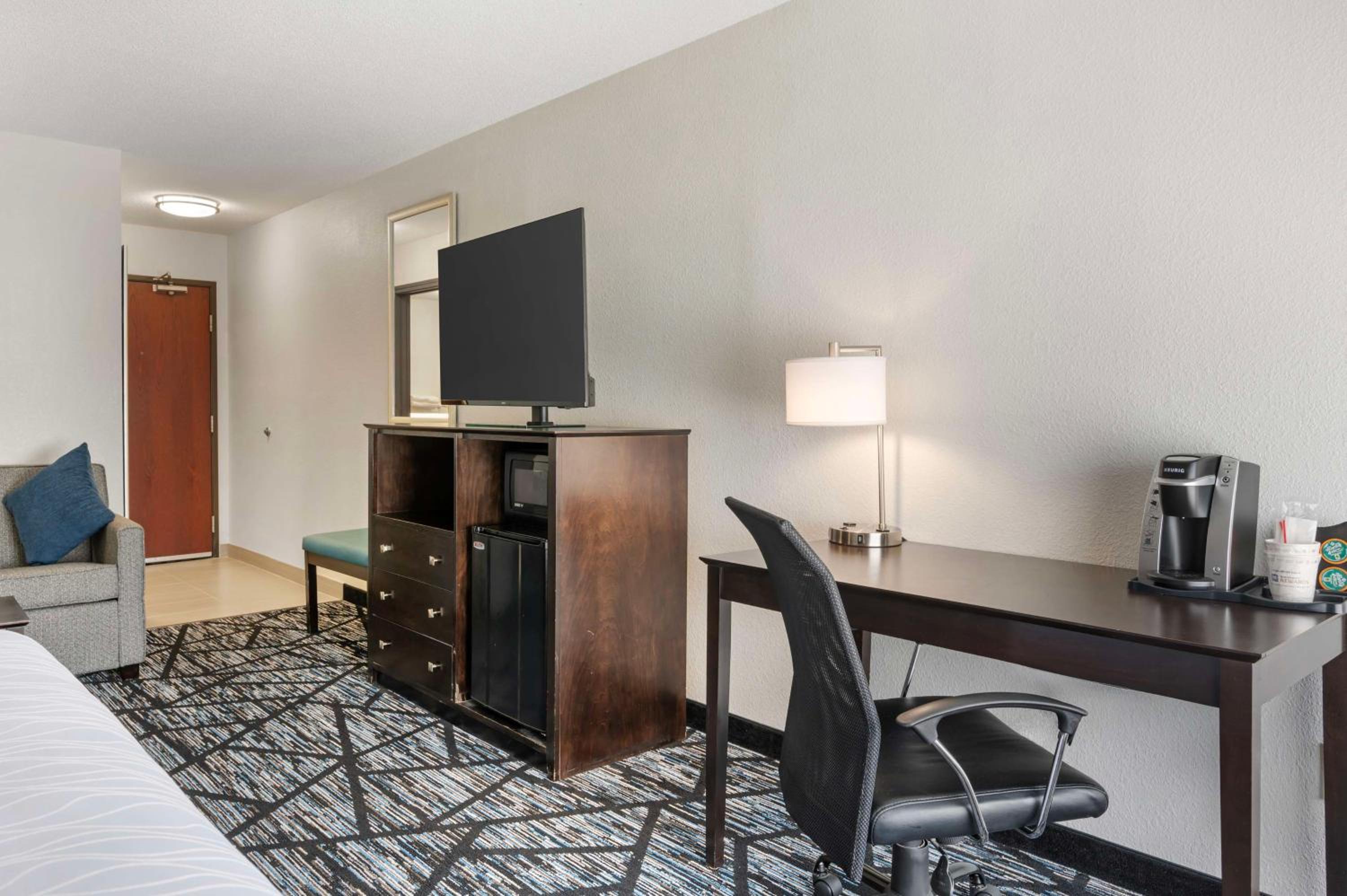 The Best Western PLUS Anderson hotel offers modern amenities such as a flat-screen satellite TV, microwave, fridge, and coffee maker in every room. Stay connected with free Wi-Fi and relax in the armchair provided for your comfort.