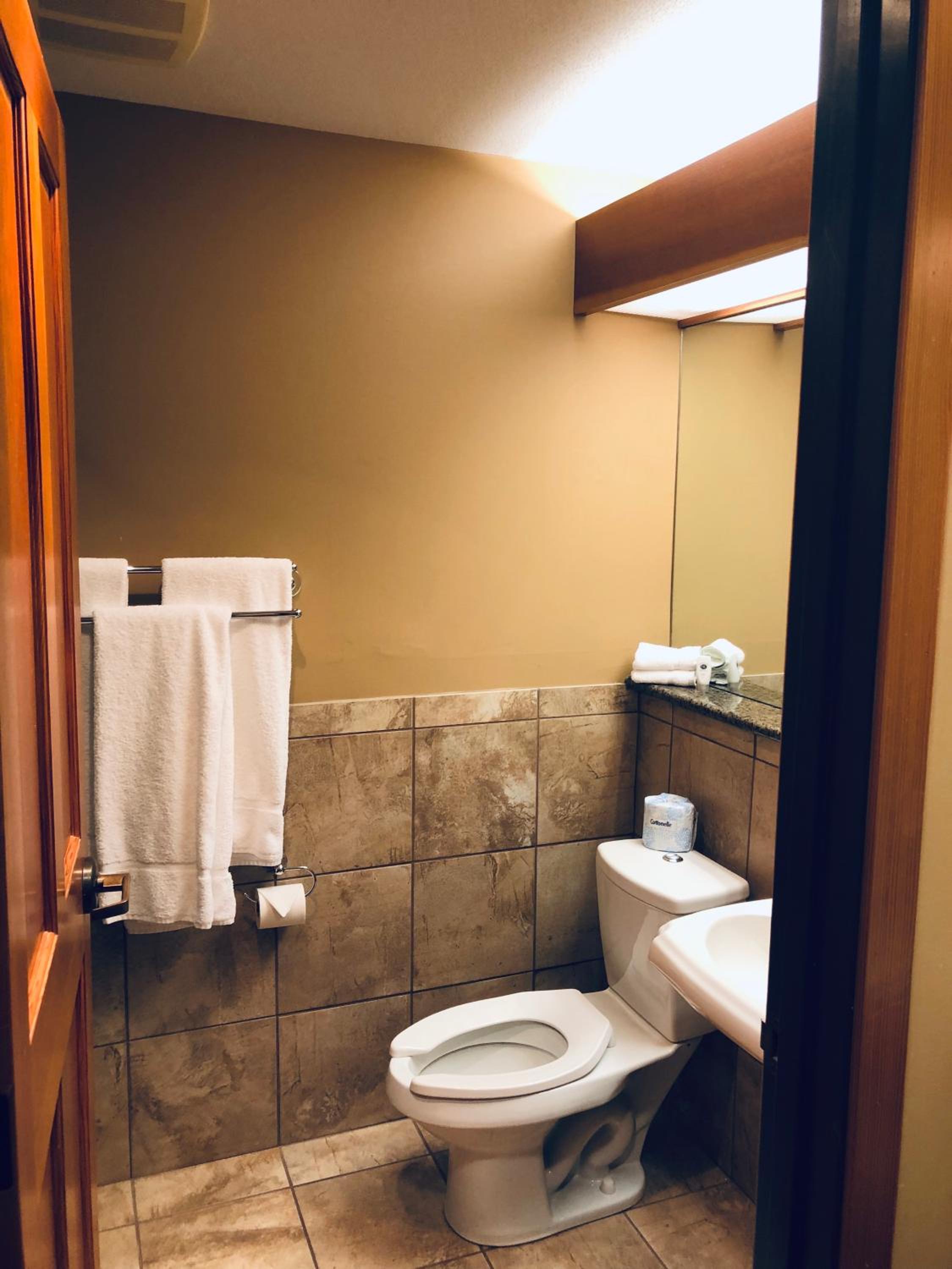 Location was terrific only 5 minutes from our sons house. The desk clerk was wonderful when we arrived on a Thursday. She was very pleasant and reserved a room for our stay on Sunday and Monday. The room was a shorter walking distance.