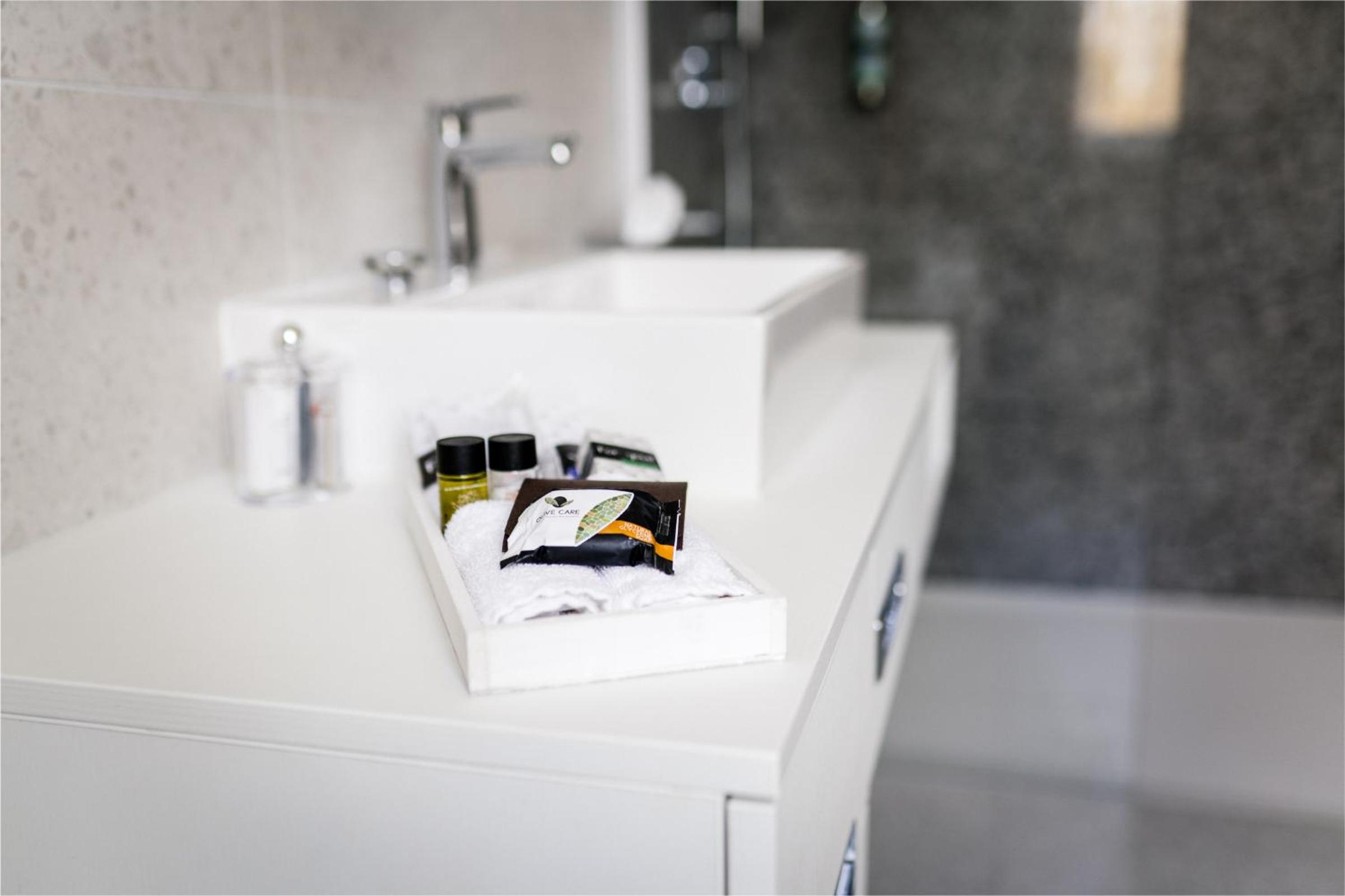 Auf den ersten Blick erscheint alles sehr sauber . Das schöne und moderne Badezimmer bietet viele Pflegeprodukte, allerdings auf unansehnlichem fleckigen Holztablett, auf dem sich kleines gekräuseltes Haar befindet. Die WC -Bürsten-Halterung aus Metall hat außen eklige bräunliche Flecken , die Jalousie im Bad ist aus der Verankerung , das schöne Bad wirkt dadurch sehr lieblos und ungepflegt. Eine Nachlässigkeit in der Grundsäuberung ist auf Fußleisten und in den Ecken zu sehen. Sehr schade und dem Preis und der Atmosphäre nicht angemessen .