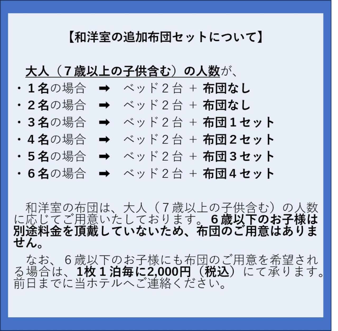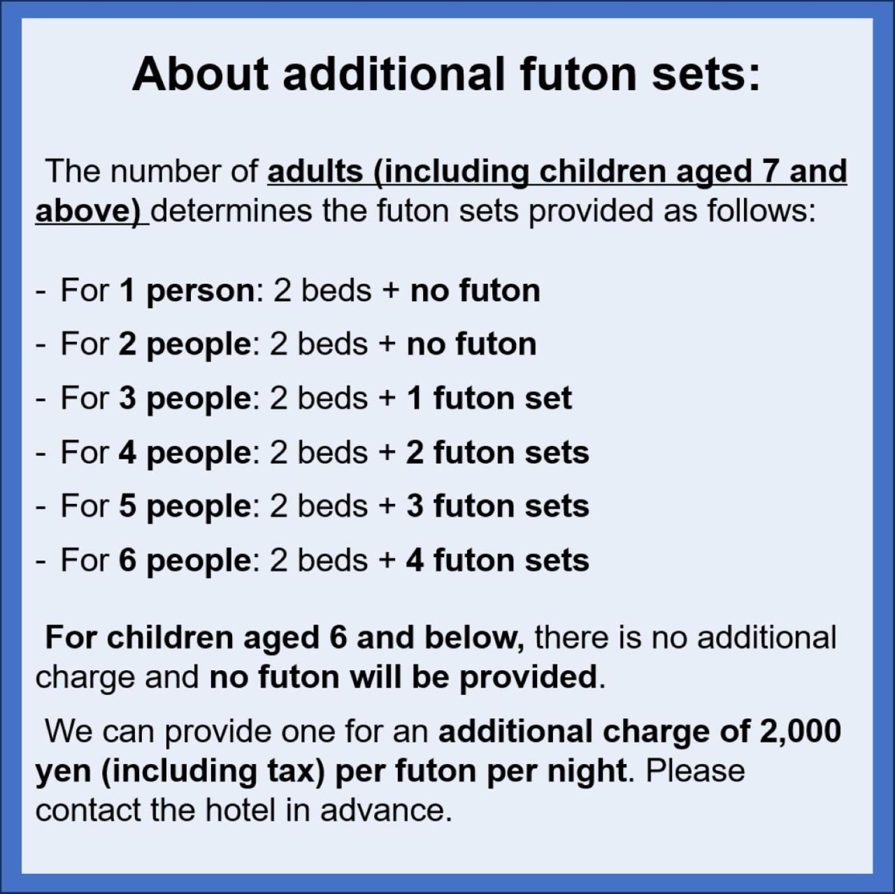 Children up to and including 6 years old stay for free when using an existing bed.