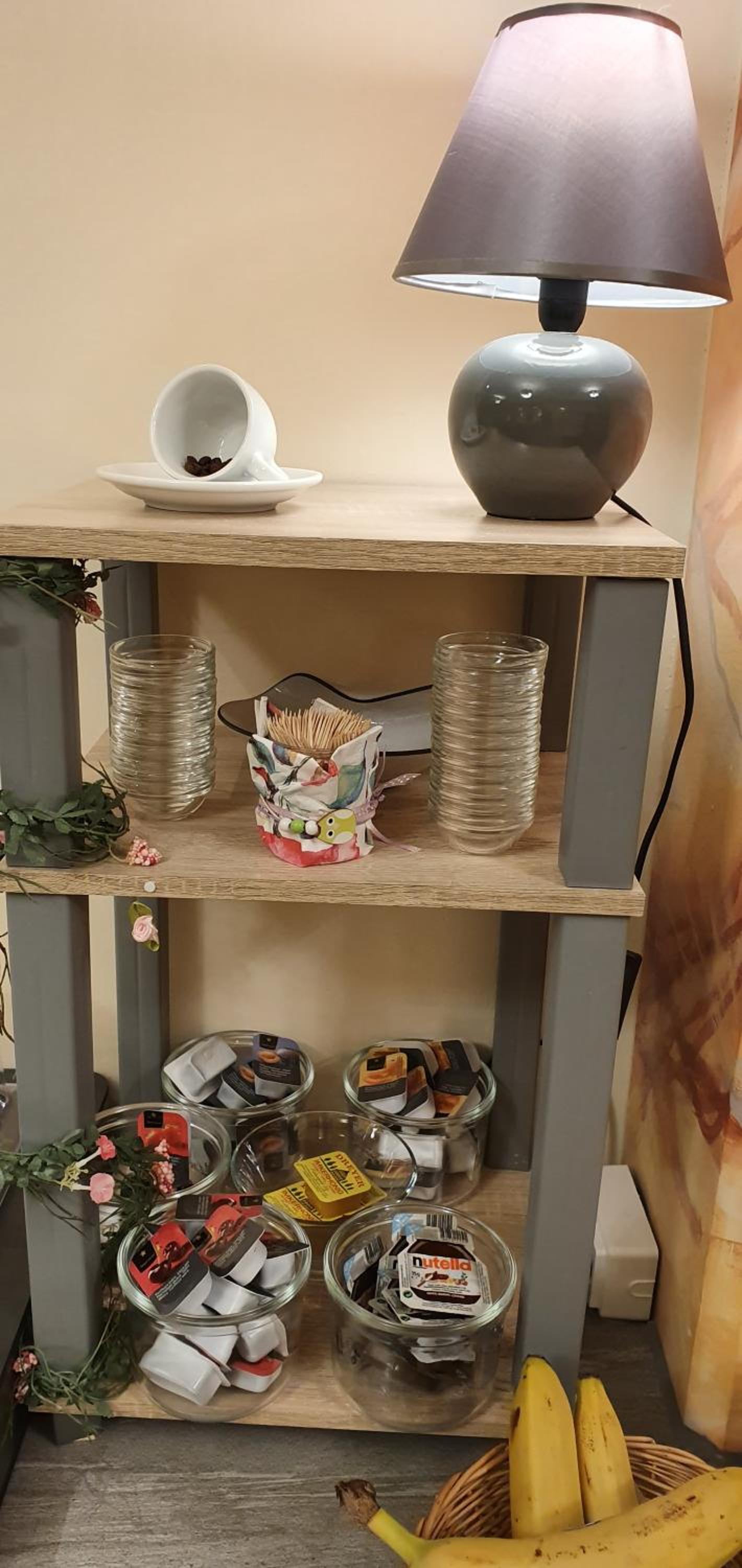 Ein Teil des Inventars war kaputt und das Zimmer extrem schmutzig. Die Lampe im Spiegel war kaputt und in der Küchenzeile war nur ein Topf . Geschirr, Besteck und Tassen waren auch klebrig. Die Kaffeemaschine war sehr verkalkt. Es scheint, dass das Apartment lange leer gestanden hat. Auf den Flächen klebten Speisereste oder Kaffeeränder .