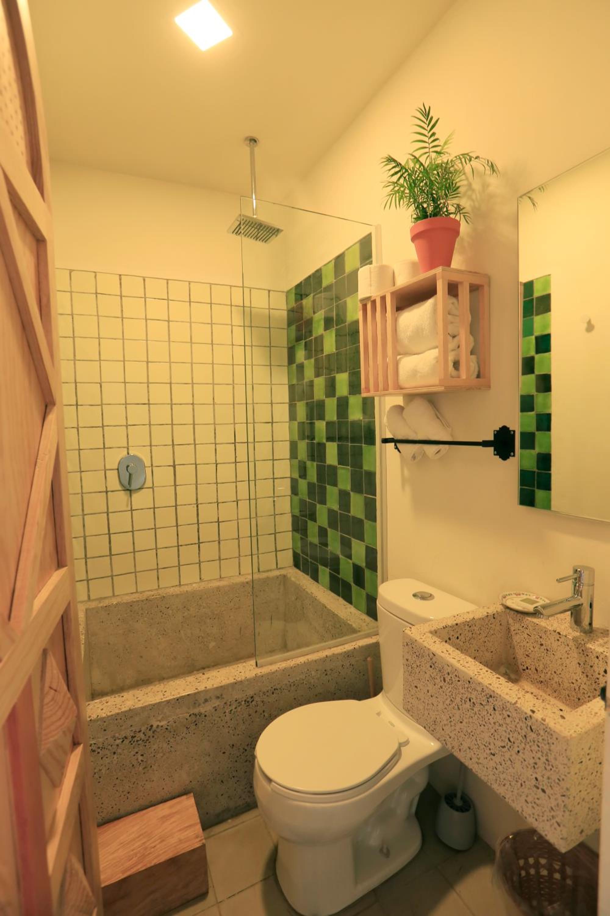 We really enjoyed the breakfast. The chiliquilies were delicious. I liked the cool green interior and the pool even though I didn't use it