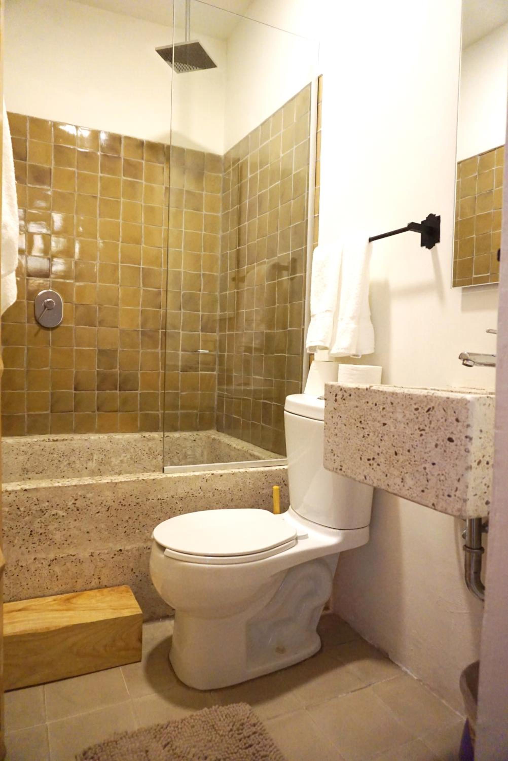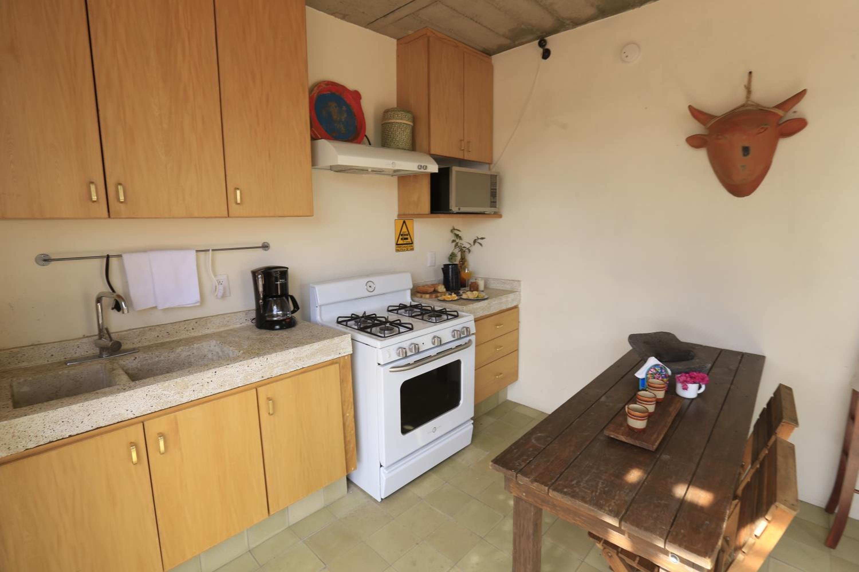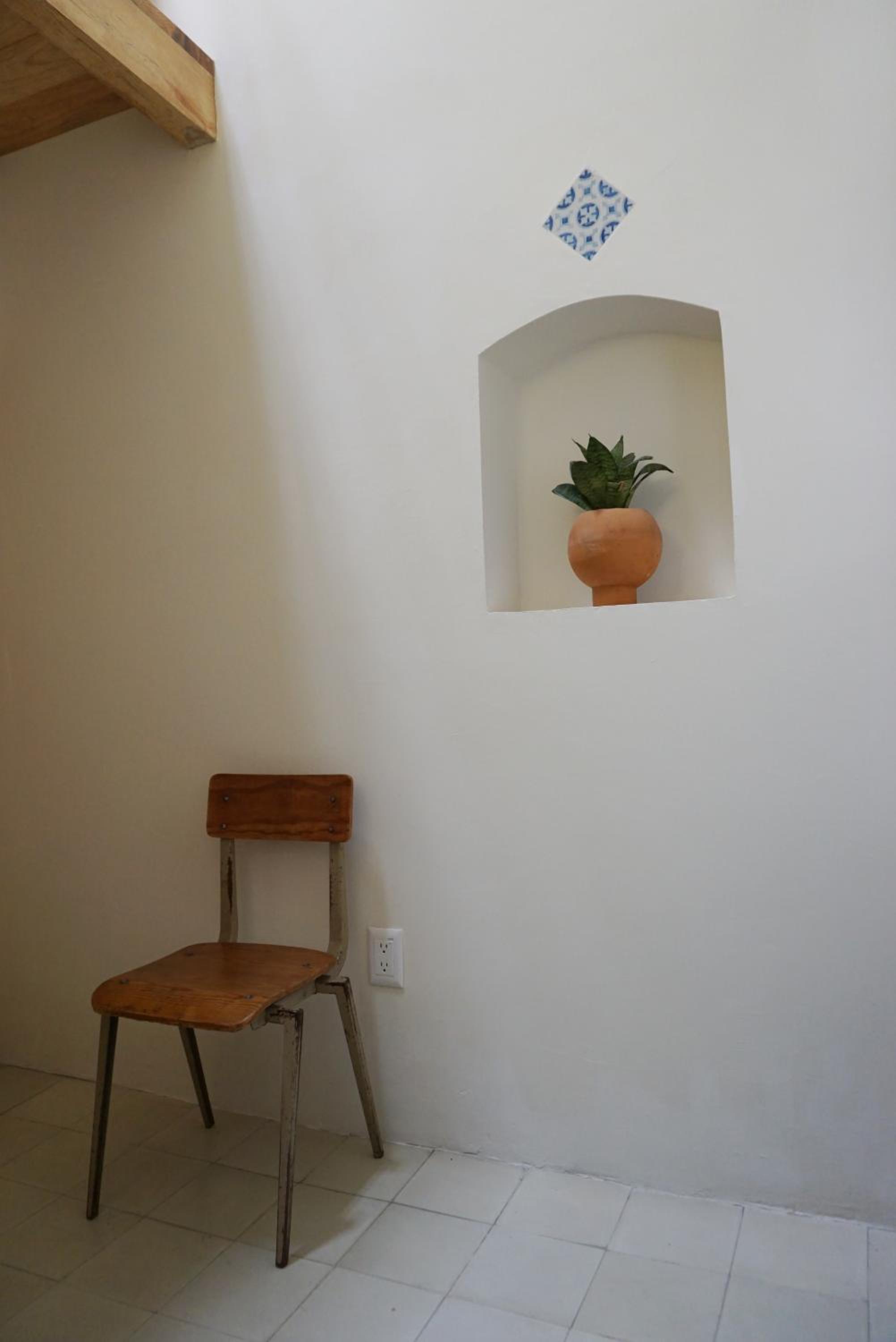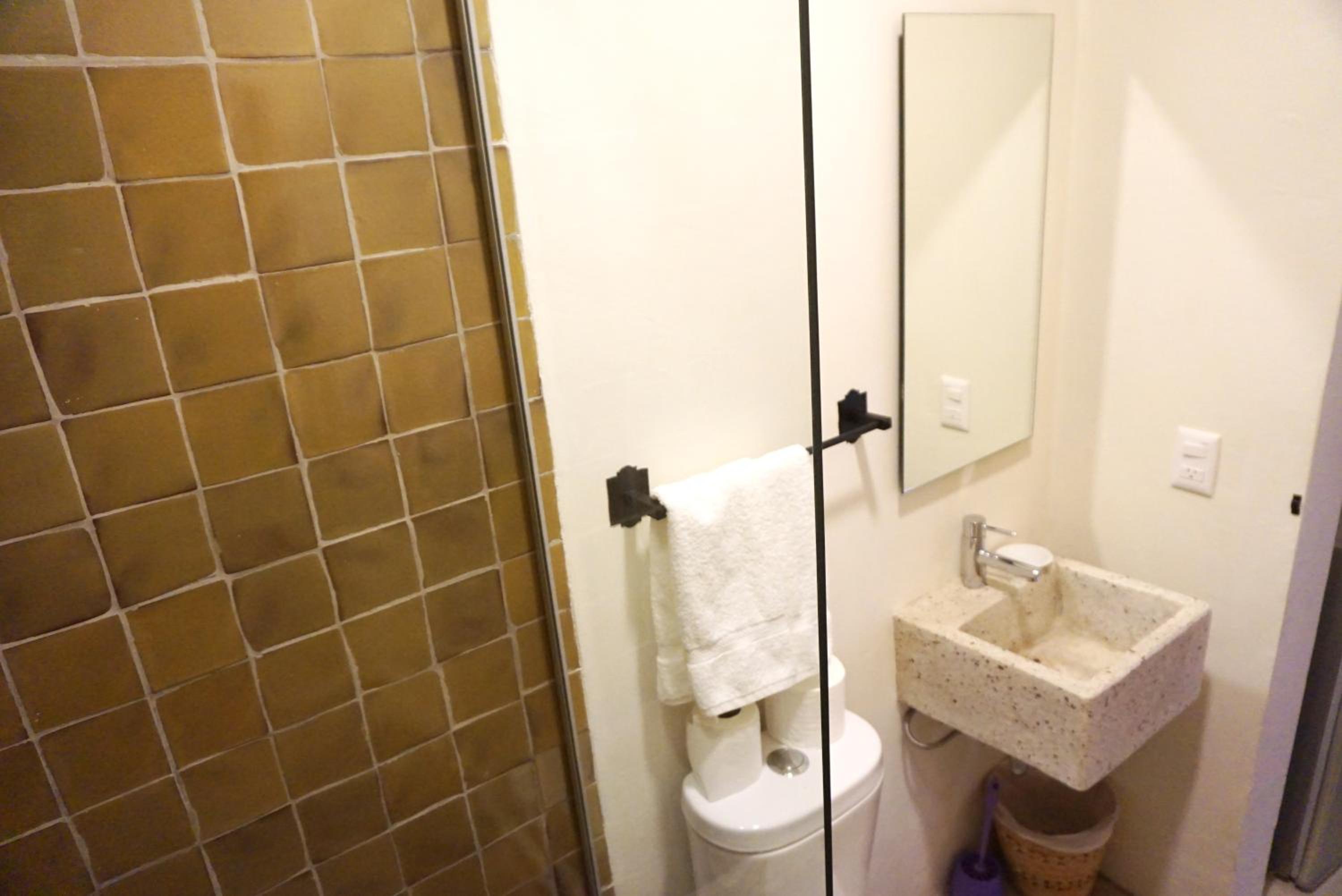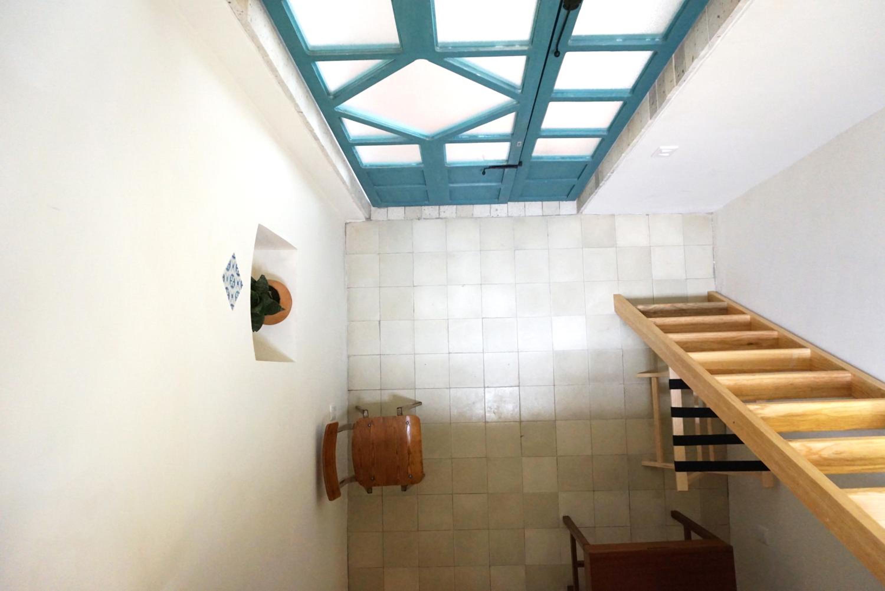 La ubicación a dos cuadras del MUSA y tres del templo Expiatorio. A 500 m de la avenida Chapultepec. Una casa antigua remodelada con buen gusto mexicano moderno. Hay una pileta tipo jacuzzi. Terraza con cocina y refrigerador. Desayuno incluido: chilaquiles o sándwich, café o jugo, fruta. La cafetería a un lado de la puerta de entrada al edificio.