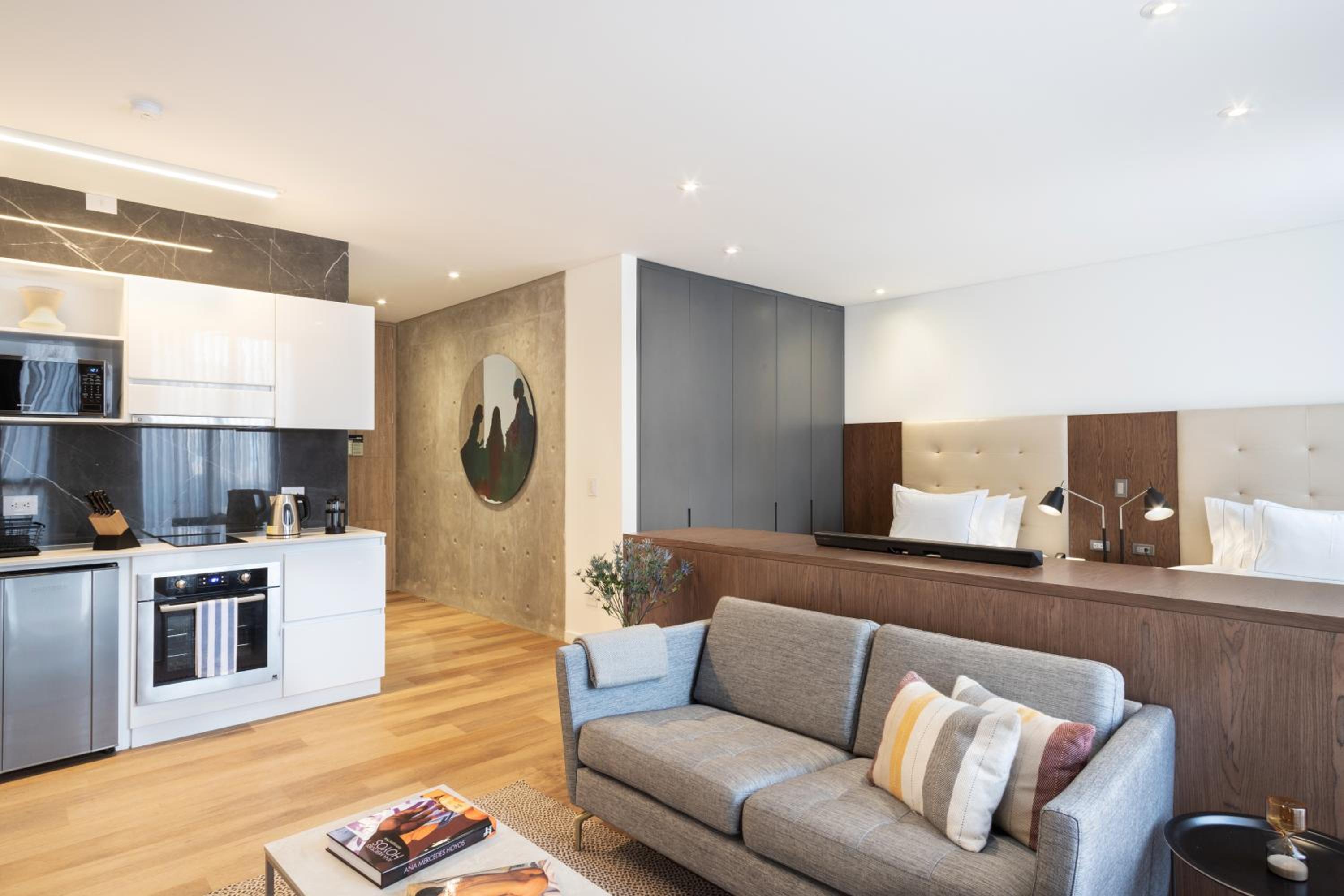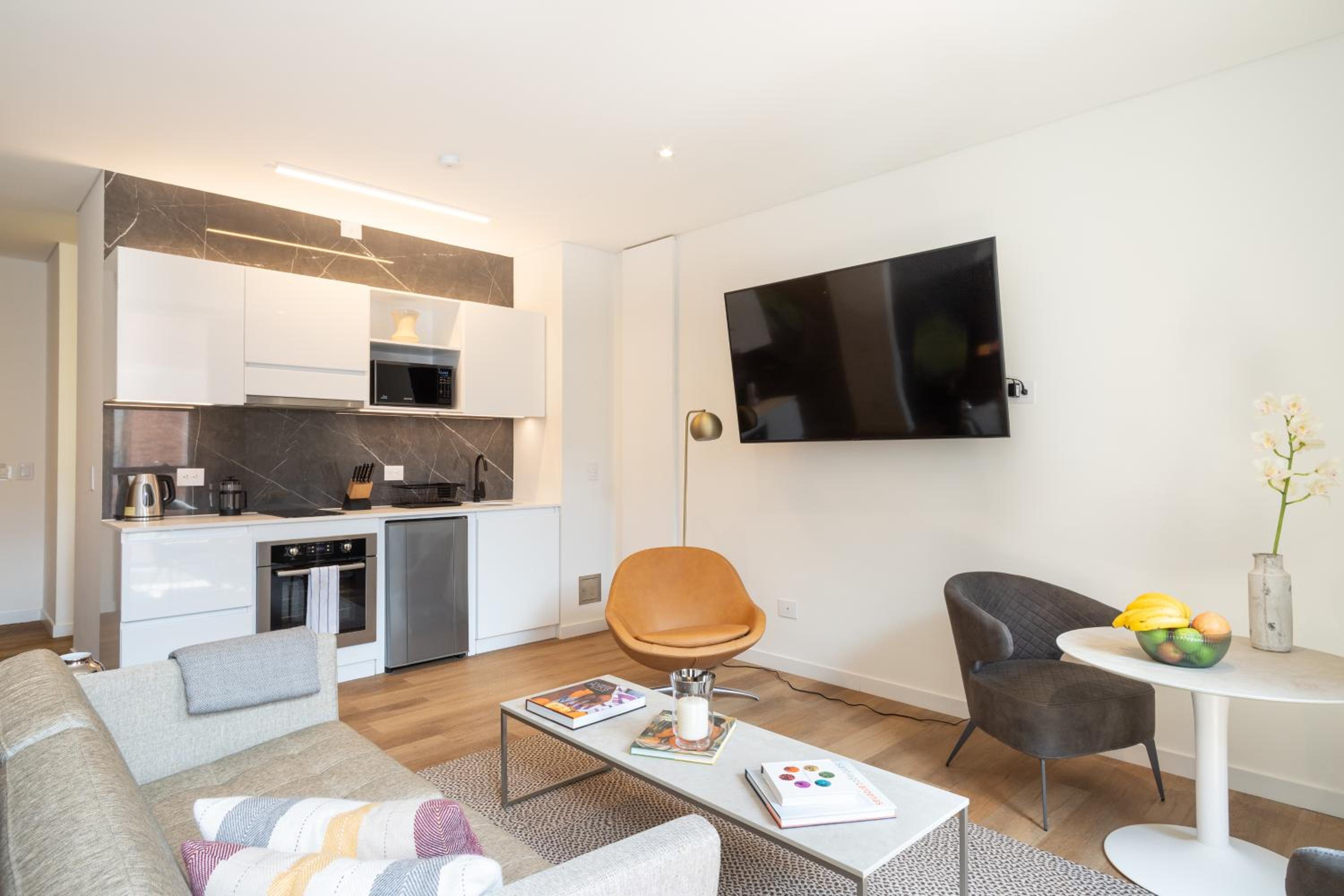 Each unit features a spacious seating area, modern conveniences including a flat-screen TV, and a private bathroom stocked with luxury essentials. Enjoy the comfort of a fully-equipped kitchen with an oven, microwave, and coffee machine for your convenience.