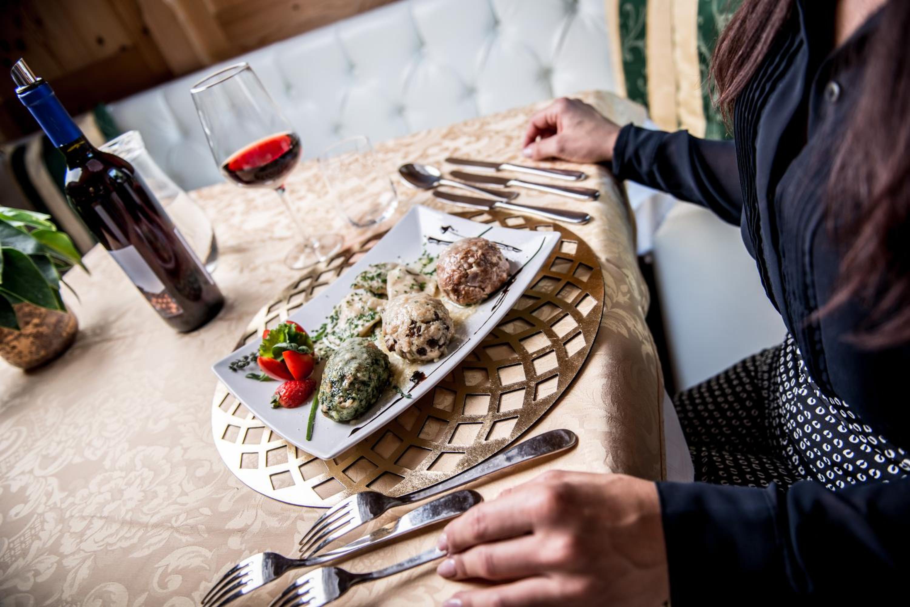 Indulge in a culinary journey at the hotel's restaurant, which serves both Tyrolean specialties and Italian cuisine. Enjoy BBQ evenings and afternoon buffets. Additionally, the hotel offers free ski storage, bike rental, and parking facilities for a hassle-free stay.