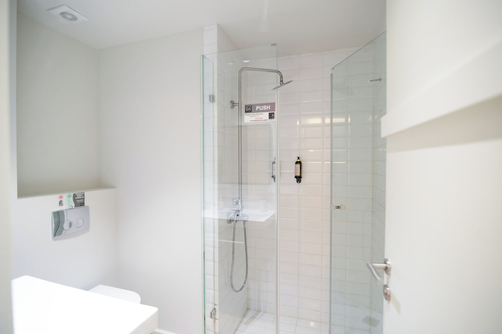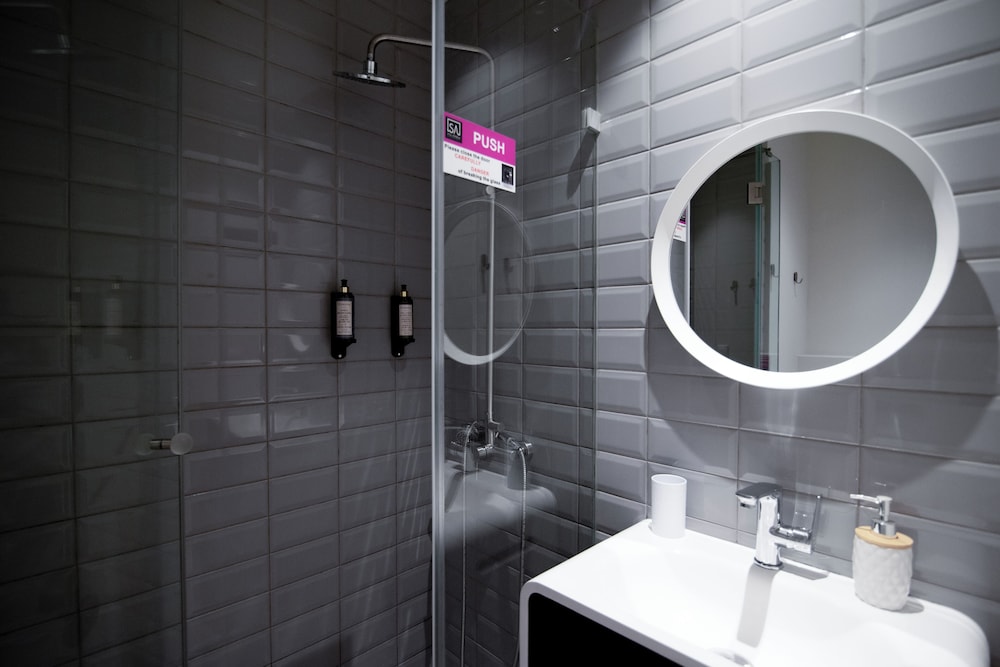 Chambre spacieuse mais salle de douche exiguë avec des traces de moisi dans la douche. À proximité de tout.