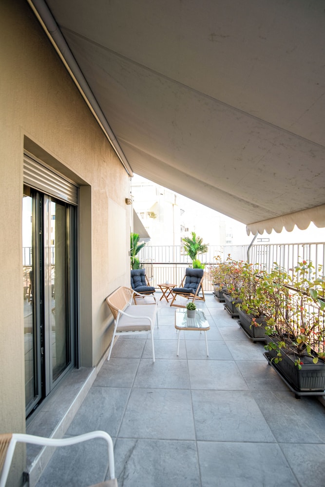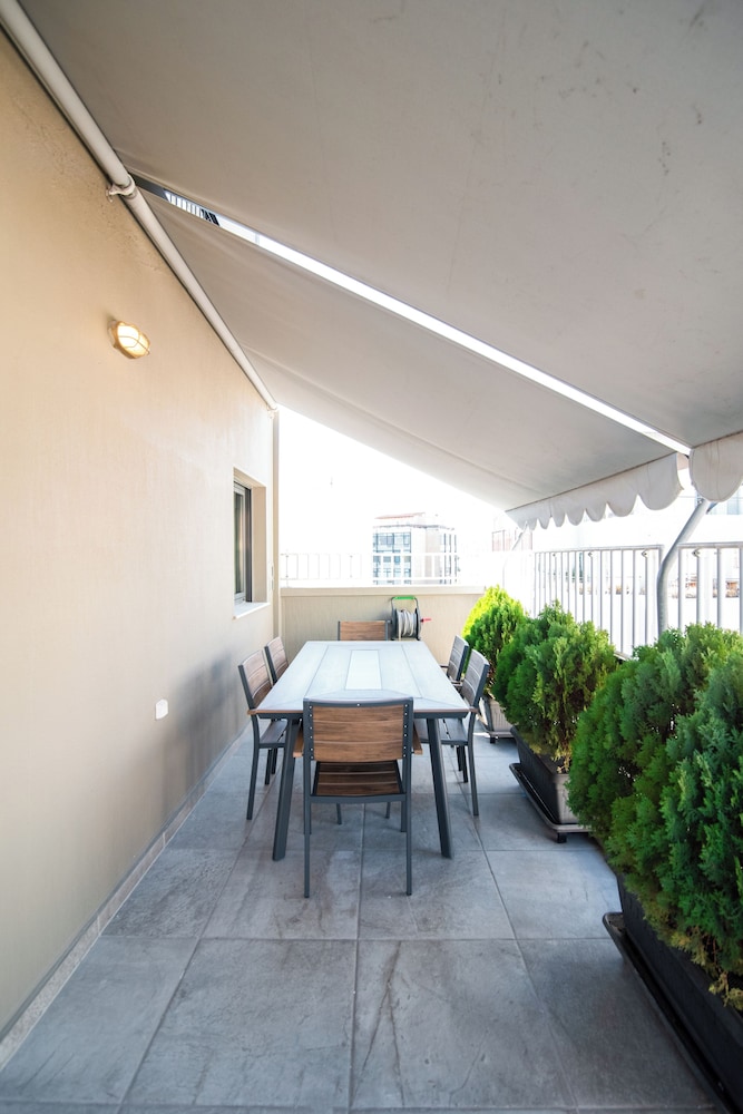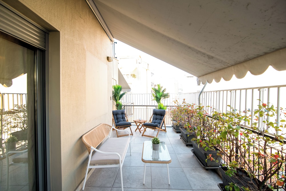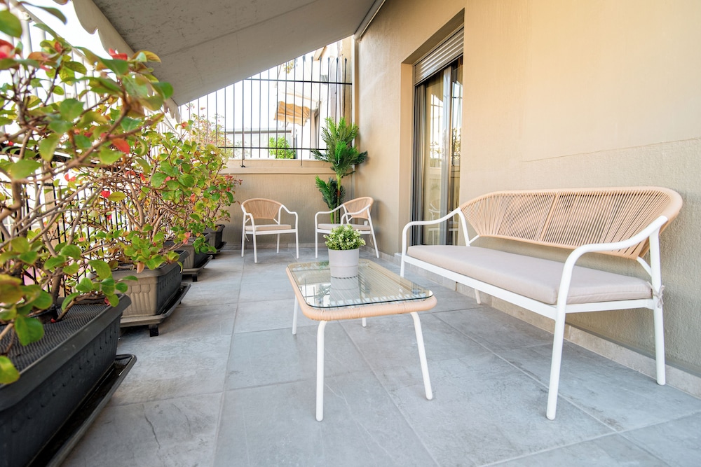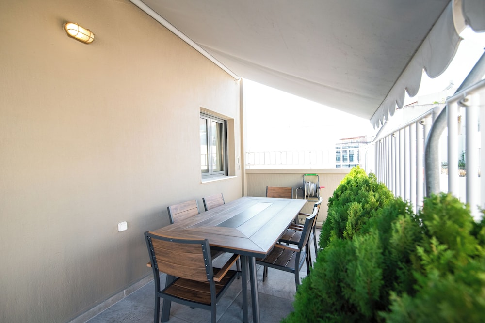 Take in breathtaking views from our lovely terrace, the perfect spot to unwind after a day of exploring Athens.
