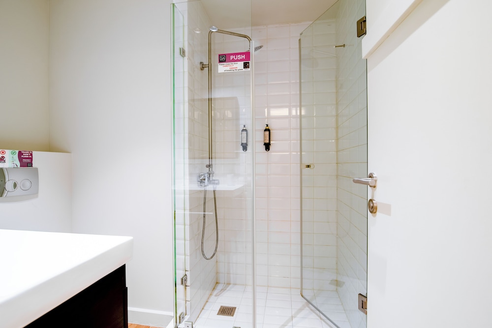 The facility is clean and basic, but the shower is outdated and lacks a rack for shampoo, or loofahs. The worst part of the room is the lighting situation: you can’t dim the lights or have only one or two on. It’s either all lights on or all out.