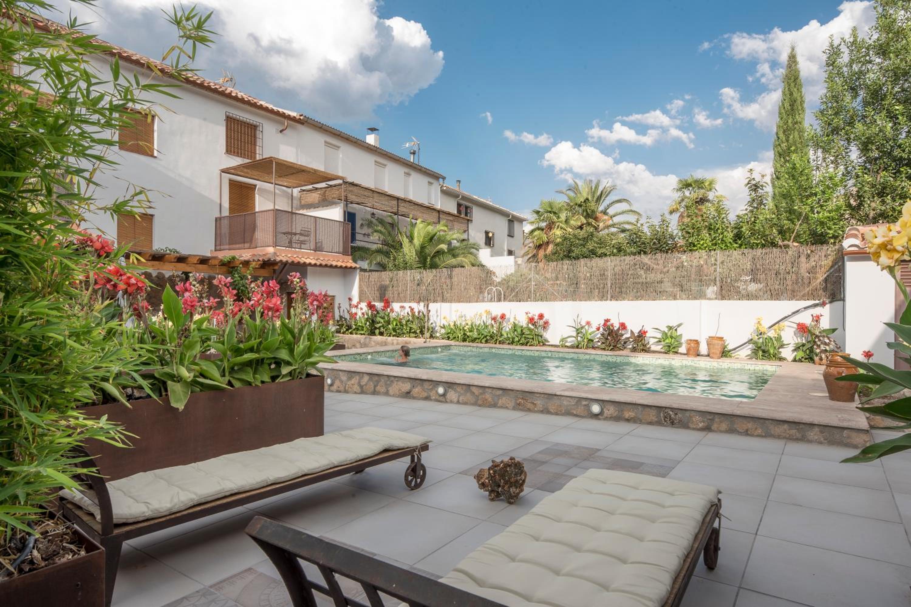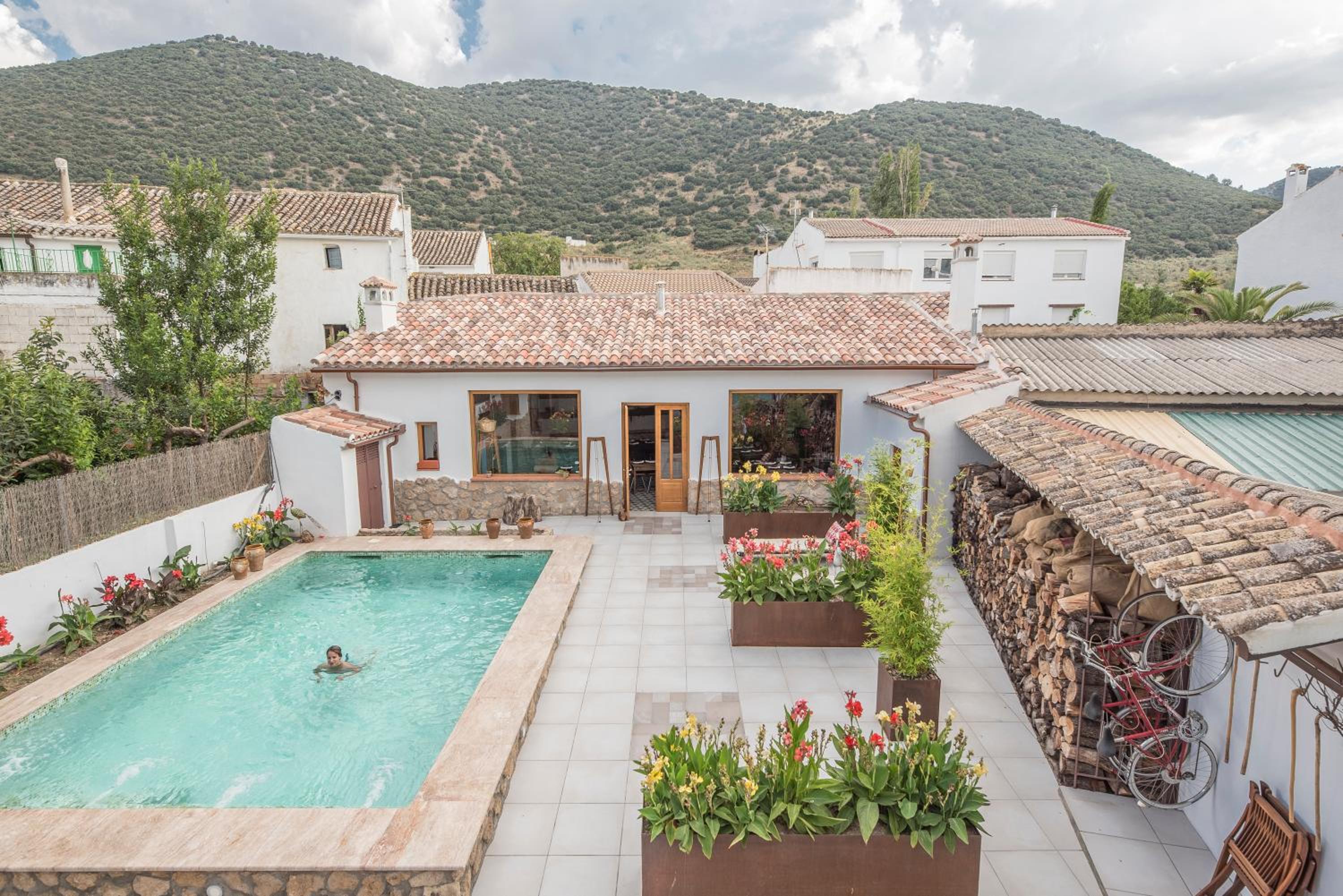 rustic and romantic hotel with a lovely pool and garden area.