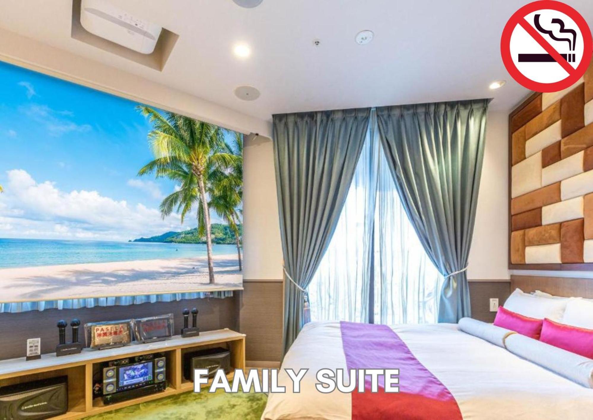 Great family space….big enough for family of 5. Clean. We had the deluxe family room. Liked the seperate bathroom from the sleeping area. Location was walking distance to nightlife and restaurants and next to a family mart.
