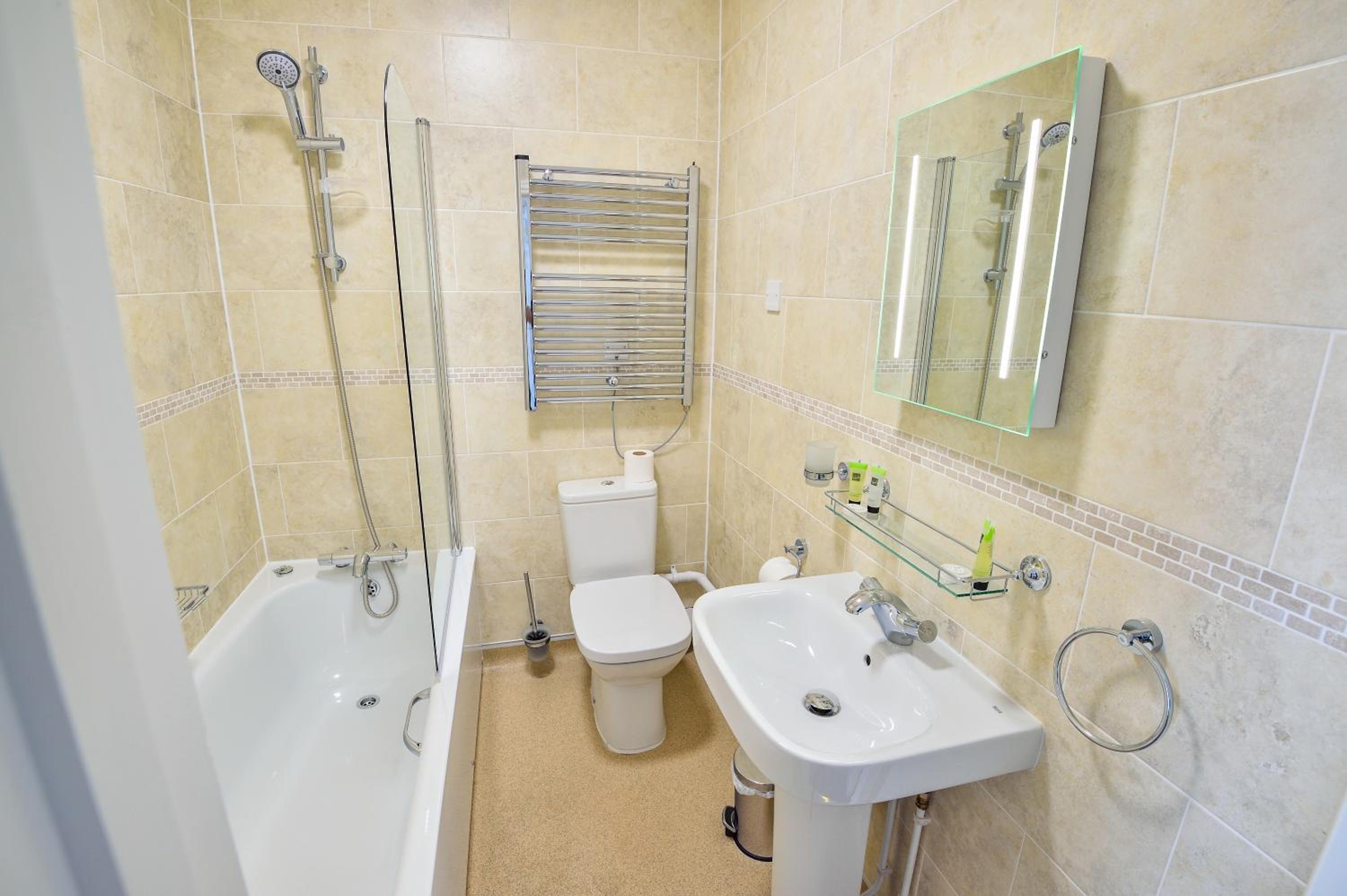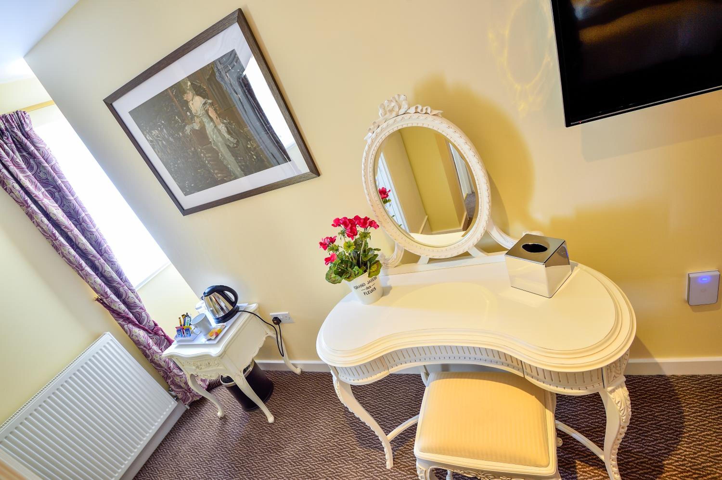 Very friendly and helpful staff especially Connor on reception. He twice assisted me with my suitcase without me asking . The evening meal was extremely nice as was the wine. Waitress service was efficient and friendly . The breakfast was good and plentiful. Car parking on site and location quite central to the town. Tea and coffee making facilities in the room .