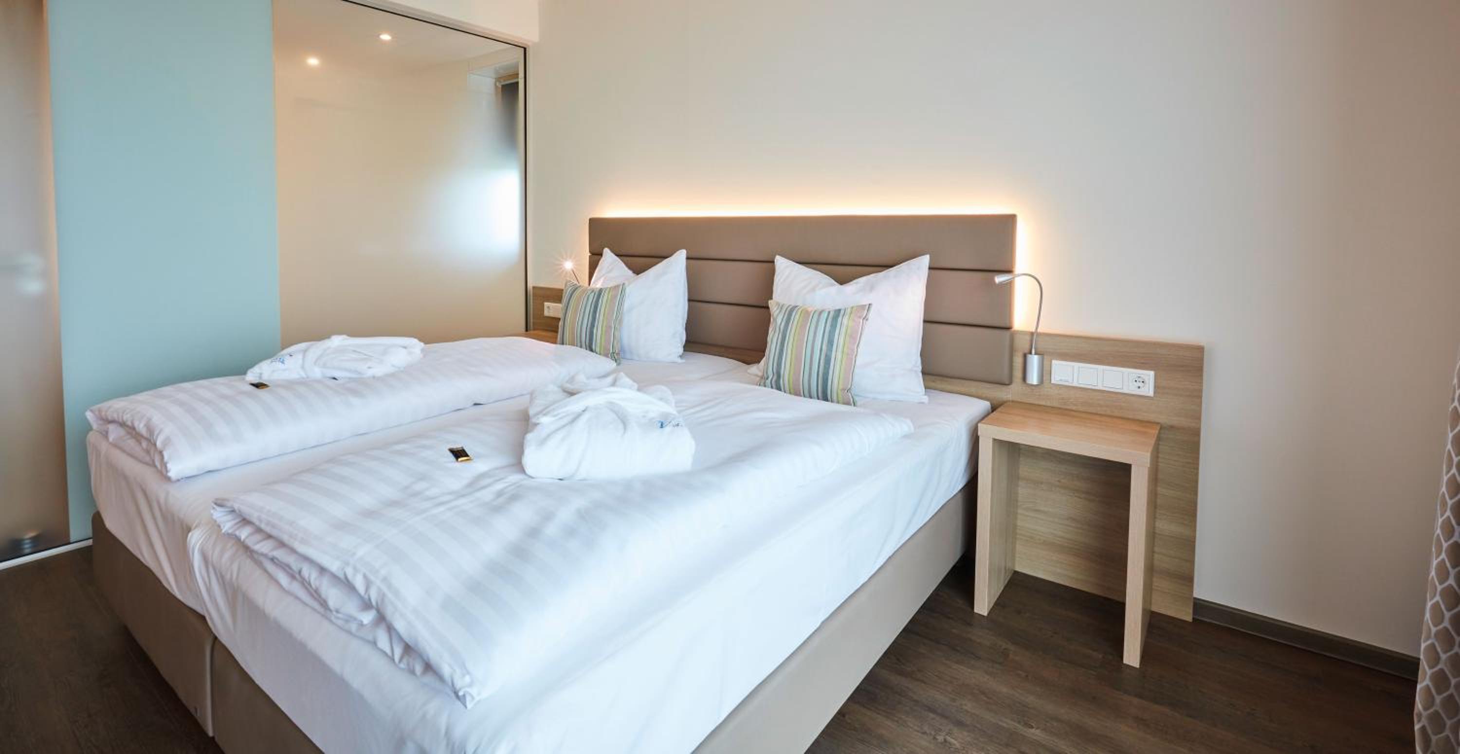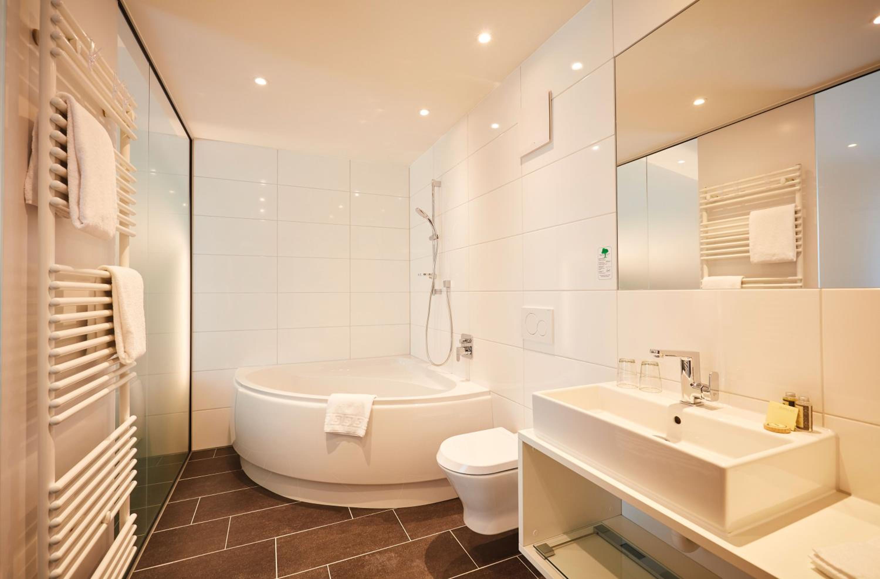 Vital Hotel an der Therme GmbH offers elegant rooms with modern amenities, including flat-screen TVs and plush bathrobes. The private bathrooms are equipped with a hairdryer for your convenience.