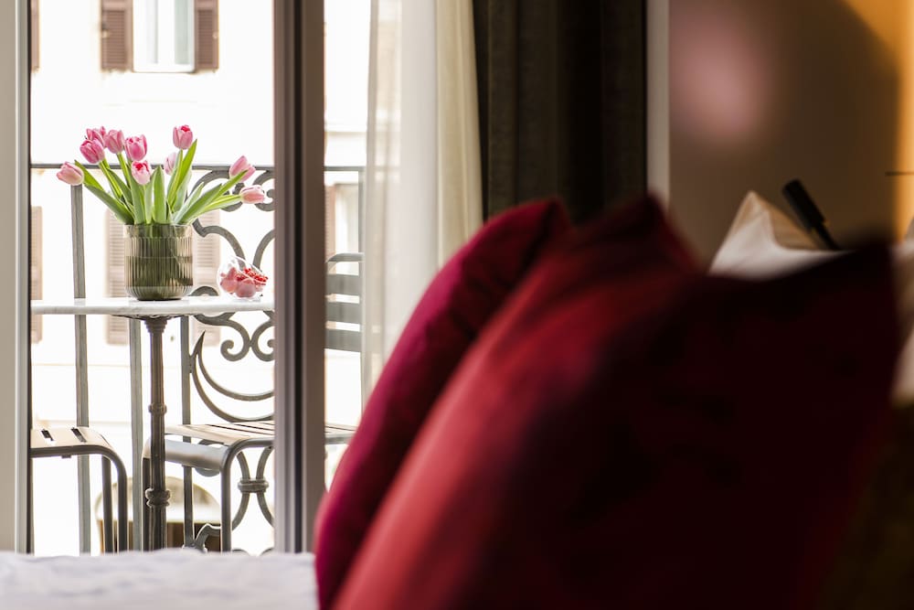 We were staying in the annex which is about a block away from the main hotel. The annex is on a very busy street close to the Spanish Steps but it was great to sit on the (tiny) balcony and enjoy the lively atmosphere, noise was not a problem. The room was pretty small but looked recently renovated, nicely decorated and very clean. Breakfast was great and served in the annex. The location is fantastic with most of the popular sites very walkable.