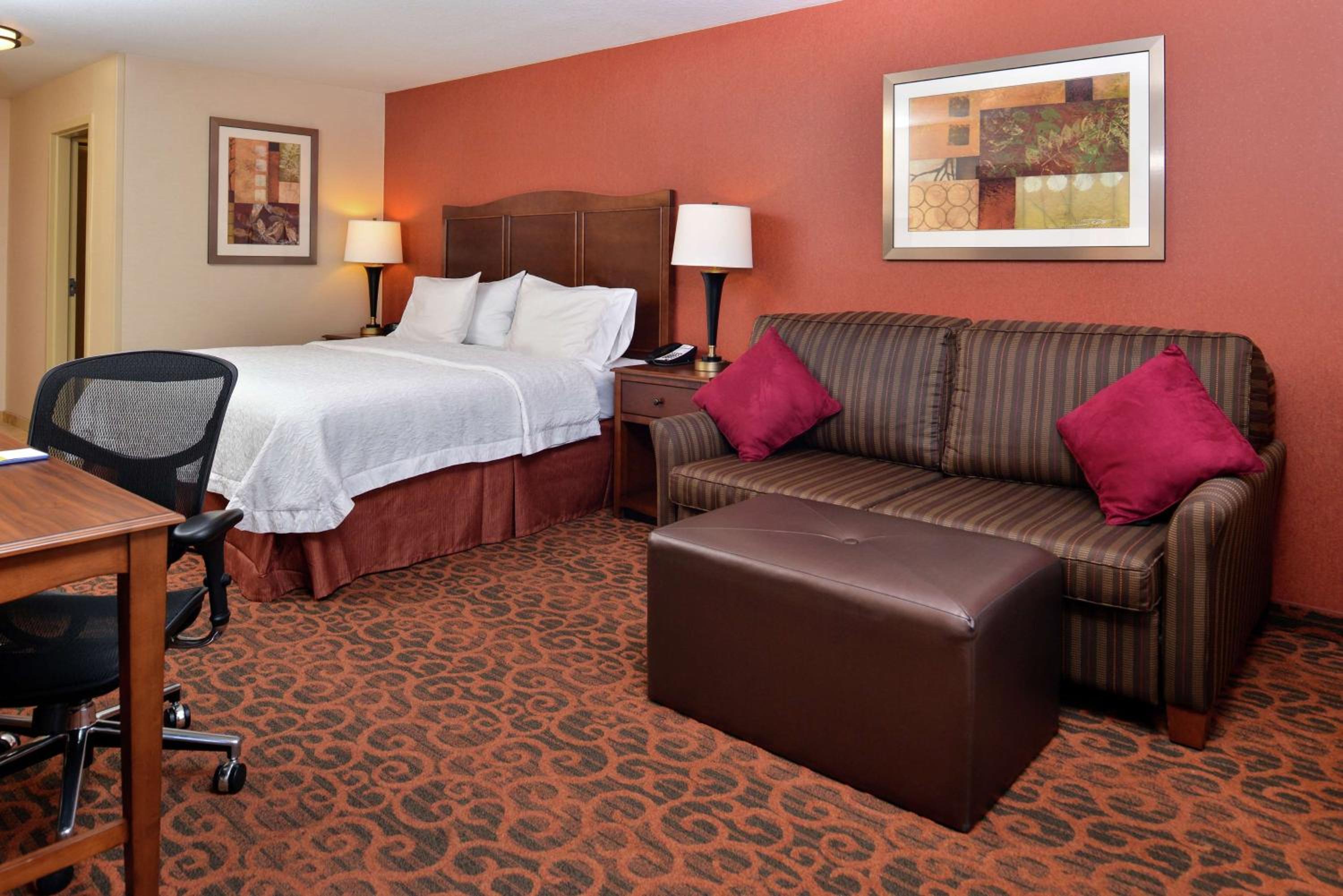 Enjoy the convenience of an indoor pool, hot tub, and a daily hot breakfast during your stay at Hampton Inn Idaho Falls/Airport. Unwind in spacious rooms equipped with modern amenities like a flat-screen TV, microwave, and refrigerator.