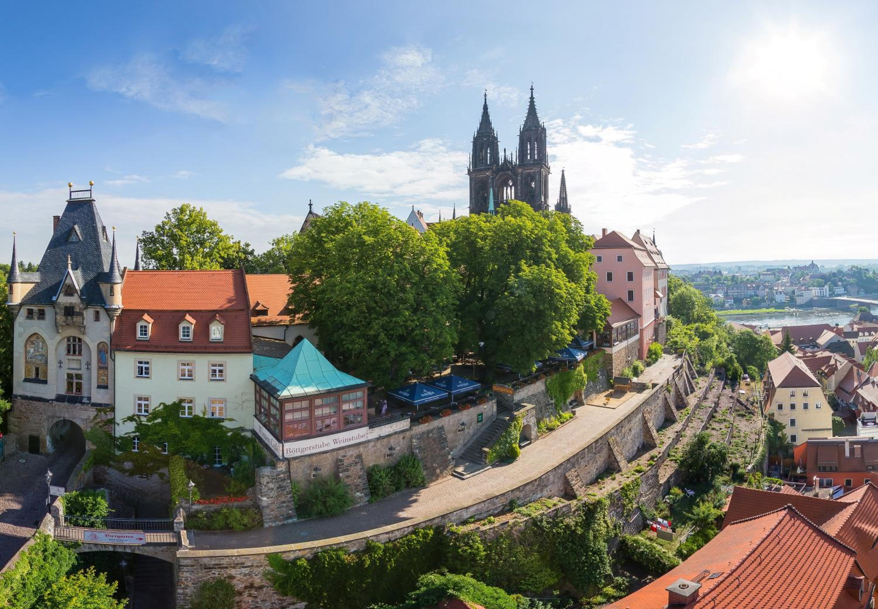 Historic Elegance: Immerse yourself in the charm of the 19th-century Romantik Hotel Burgkeller, conveniently situated next to the picturesque Albrechtsburg Castle. Enjoy serene rooms offering stunning views of the River Elbe, providing a peaceful retreat during your stay.
