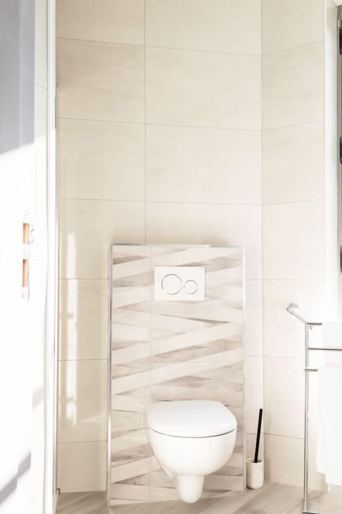 Clean, comfortable, spacious, quiet, kind staff, free and unlimited parking right in front of the hotel, very good neighbourhood, good bike storage options. A short and easy drive to Paris, as well as close to the train station. And they are good at searching when you lose something ;-)