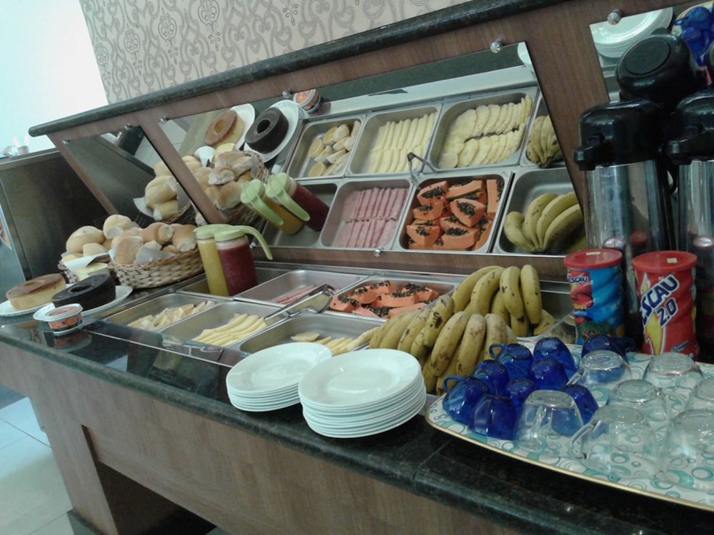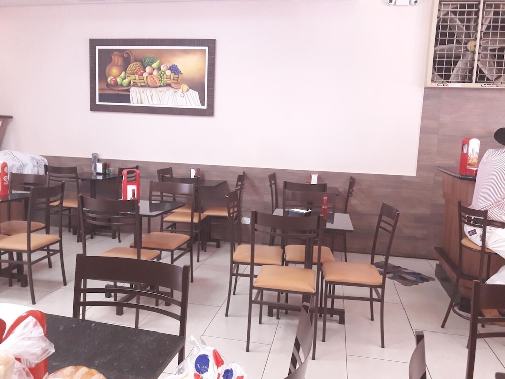 Tem uma padaria deliciosa onde é o servido o café, acesso por dentro do hotel.