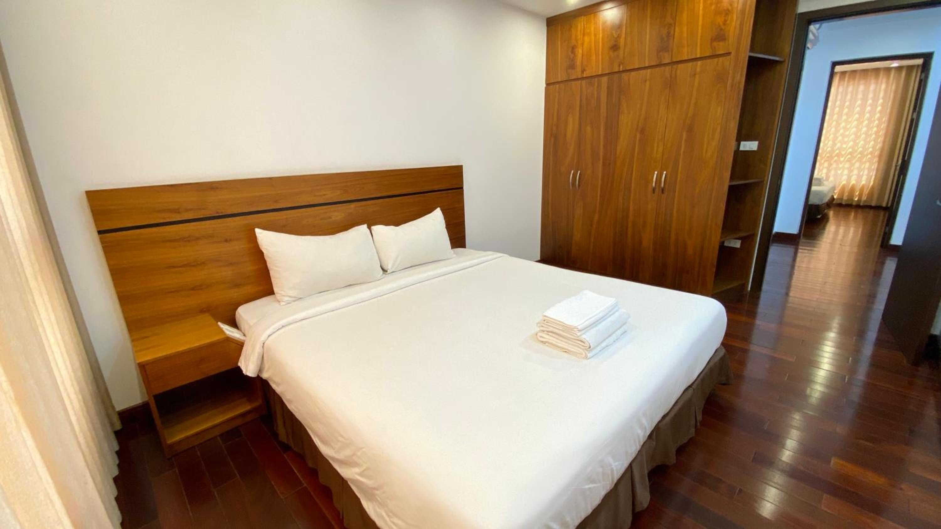Our family booked a 3beds apartment here. The apartment is very spacious and clean. Beds are soft and comfortable. Me and my family feel very comfortable staying here. I would go back and stay here if I visit Hanoi again