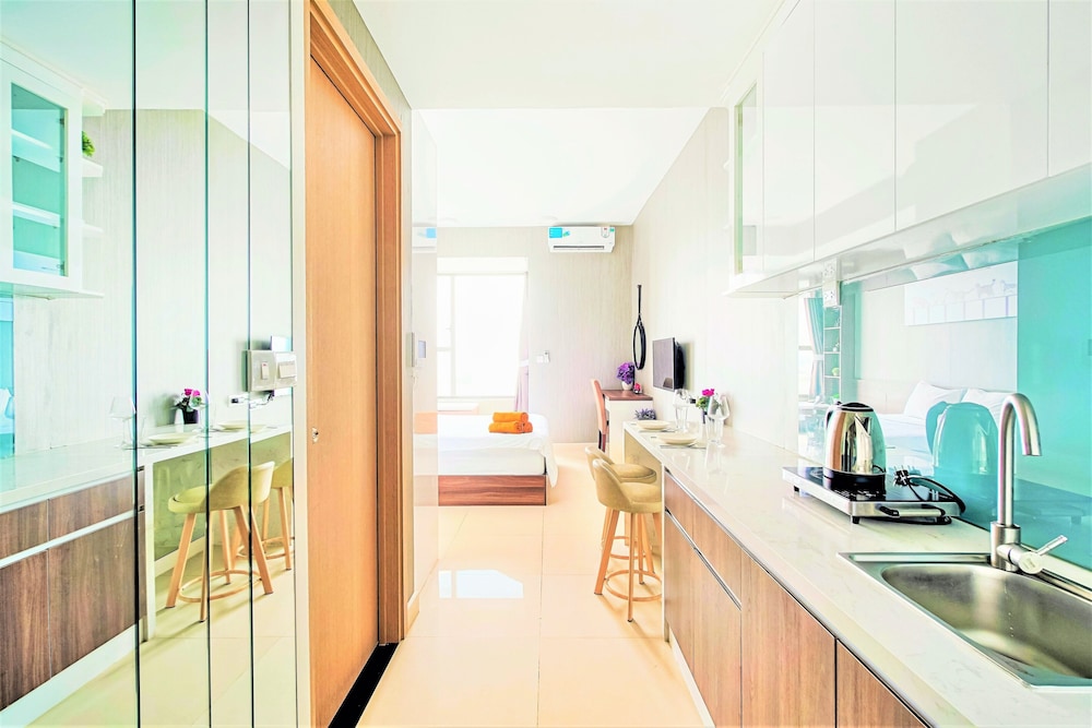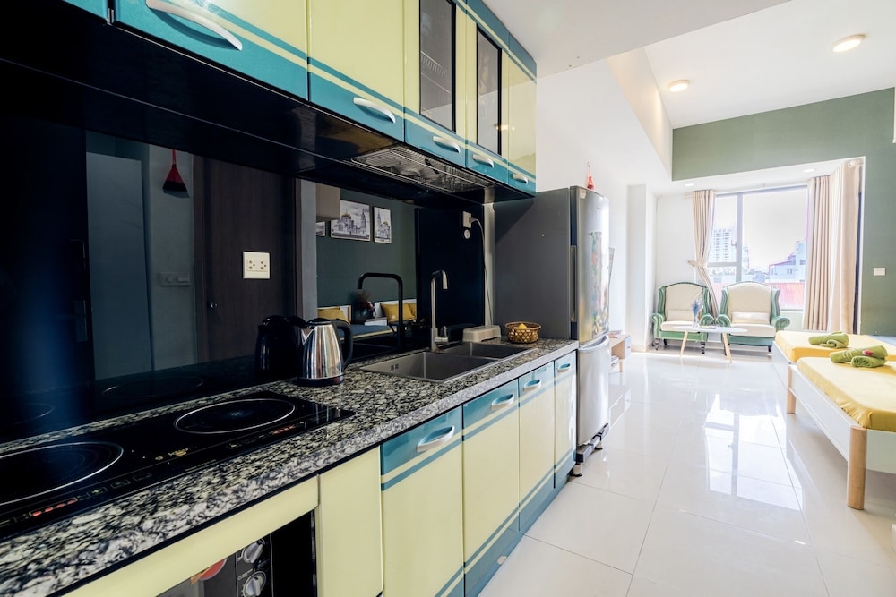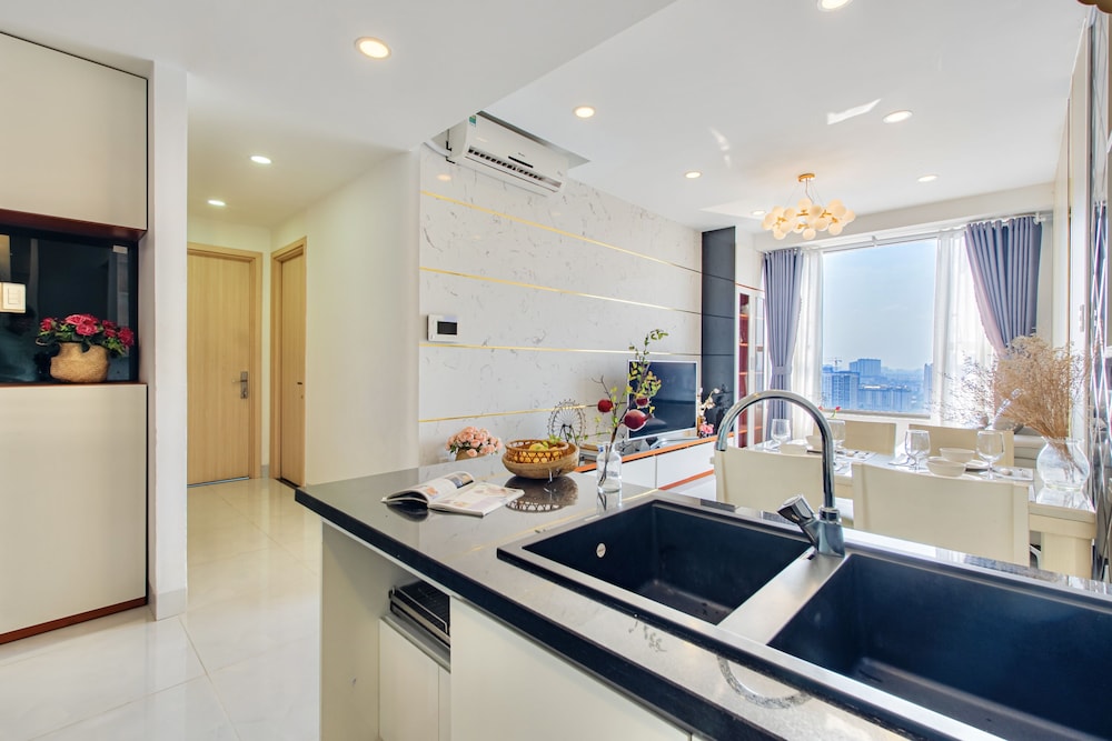 Appartement très salle surtout la sdb avec pleine de moisissures.. literie, draps et couverture sale aussi. Cuisine sale aussi et manque cuillères, verres, tasse à thé... canapé horrible avec des ressorts qui ressortent ! Les chambres sont petites. l'emplacement est bien situé, pas loin du centre de Saïgon.. nous avions demandé un changement de chambre mais aucun signe... Séjour horrible dans cet appartement. Nous le déconseille fortement !
