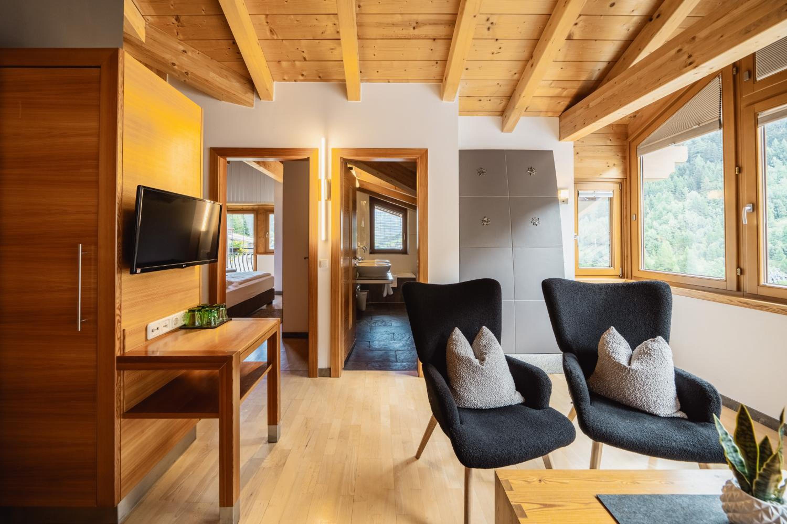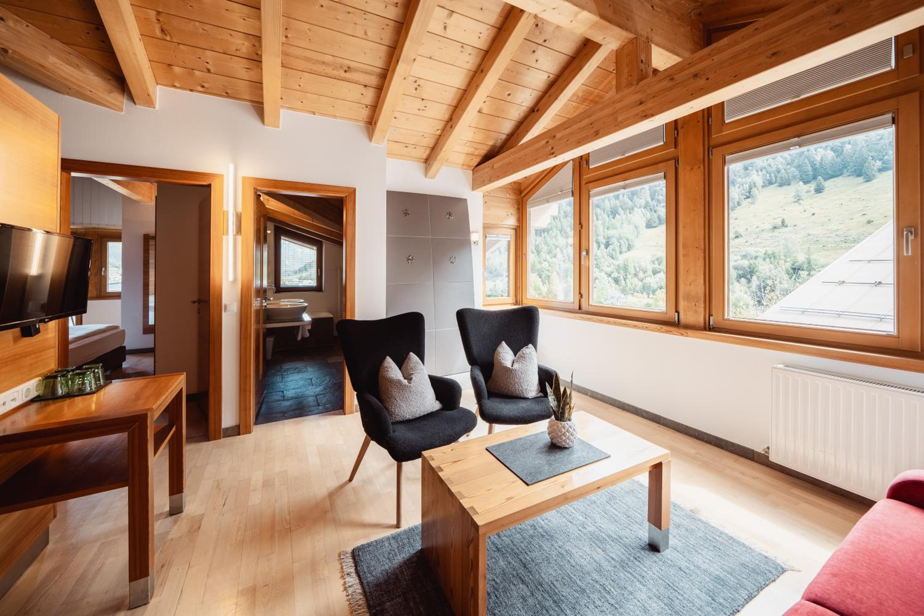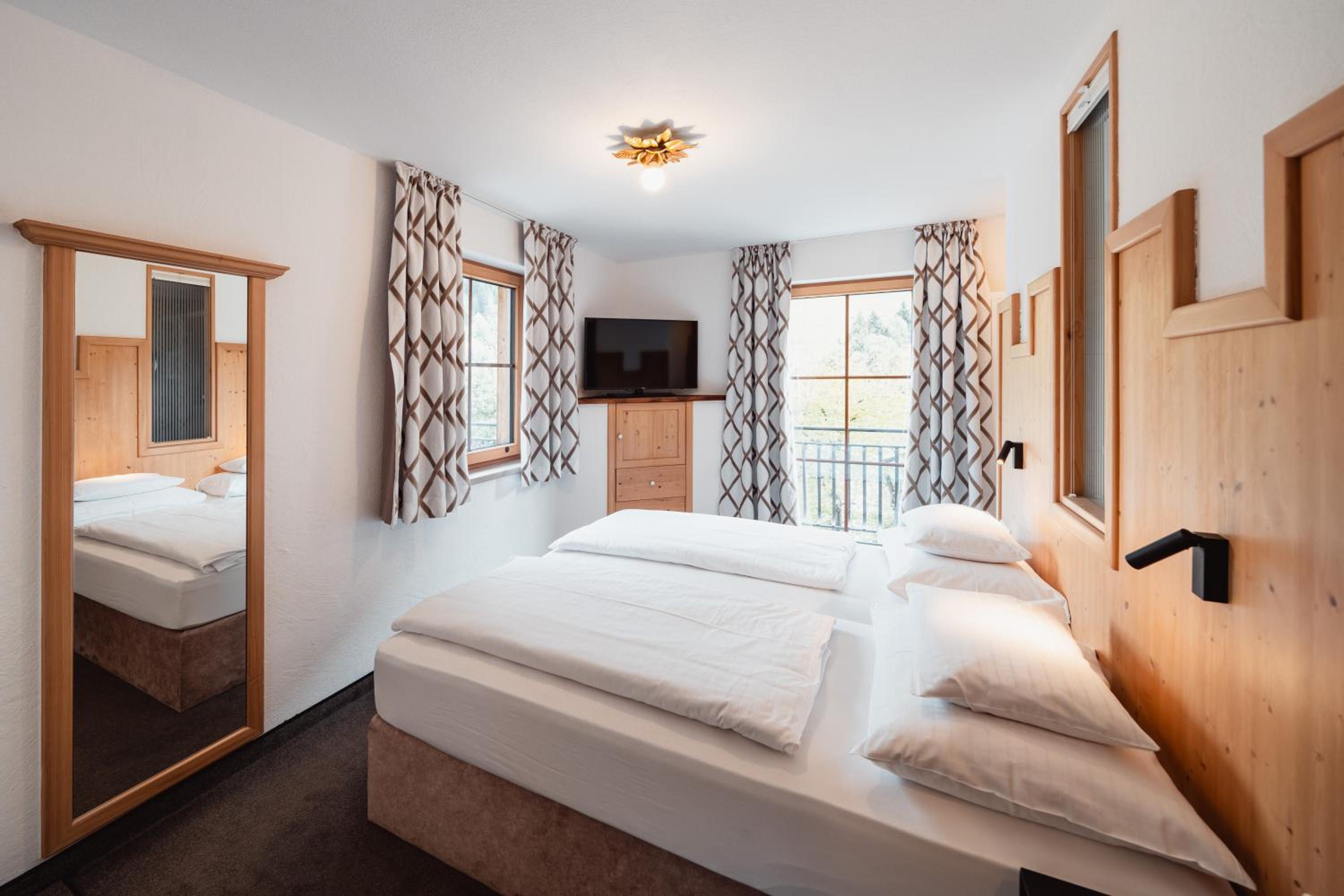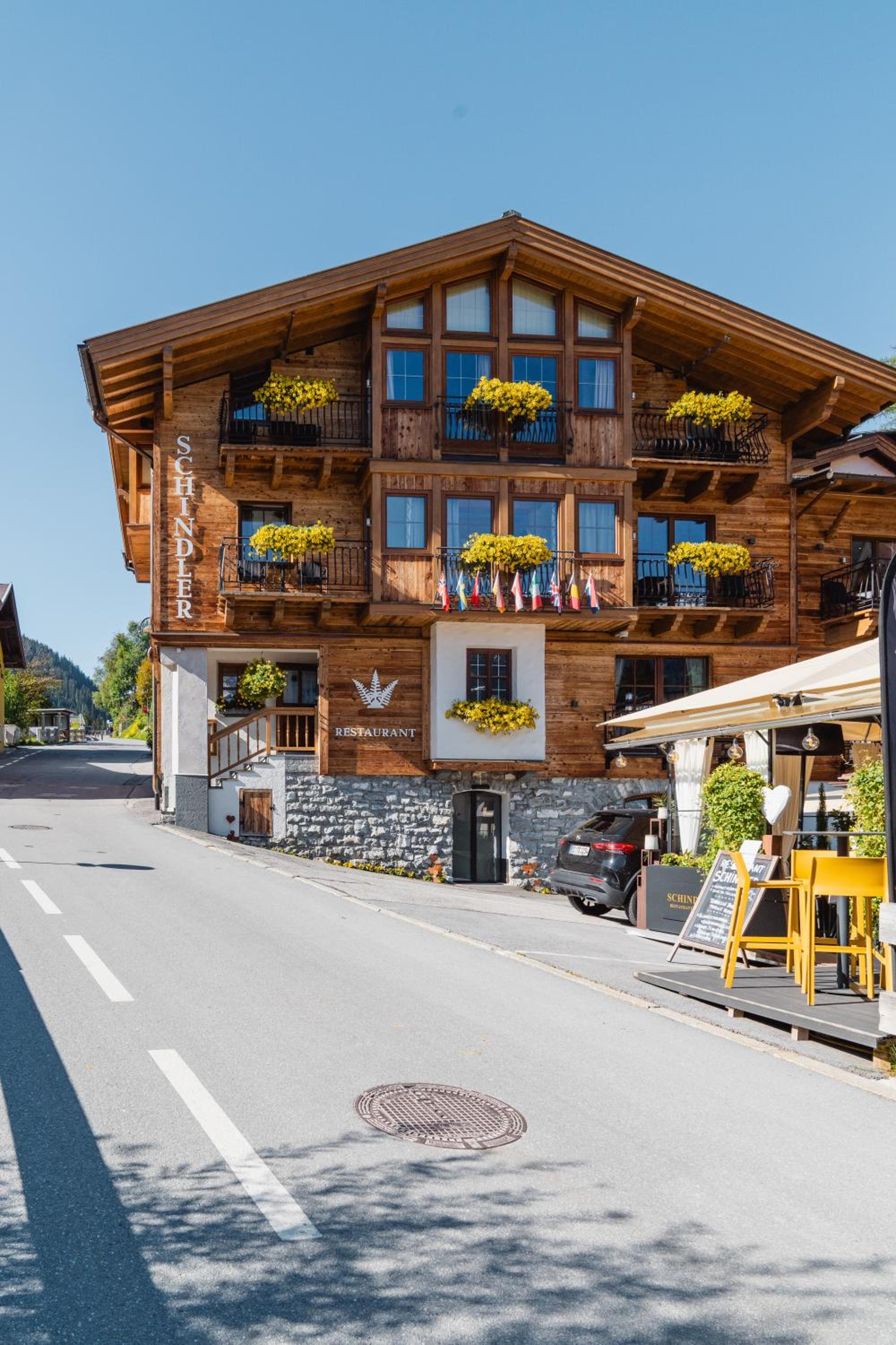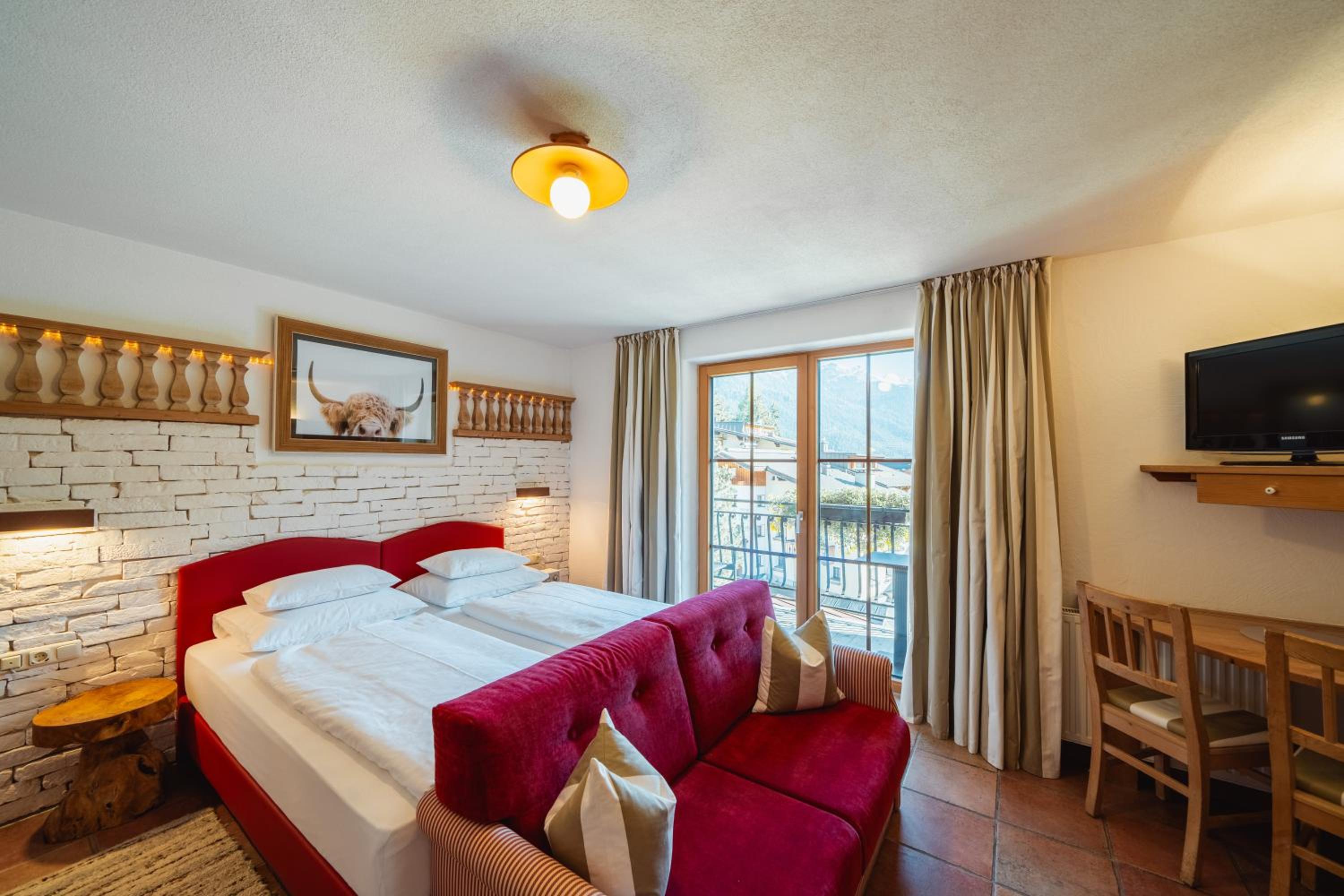 The rooms at Schindler are equipped with modern amenities including free WiFi, flat-screen TVs, and some even feature balconies with stunning mountain views, providing a comfortable and scenic retreat after a day of adventure.