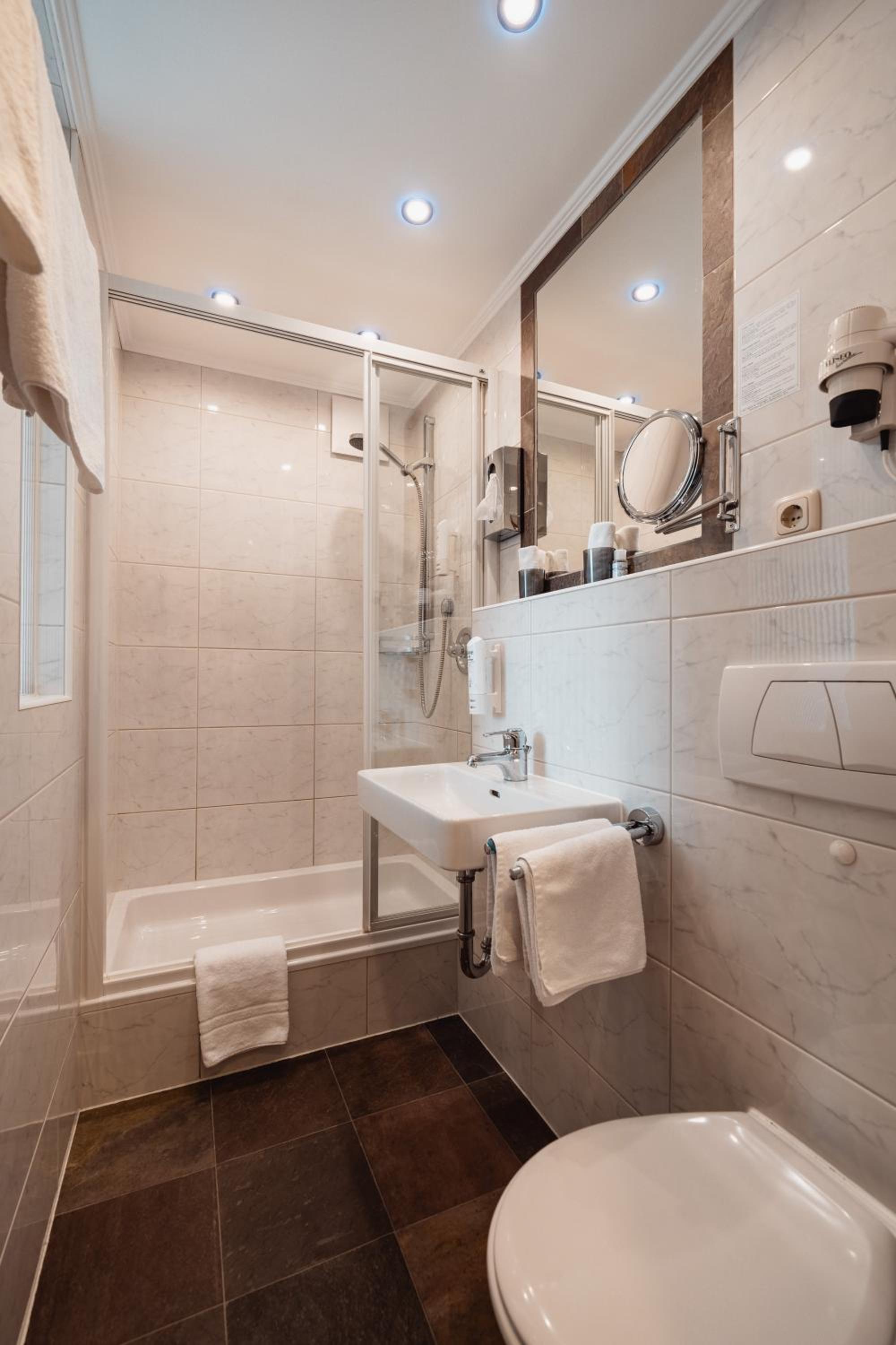 We didn’t have a bath in our room, only a shower. Additionally we would have liked a coffee machine/kettle in the room too, so we could make simple hot drinks.