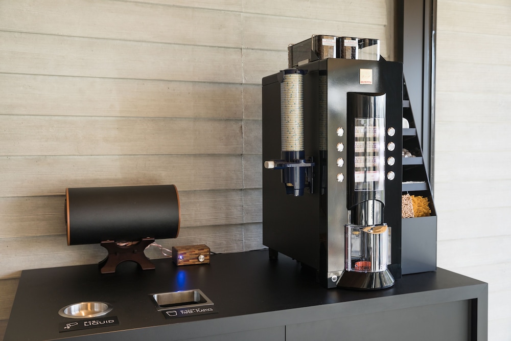 ・受付、アメニティ設置、エスプレッソマシンが密集しており、動線が良くない