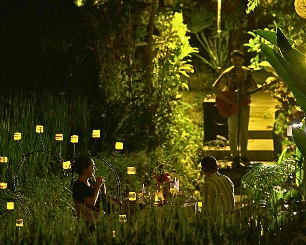 A so nice place. With the ricefied in the middle. Like a fairytale. Very lovely food. Taste really good and looked very beautiful. Very nice staff. Always happy and kind. I can really recommend this place. Book the villa or dubbel room deluxe. We hade deluxe room. 10 min walk to the mainroad.