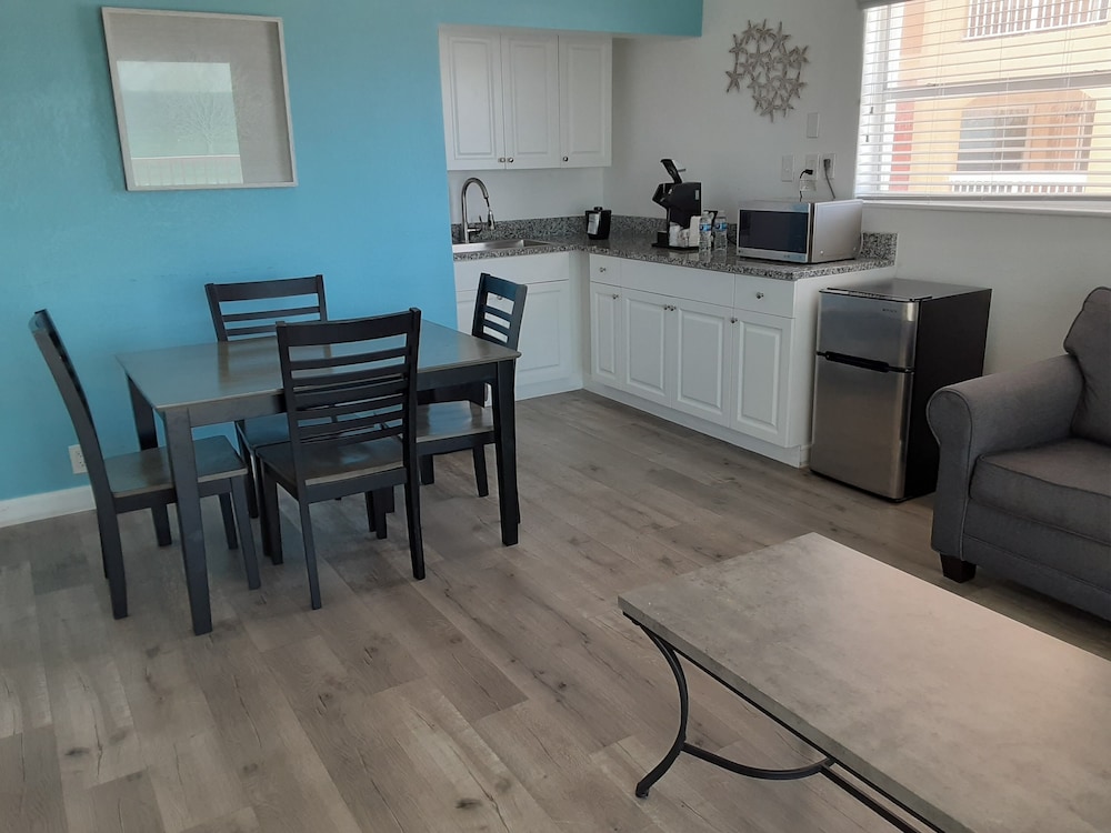 While the property was not as fancy as some we have stayed at the location of room 120, which was literally right on the beach, was fantastic. The room was okay and the bed was comfortable. I would have liked to have had a working kitchen for a few days' stay as it only had a sink, microwave and small refrigerator, but a functional kitchen is not why we booked the room. They had mandatory quiet time at night so even though we were right by the pool it was very quiet in our room. There was a sliding glass door that led outside with loungers and chairs available to take down to the beach and the water was literally less than 50 steps away. Sadly, our visit was cut short due to Hurricane Helene and from the photos I have seen the beautiful beach is no longer there and I doubt that our room is either. The staff was very friendly and our hearts go out to them and the other locals of N. Redington Beach and the rest of the barrier islands, as well as all people and states affected.