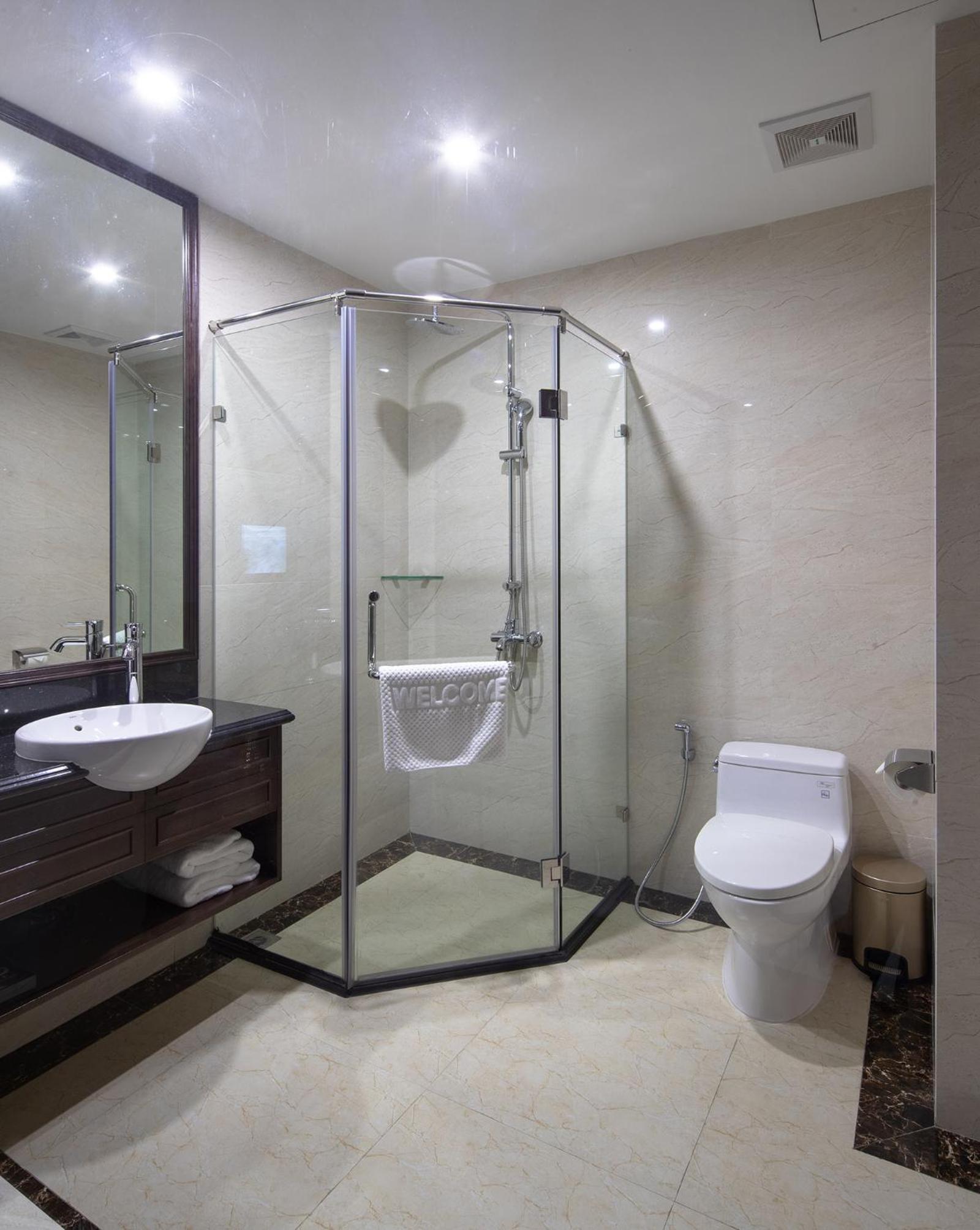 Impressed with the crews’ good command of English. They upgraded us to junior suite! Feeling so pampered by the excellent service. Super clean room as hotel is newly opened. Love the bathtub. Located near market and food stalls. Will definitely choose this hotel if I visit Halong Bay again!