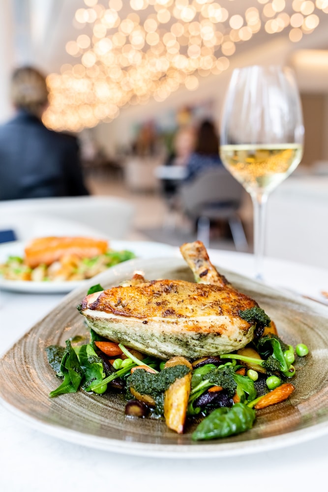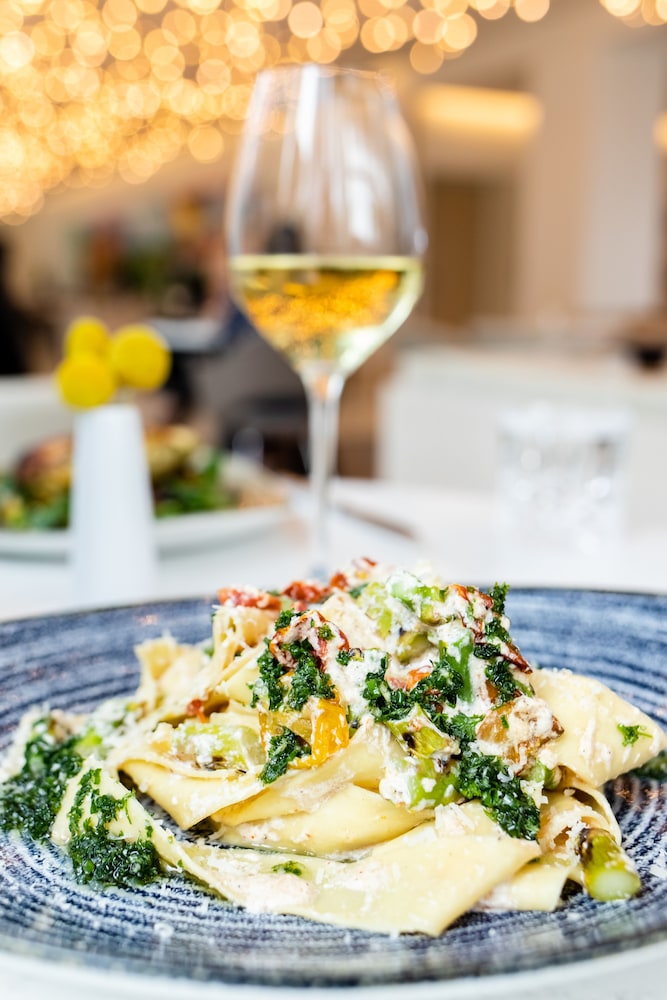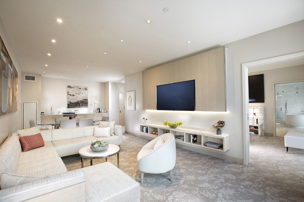 The rooms are modern and spotless. Automatic draperies, comfortable bed and pillows, USB and C port’s bedside, illuminated magnifying mirror, great shower, steamer and espresso coffee bar. Good central location in a pretty part of Dallas. Love the art installations in this hotel too! Beautiful wall mosaic spans the length of the outdoor restaurant- great place for breakfast or happy hour