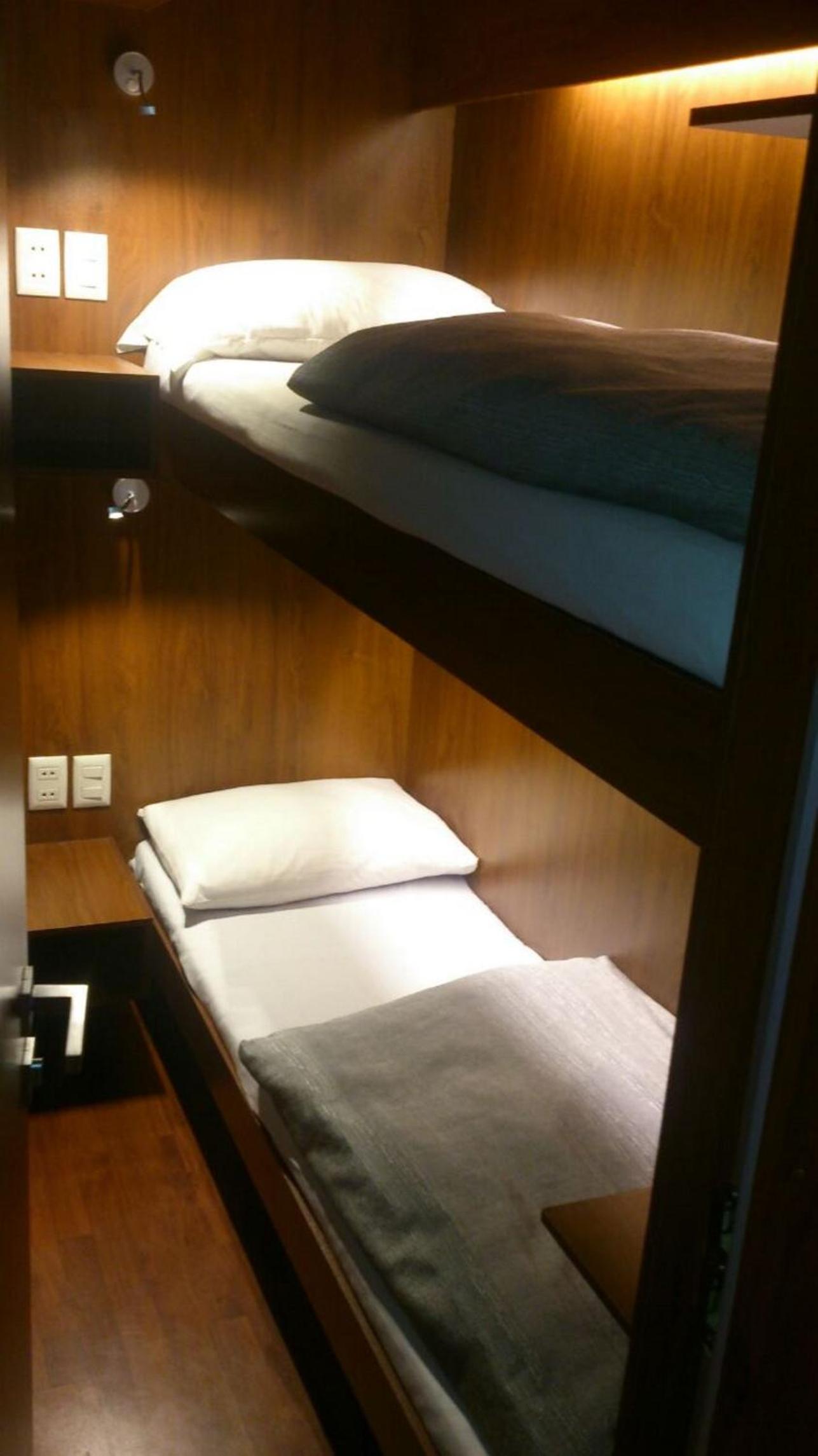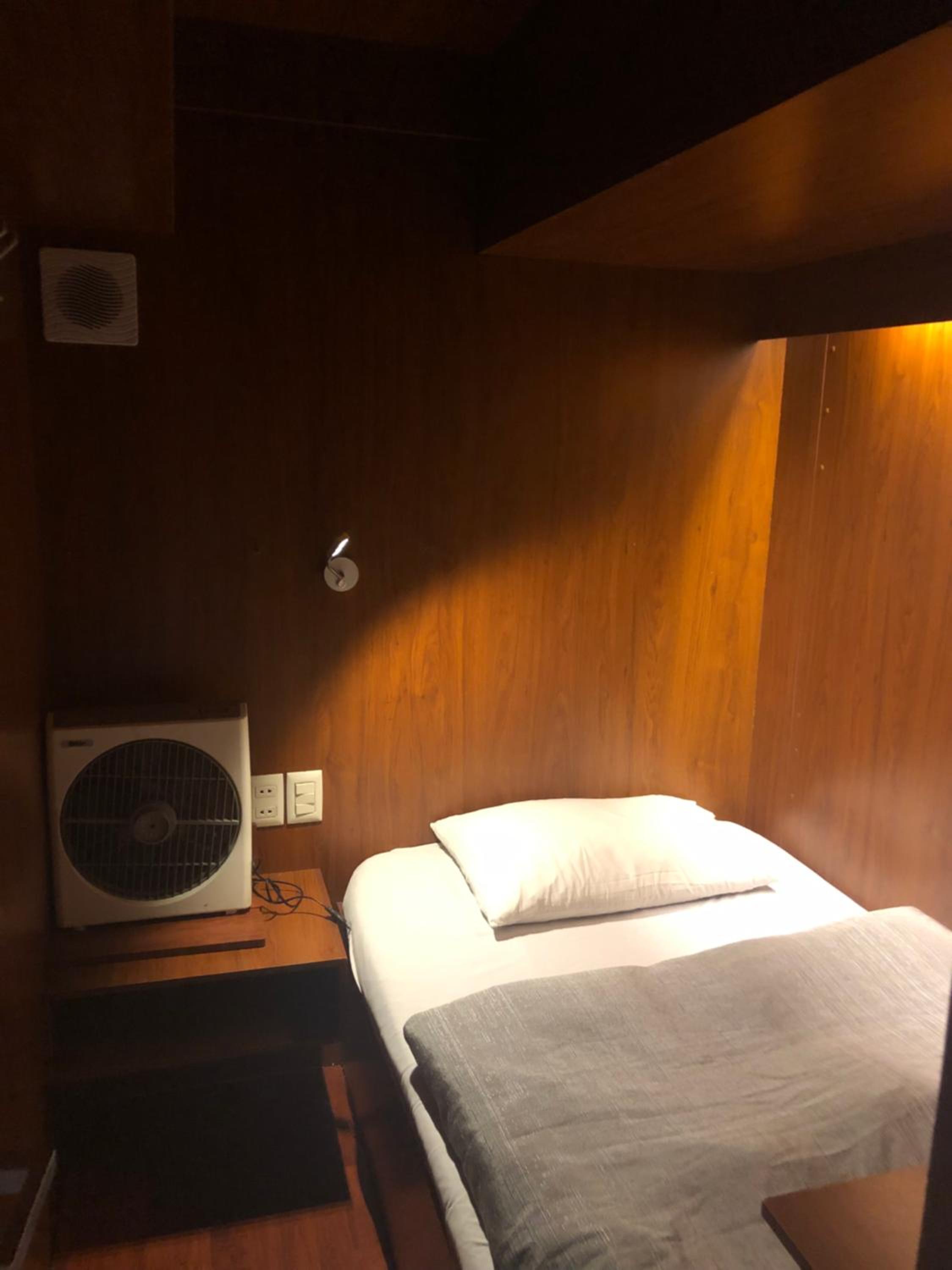 You're paying for the privilege to stay in the airport for what is essentially a box. And the boxes do get stuffy and warm but it didn't bother me too much. There's a shared sink (e.g. for brushing your teeth) but there's no toilet; you have to use the nearby airport toilets.