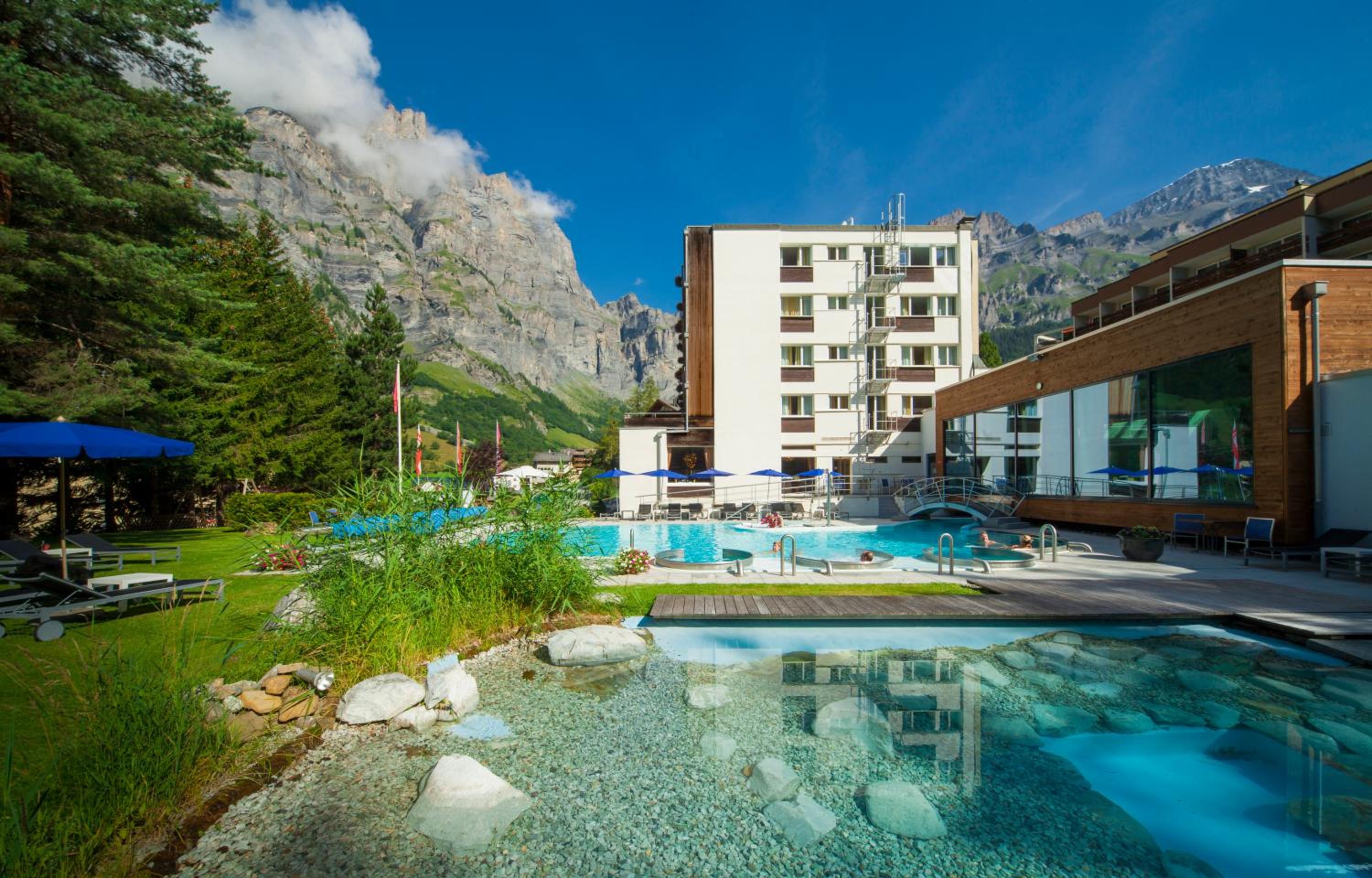 Le Bristol Leukerbad invites you to indulge in its own thermal springs, rejuvenate at the massage and beauty centre, and unwind in the indoor and outdoor pools, sauna, and steam bath.