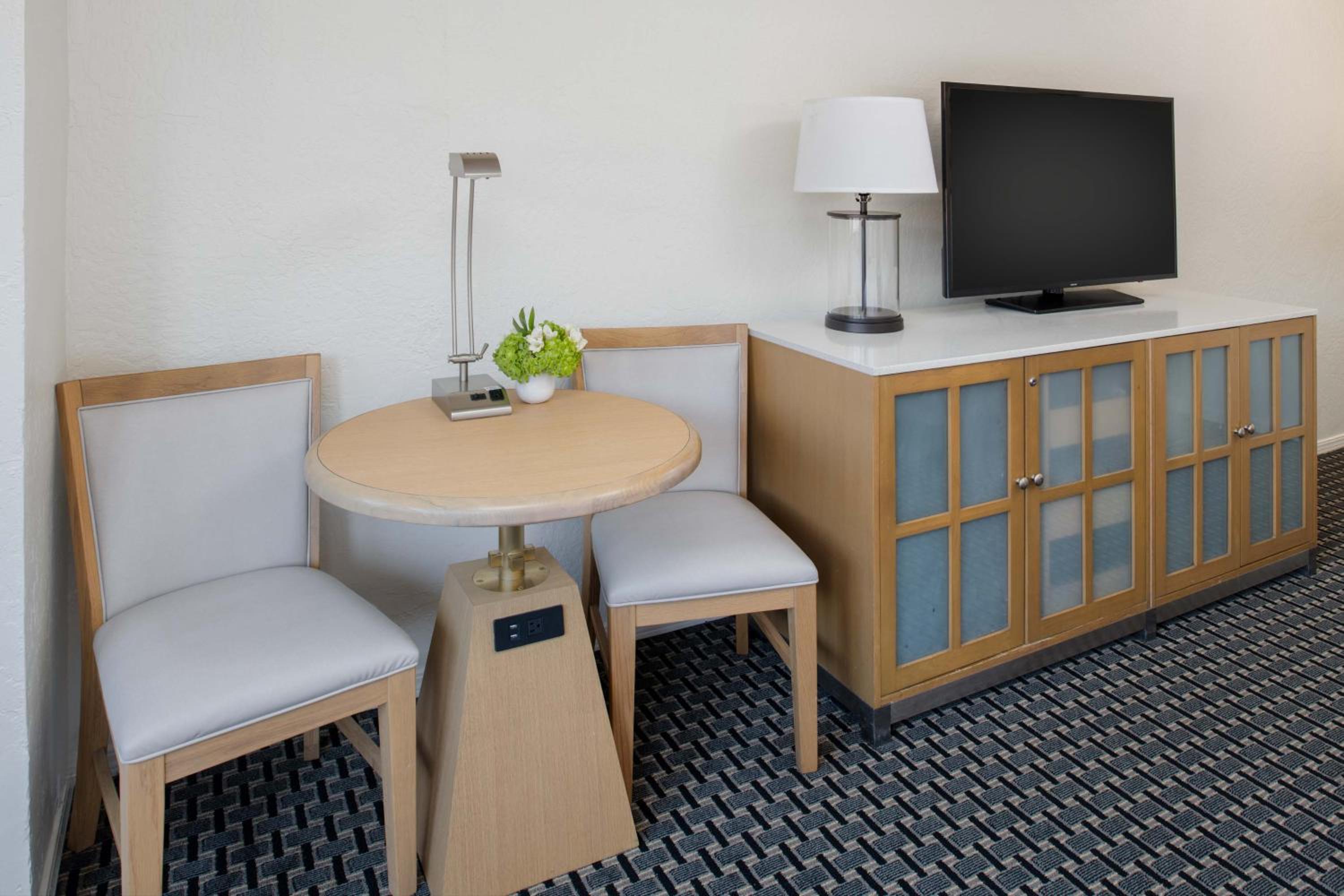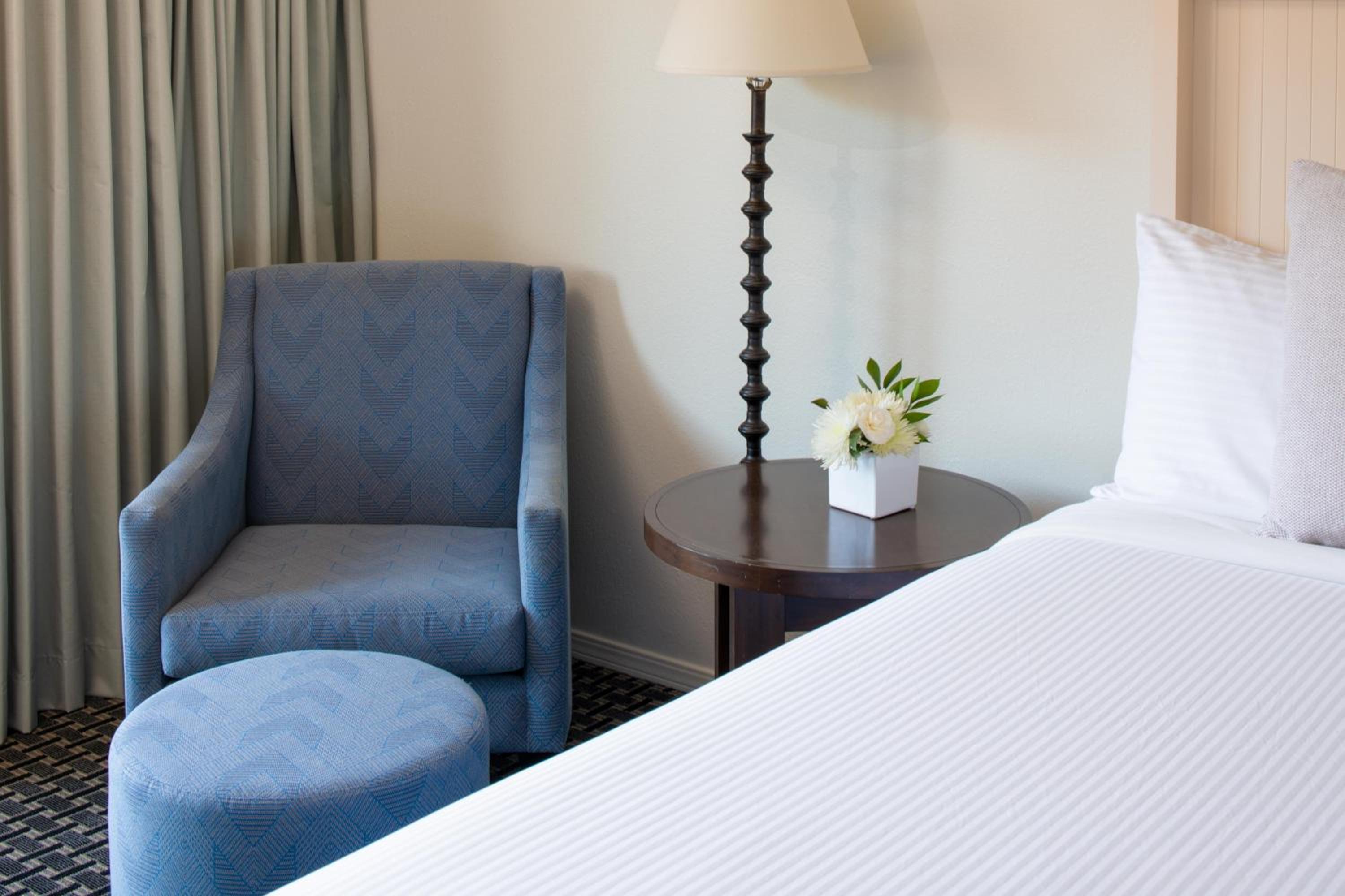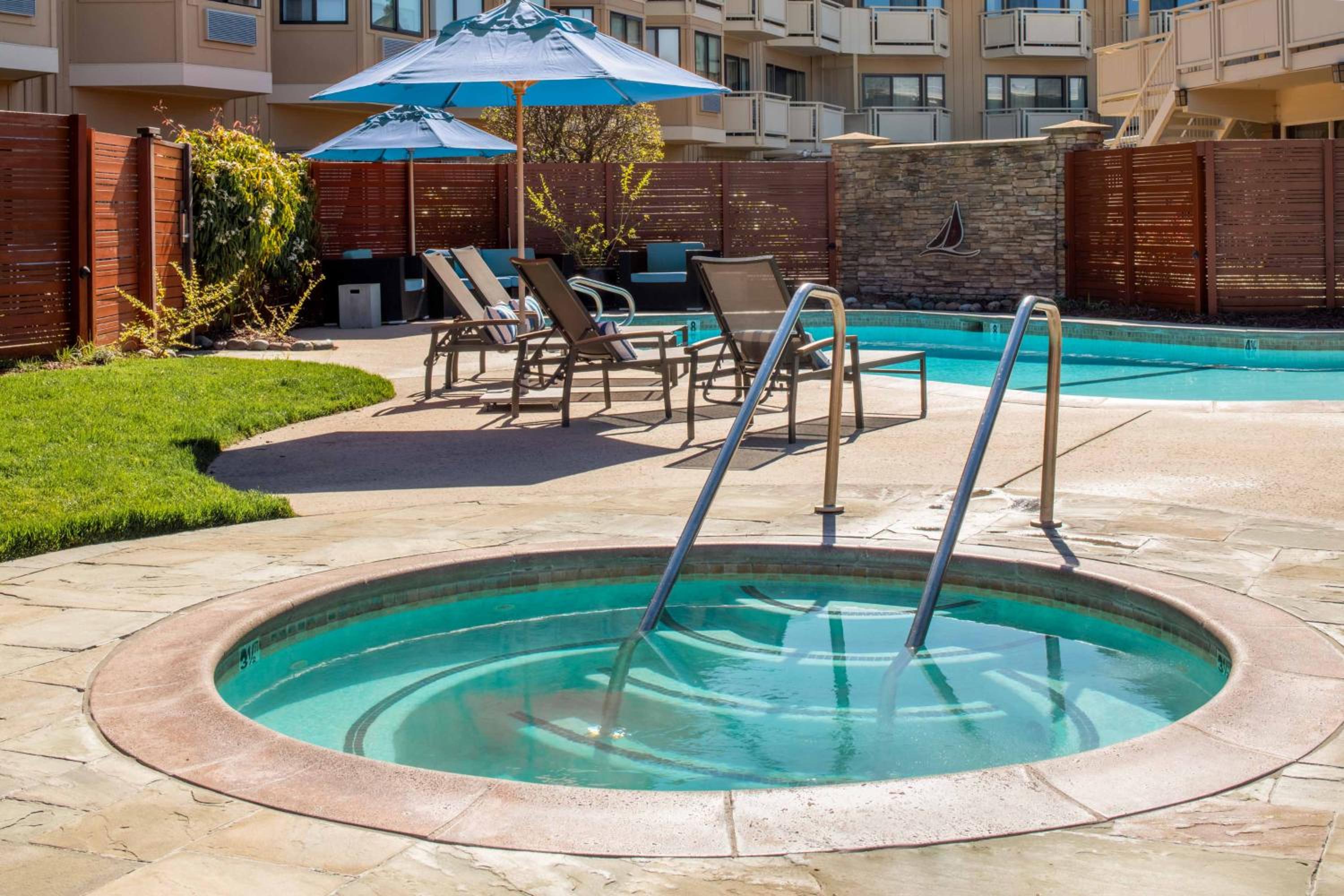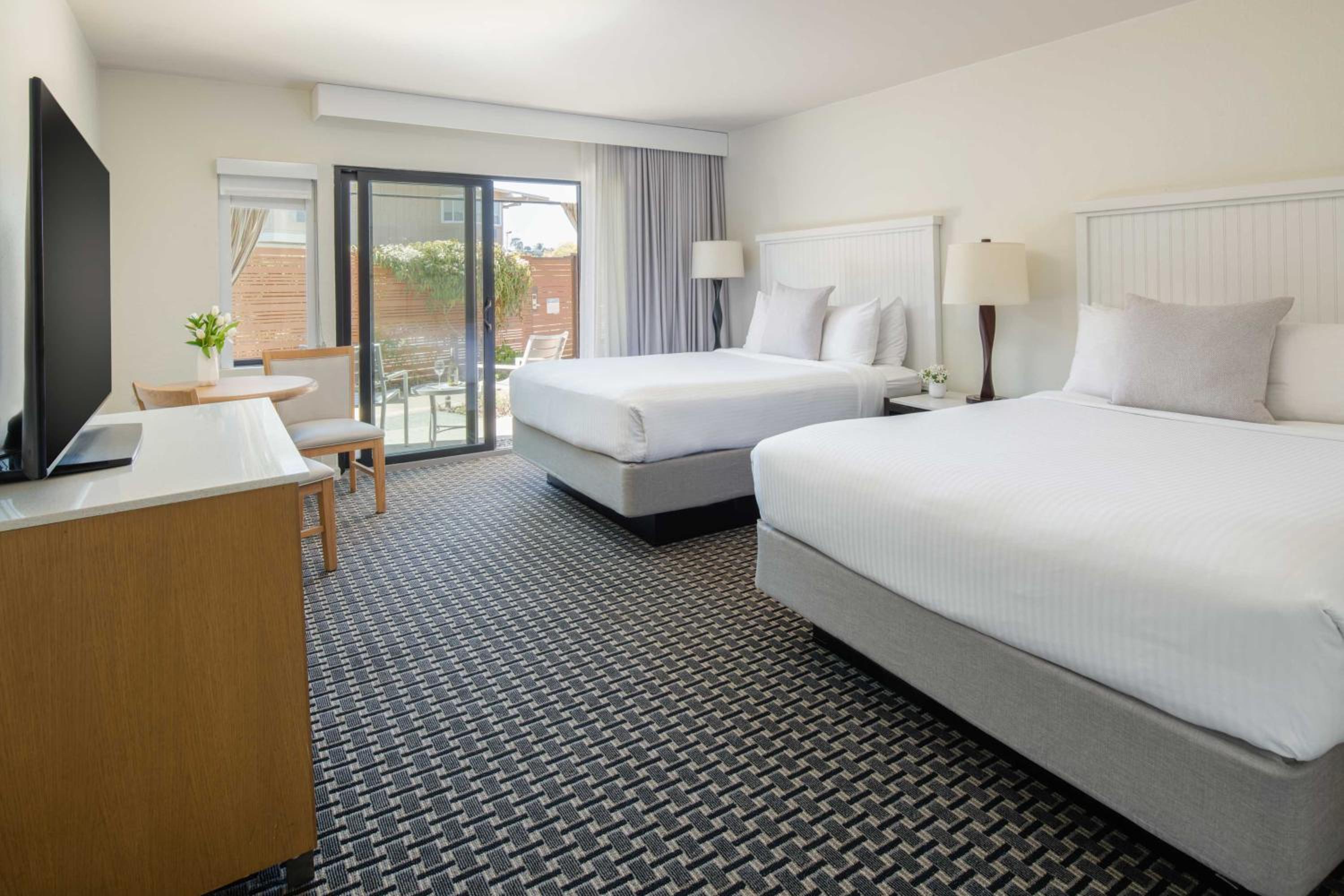 The Lodge at Tiburon offers a picturesque stay at the tip of the Tiburon Peninsula. With vaulted wood-paneled ceilings and private balconies in every room, guests can enjoy the serene surroundings of Marin County.
