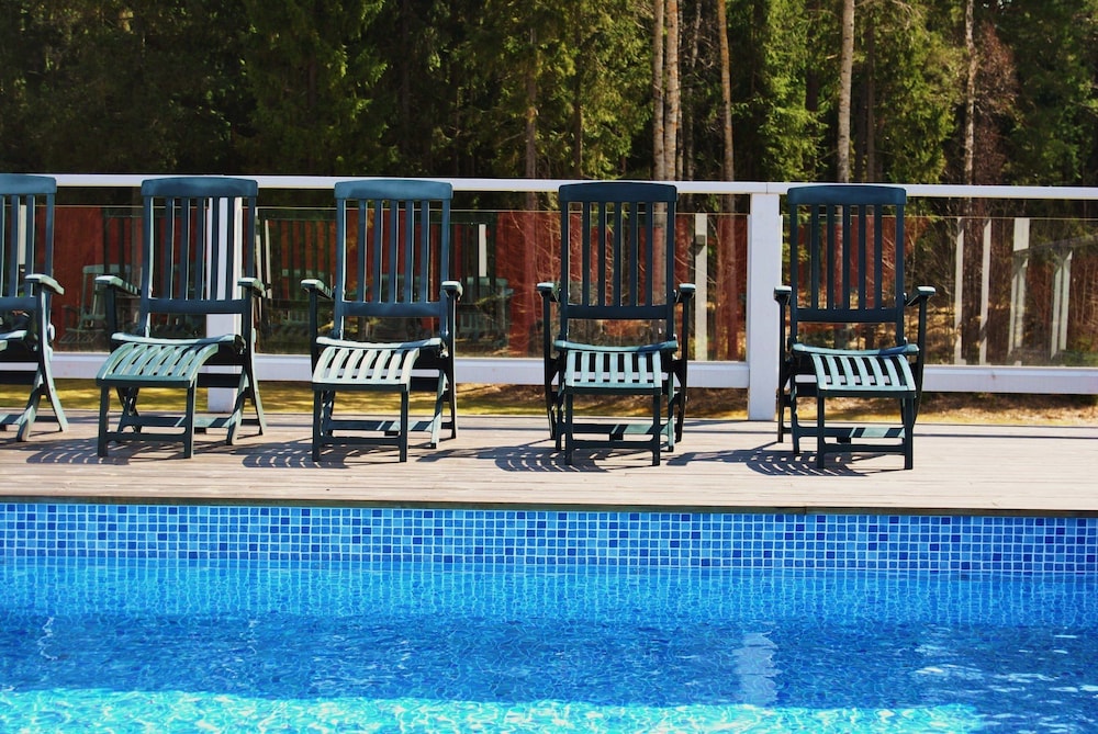Perfekt m pool inne och ute samt fint gym. Allt lättillgängligt. Mysigt att kunna bada i sjön och även paddla kanot. Sällan ätit så god mat.