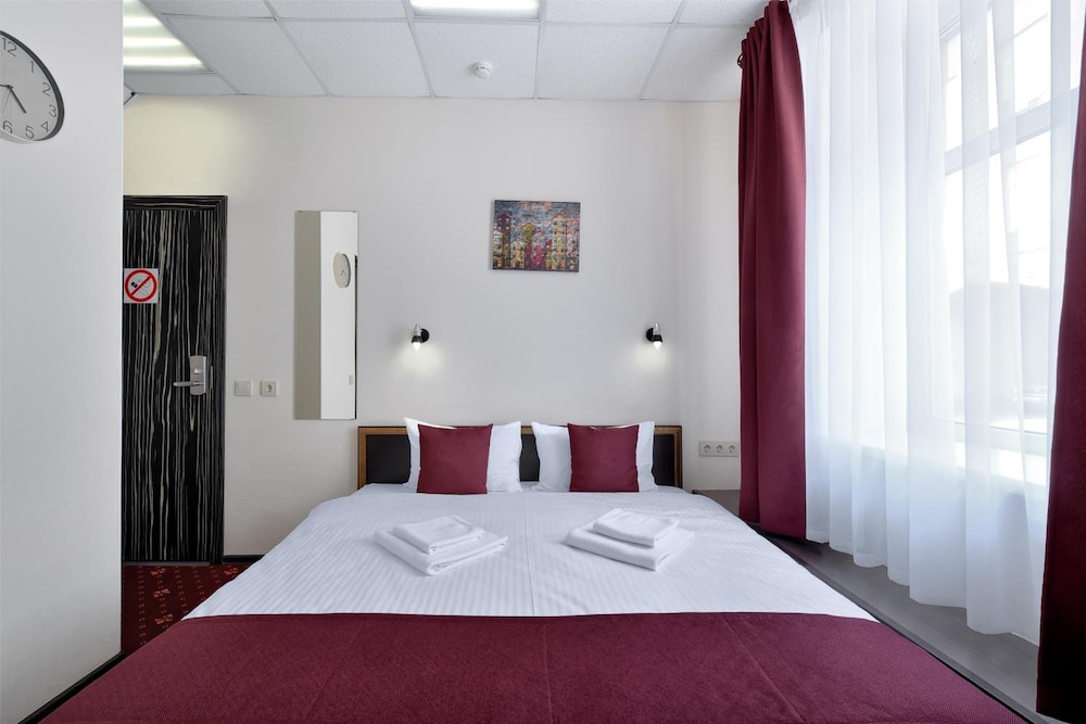 Я делала операцию рядом в больнице. Мне необходимо было прийти к 8 утра. Живу в Подмосковье. Поэтому приняла решение переночевать в гостинице неподалёку. Выбор на этот отель пал, потому что он находится в 10 минутах ходьбы от больницы. Номер на одну ночь взяли самый бюджетный. Спали хорошо. Матрас удобный, подушки тоже. Не было окна. Но ночью - это даже плюс. Ничего не мешало выспаться. Было немного жарко. Включали кондиционер. Он сильно шумел, поэтому выключили. Я ушла рано и без завтрака - перед операцией ни пить ни кушать нельзя. Дочери завтрак принесли в номер в 10.30, как мы и просили. Ей понравился. Была каша овсяная, хлебушек, сырок…. не помню, что ещё. Вполне себе приличный завтрак. Вечером на ресепшене мы попросили чайник в номер. Чашки и стаканчики в номере были. Чай мы купили в «Пятёрочке» прям рядом с гостиницей. Кстати, в шаговой доступности от отеля много разных кафешек, где можно или перекусить или купить что-то с собой.