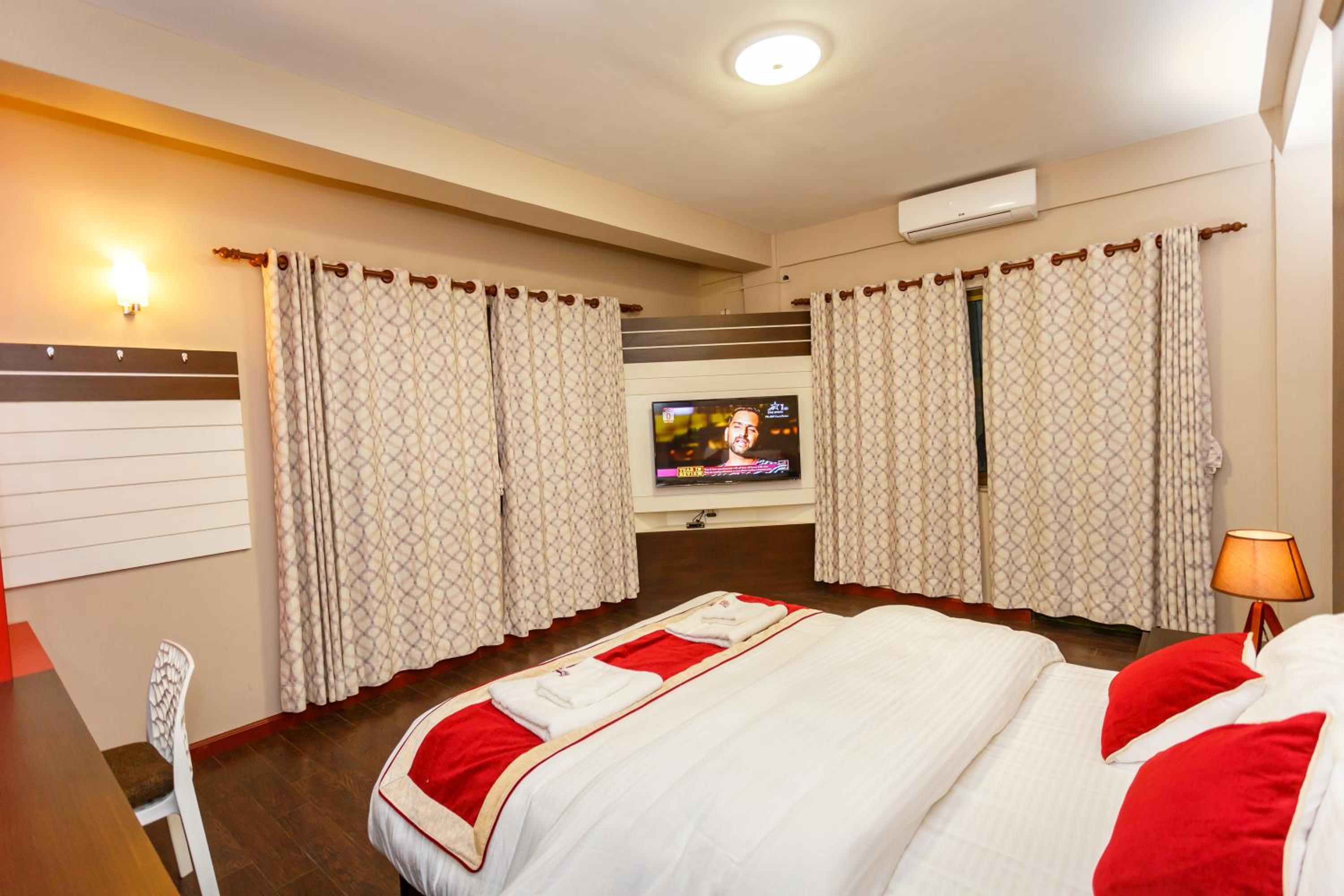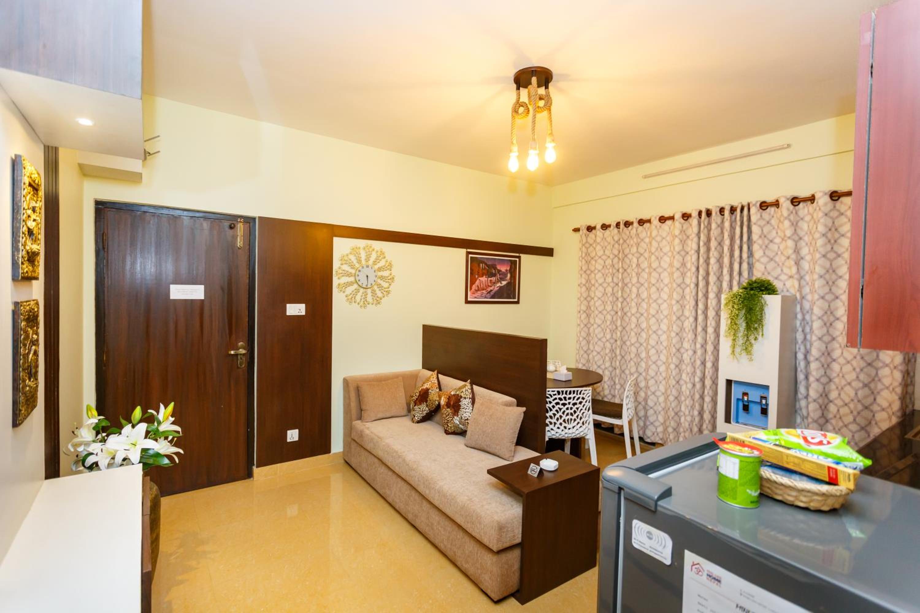 Hotel is bit far from Main road… First day we reached their at night 9pm and we was standing outside in rain And we had to Drag our luggage to the hotel cuz it was bit inside… They just have one person staff working for whole apartment…….