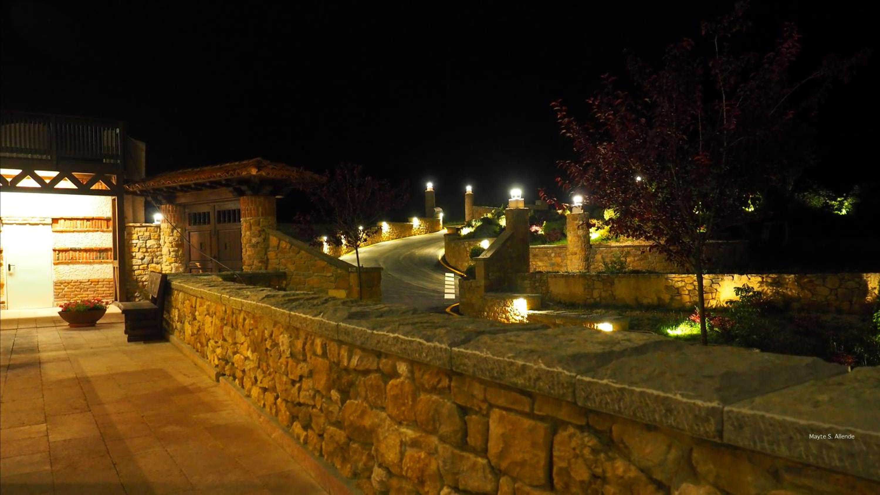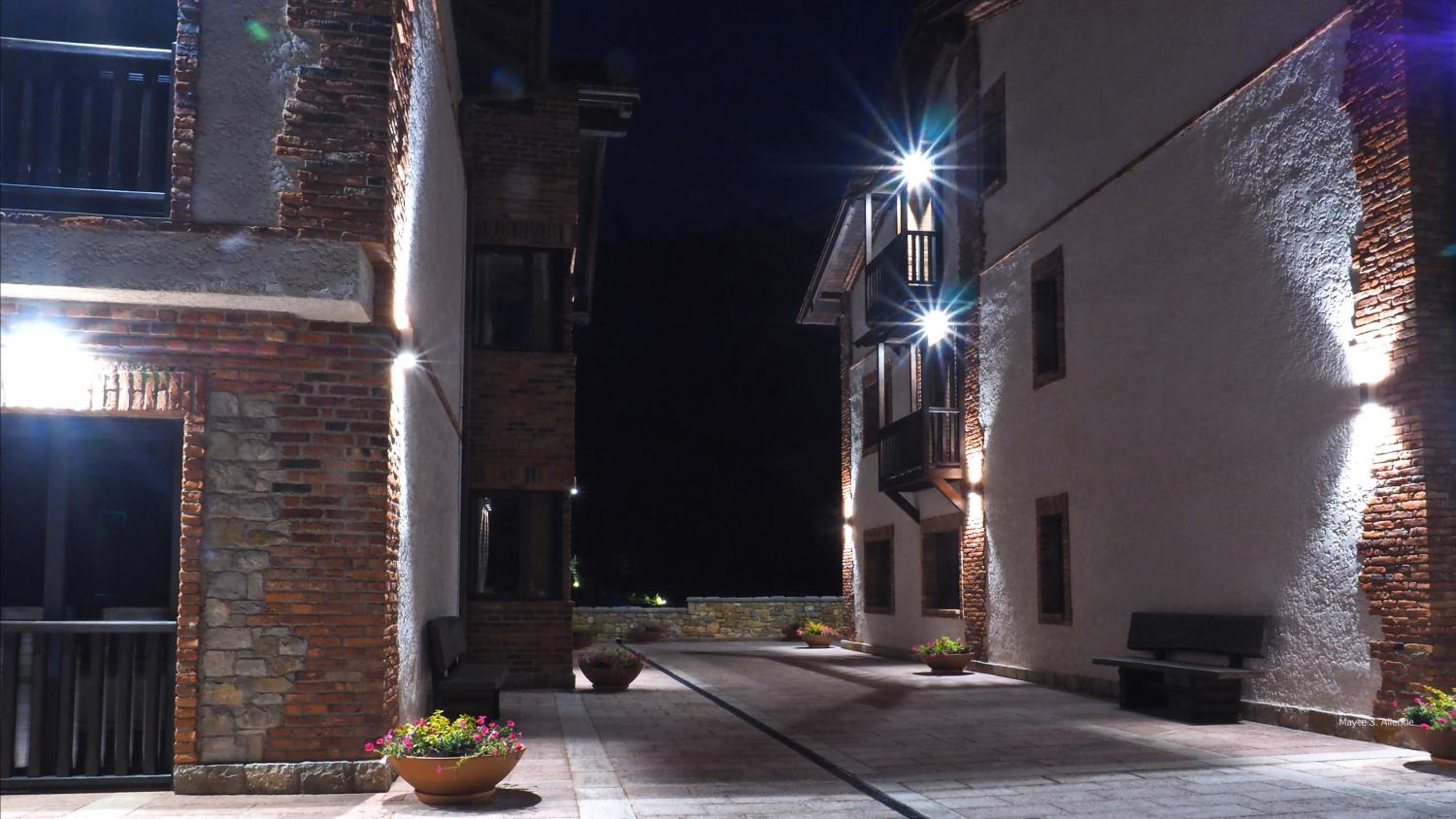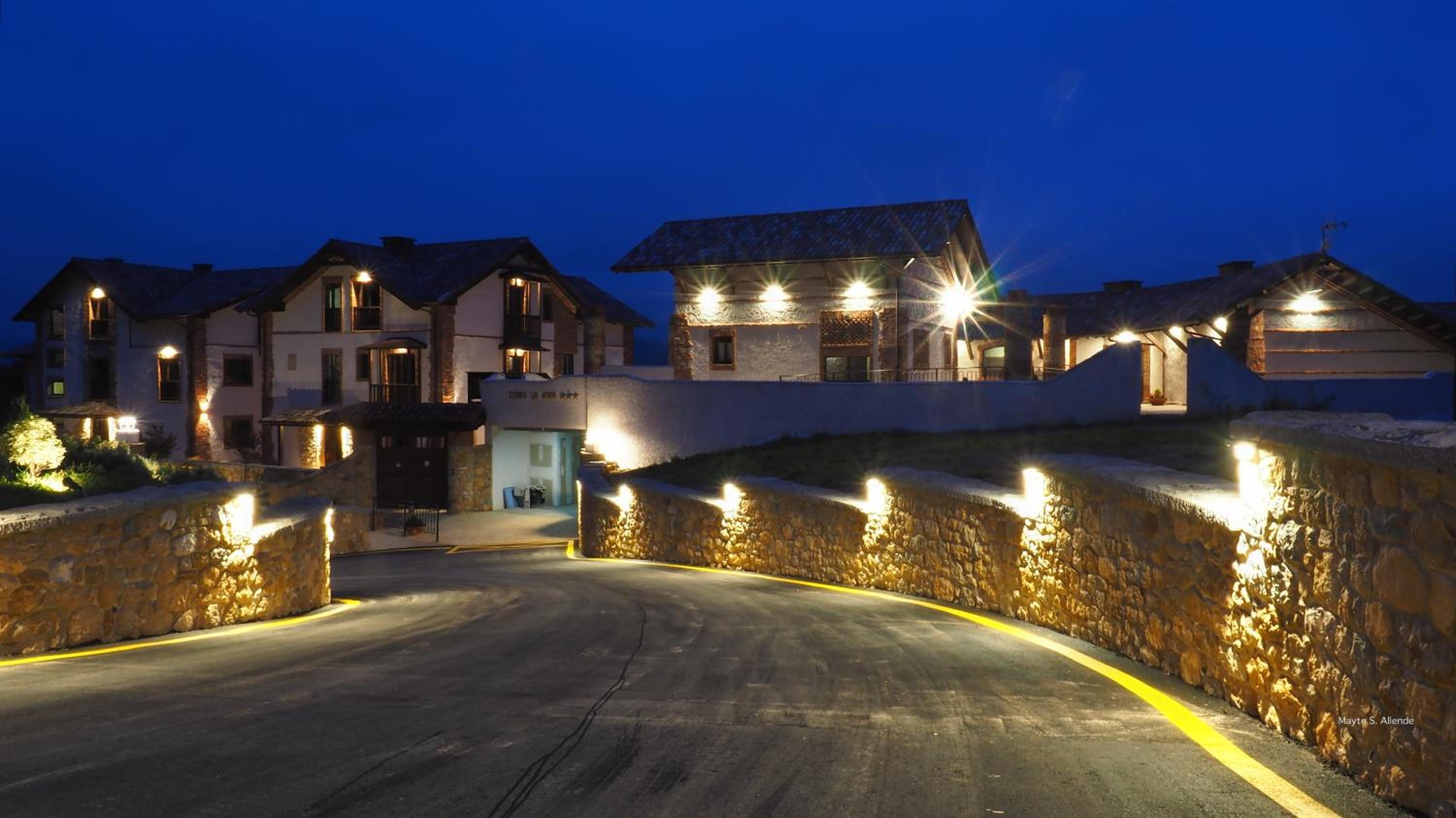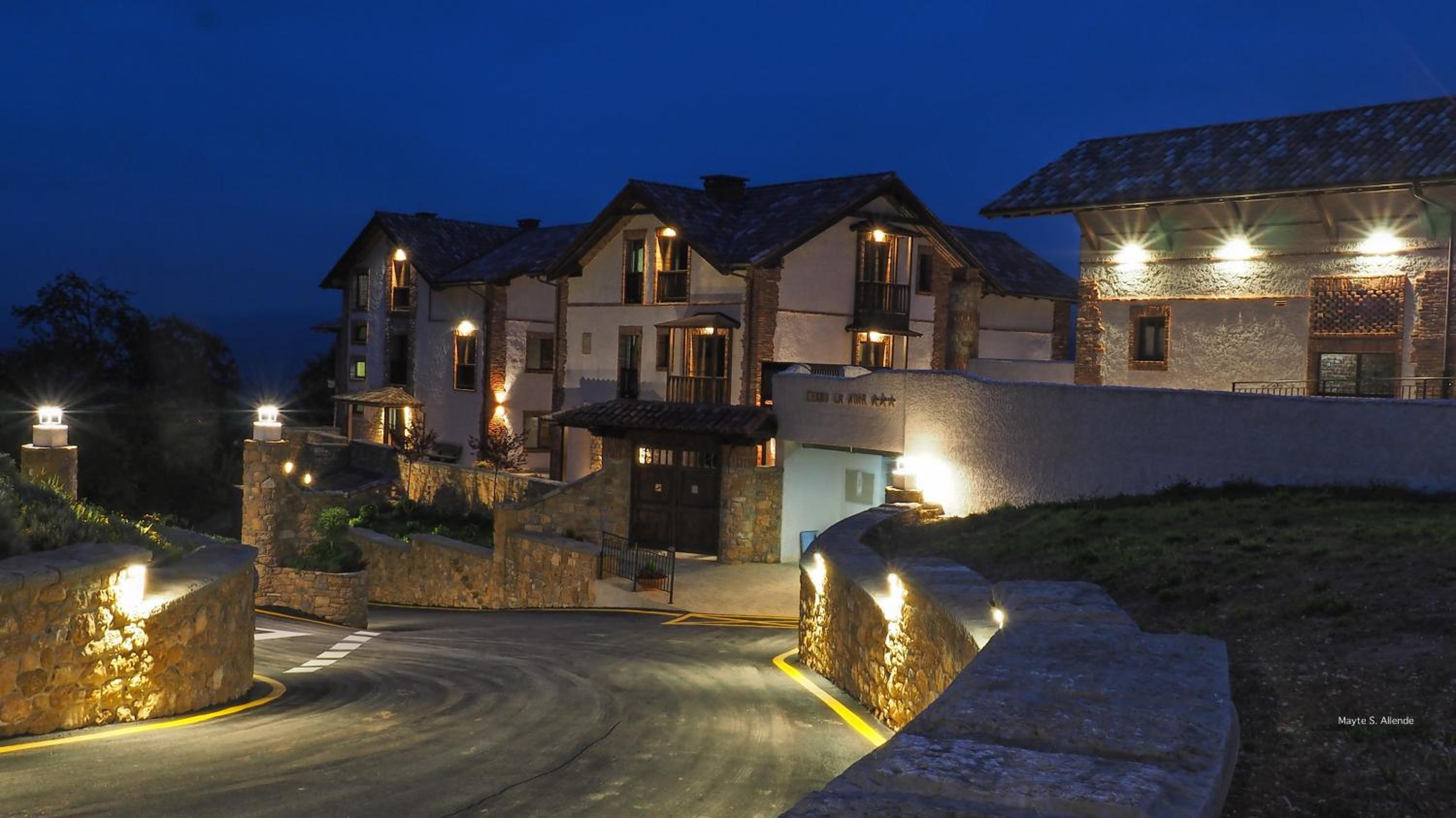 La subida al hotel es de in poco estrecha, si se cruzan dos coches hay que hilar fino