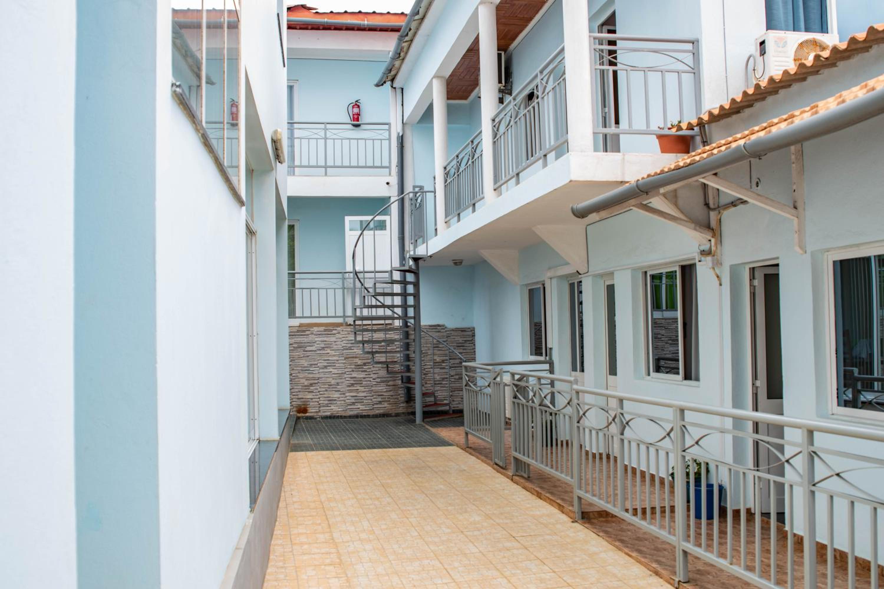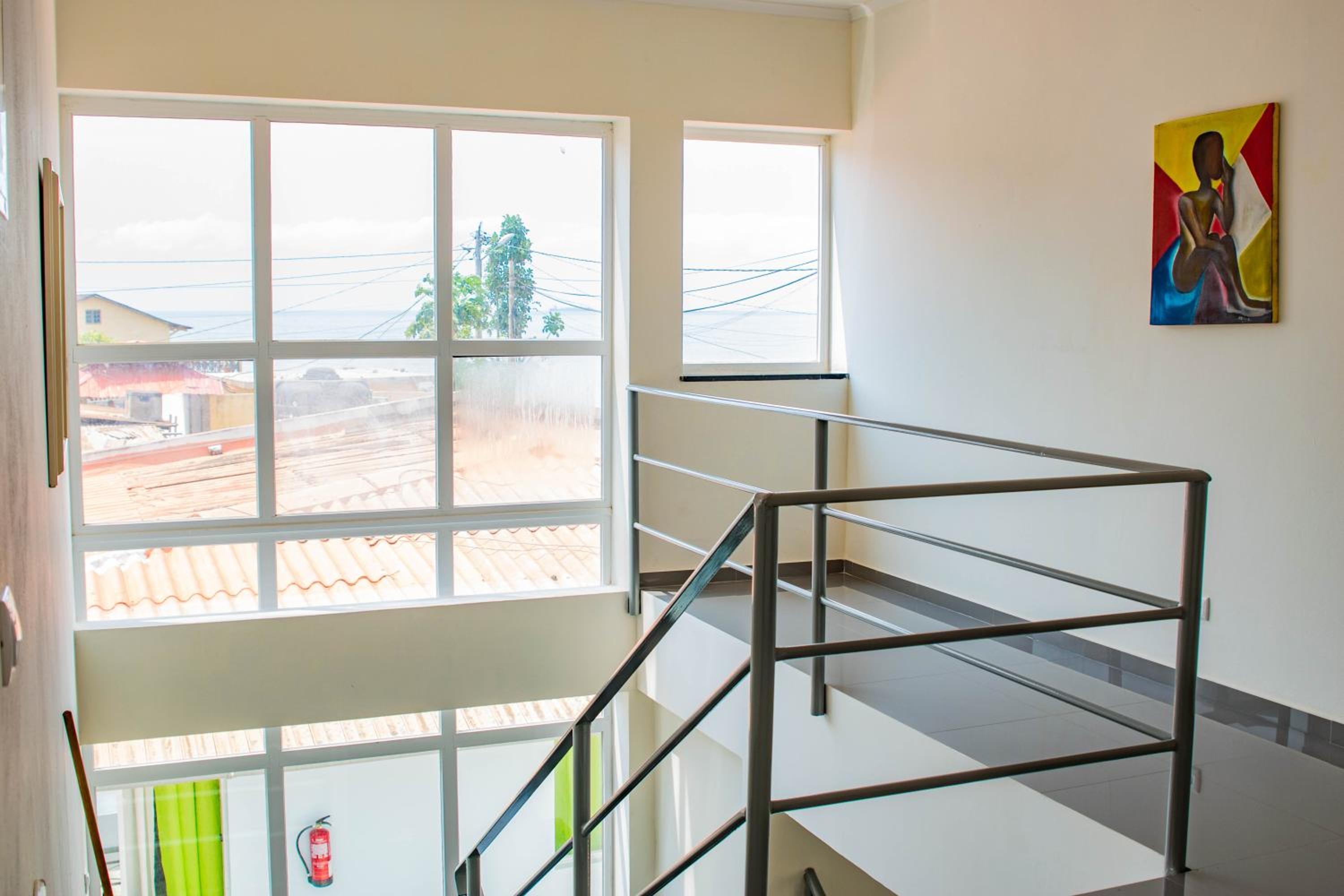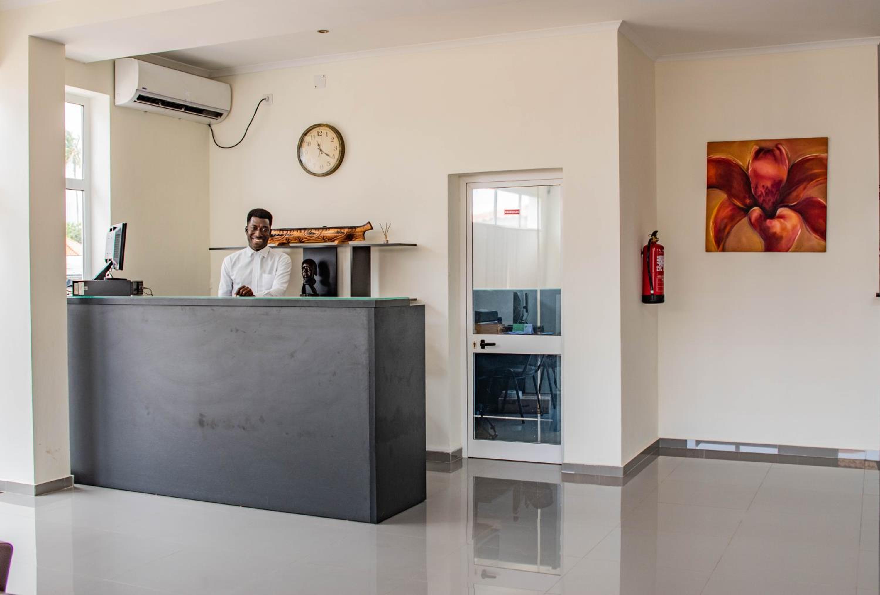The hotel is located just next to the airport, which is perfect option for evening flight from Lisboa (avoiding hustle taxi dark ride 15 min. to the center of the city). Location is very safe, there is a simple but tasty restaurant inside the hotel and the other one just next to the hotel (Tia Nanda), so no worries being hungry (fish, octopus, chicken, and always fried banana + rice). Staff can help you change euros to dobras with absolute fair rate - just write a message ahead and agree on amount needed.