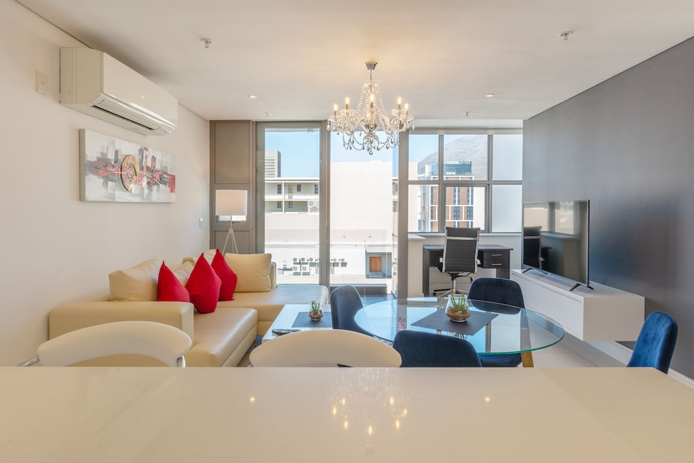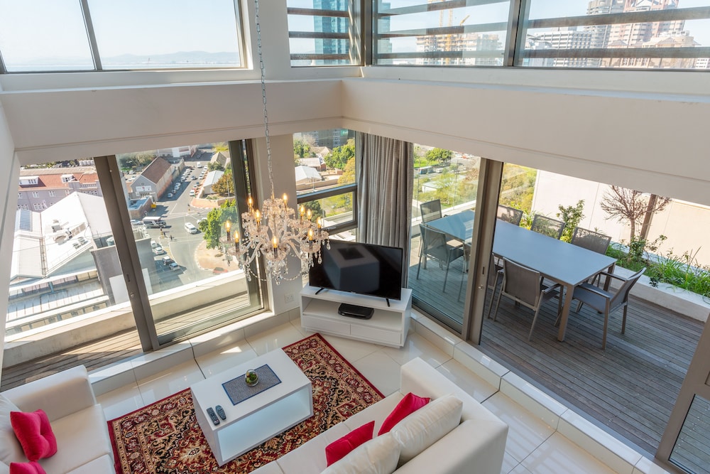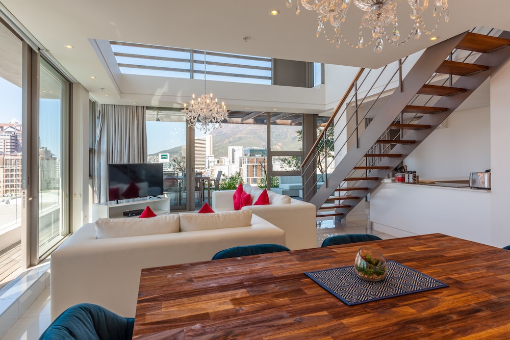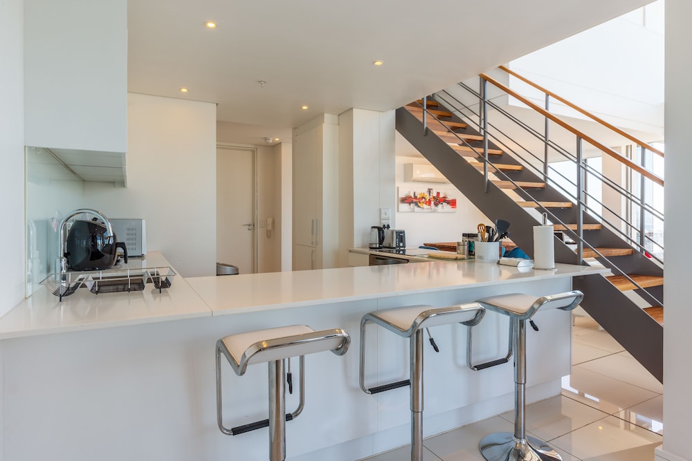 Really nice two-level loft-style apartment on high floor with 2BR and 2.5BA, full kitchen, dish washer and compact laundry; everything you need. Large balcony overlooking De Waterkant area and up to Table Mountain. Grocery, cafe, restaurant, and rental car agency all within walking distance. I'd rate it 4.5 stars overall for an apartment. However, the beds/bedding/pillows and the couch could have been of a more premium quality and more comfortable. Was fine, just not exceptional like the rest of the apartment. I'd book again for sure.
