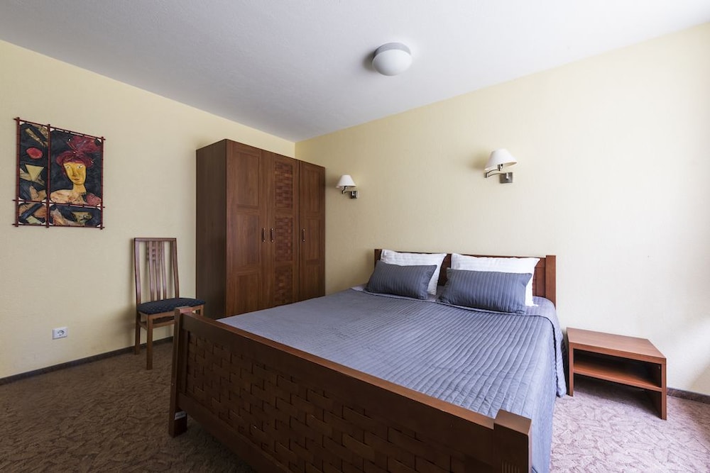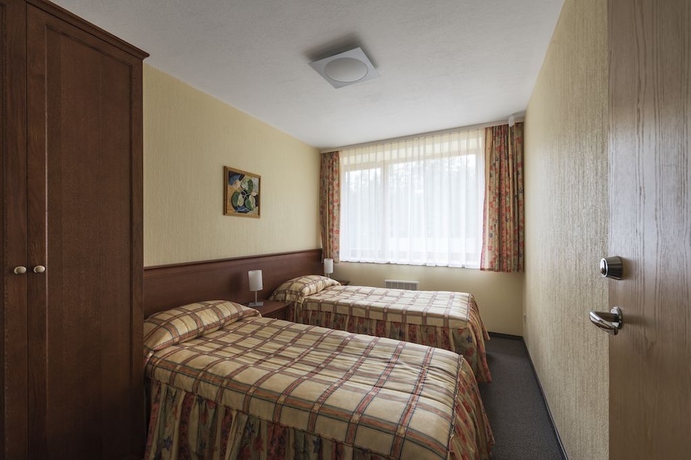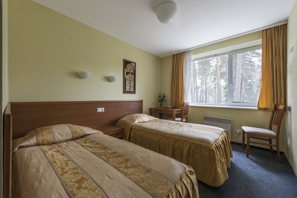 Užskiau kambarį su labai plačią lova. Gavome 160 cm ir dar vienu lovos kraštu priglaustu prie sienos. Laipiot per žmogų??? Žiauriai nepatogu. Kambarys mažas. Langai i mišką, o ten pavėsinė. Joje ik 4 val ryto baliavojo. Negebia kitų poilsiautoju, juolab daug kas buvo su mažais vaikais. Teritorija graži, sutvarkyta. Nerekomenduosiu.